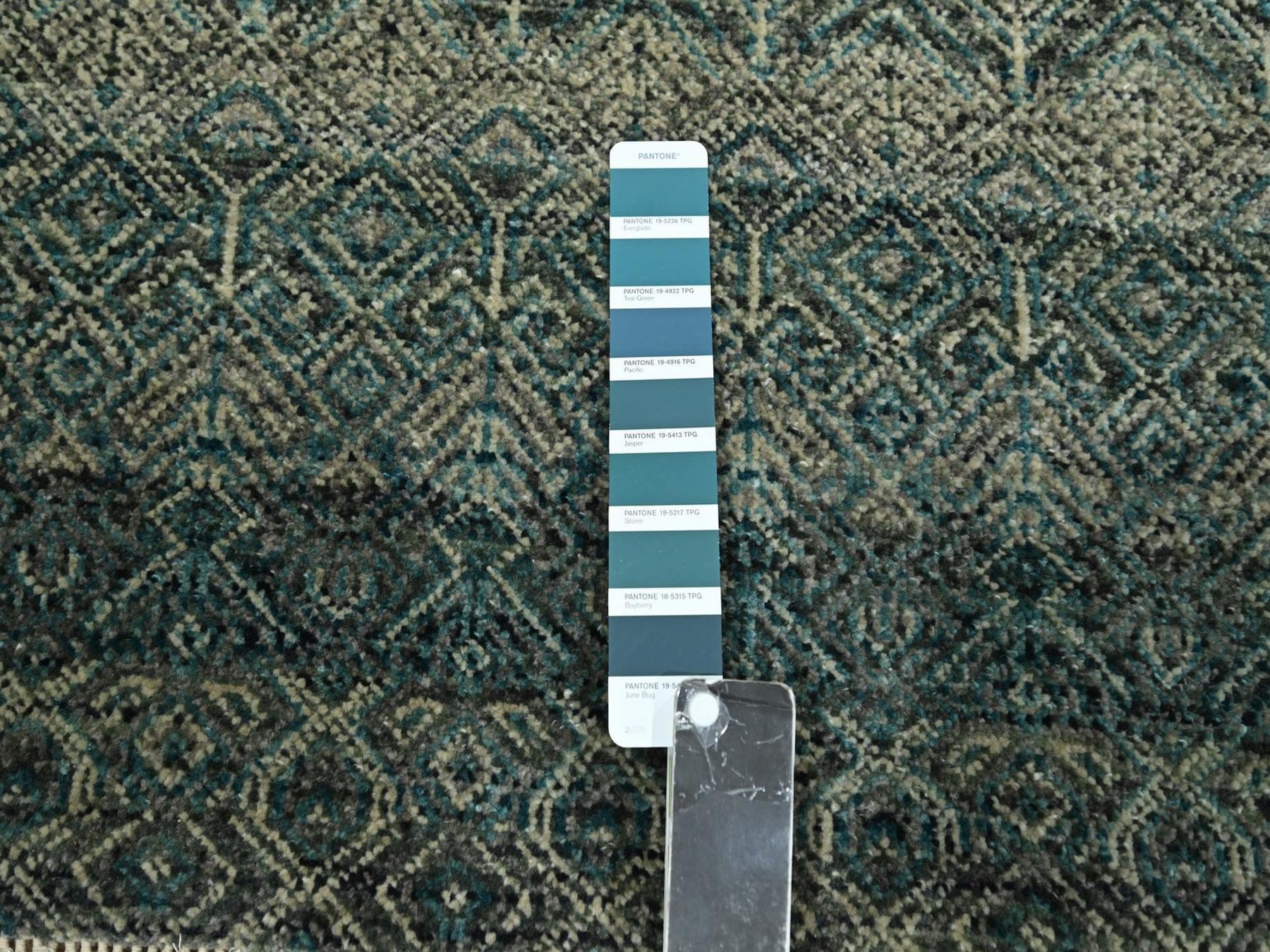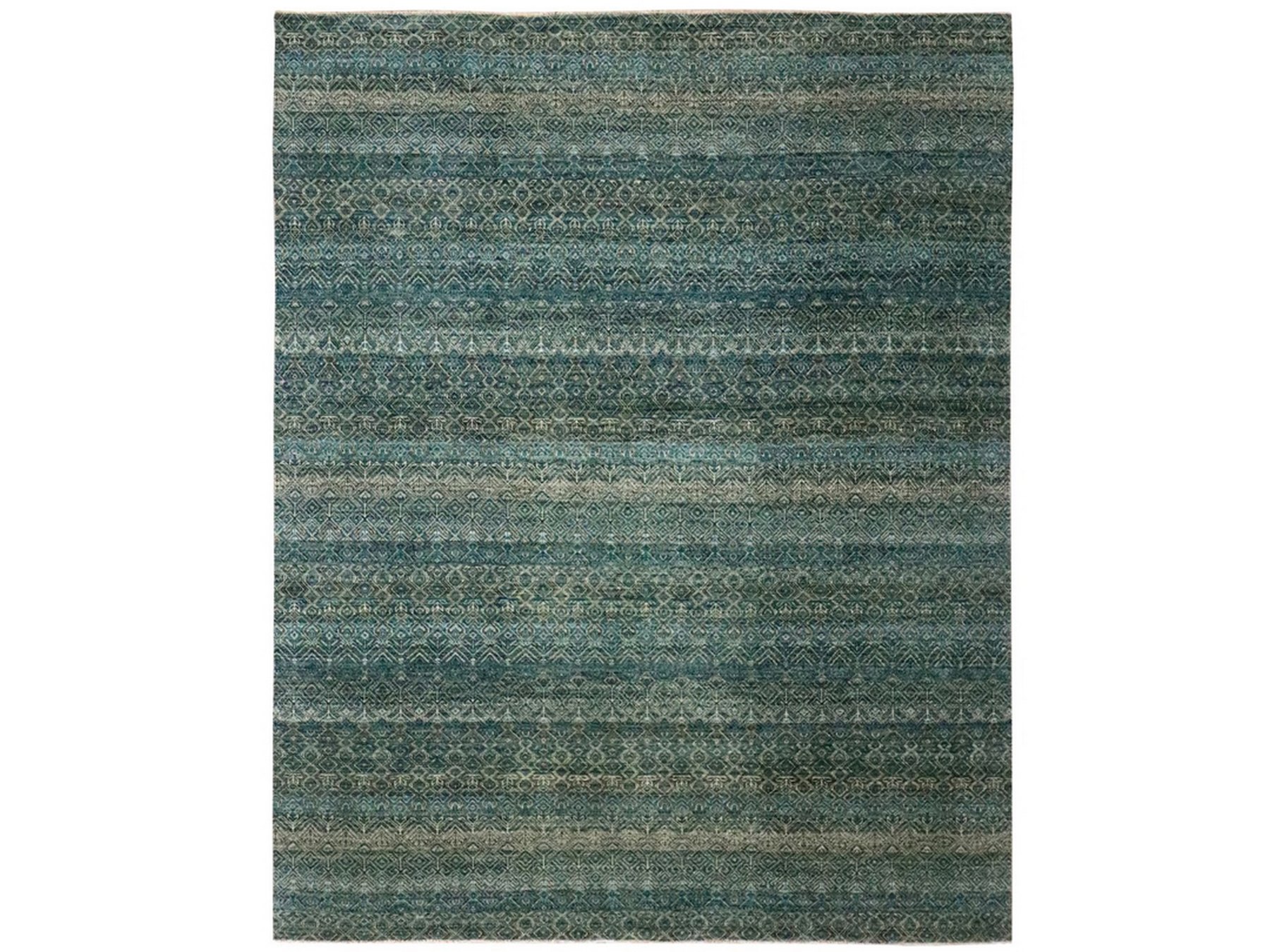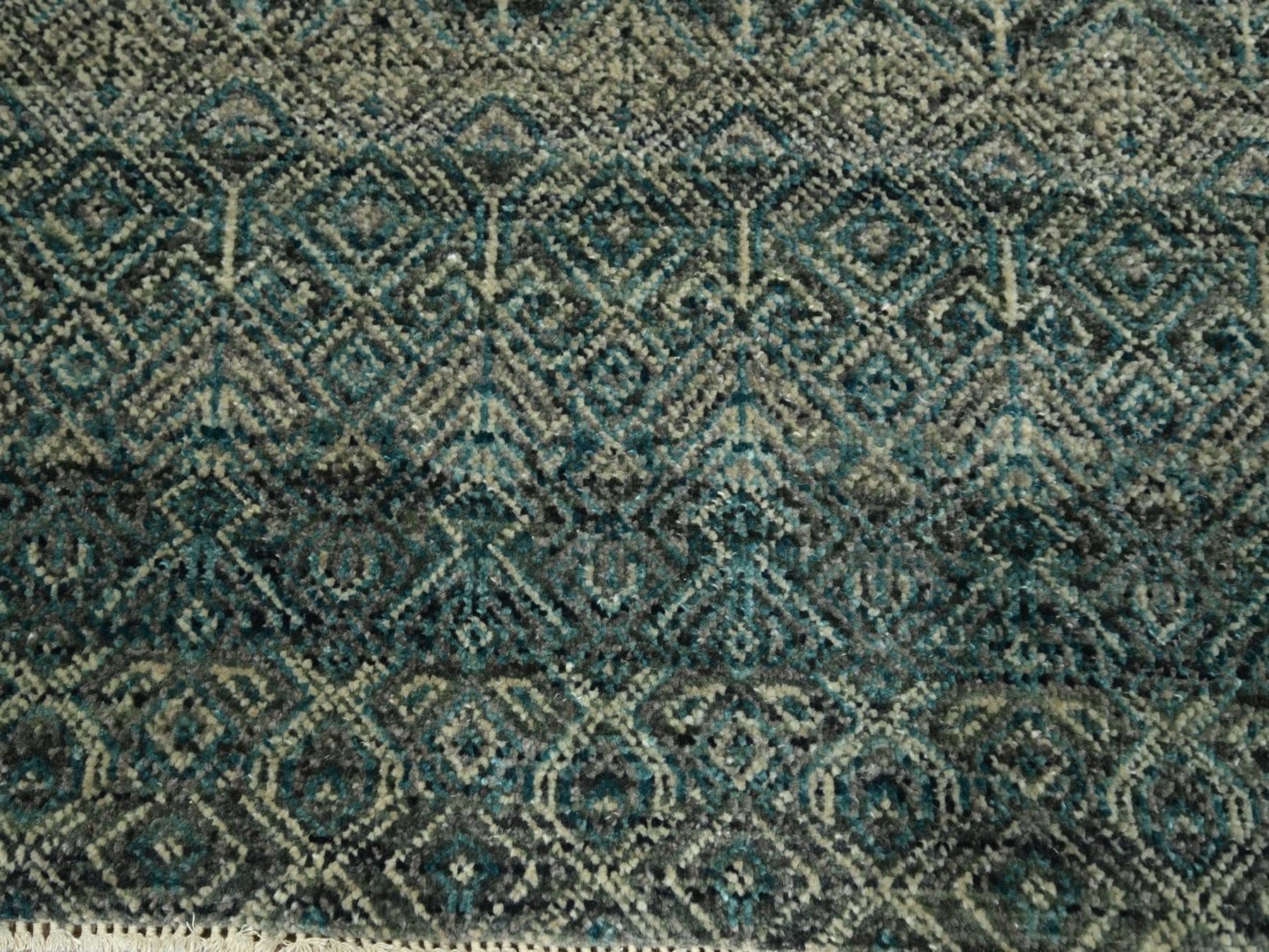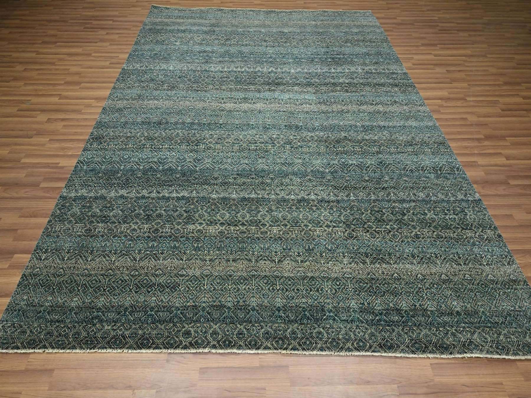 8’1″x10′ Teal Green, Hand Knotted, Kohinoor Herat Pattern, Small Geometric Repetitive Diamond Design, Soft Wool, Tone on Tone, Oriental Rug HR76569