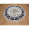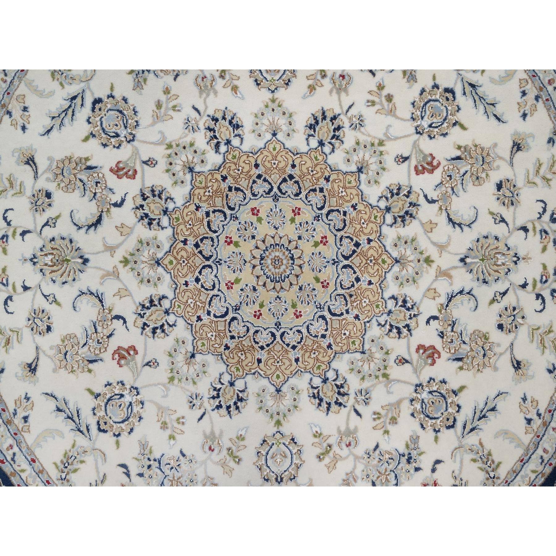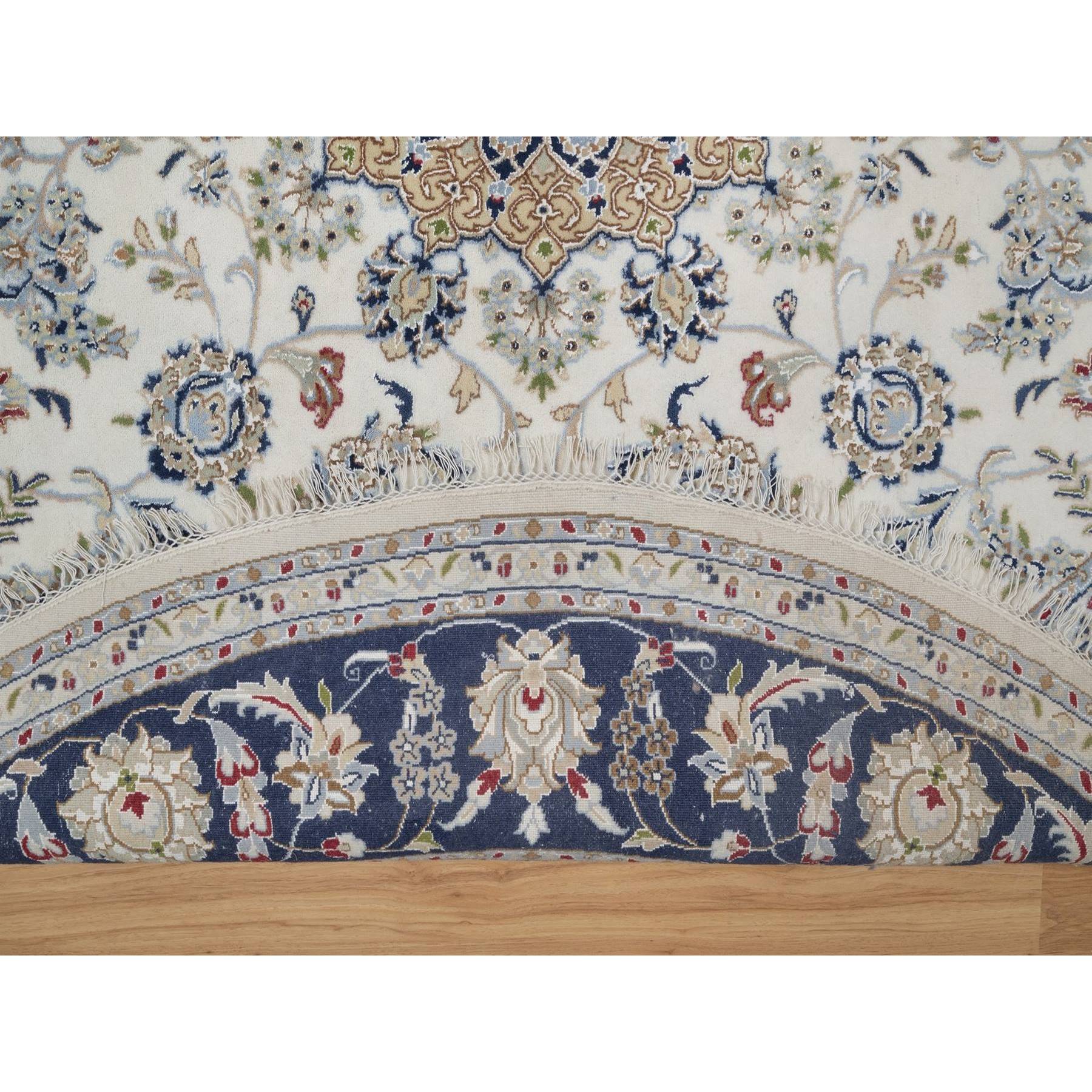 8’2″x8’2″ Winter White, Nain with Flower Medallion Design, 250 KPSI, Soft Pile, Wool and Silk, Hand Knotted, Round, Oriental Rug HR91625