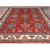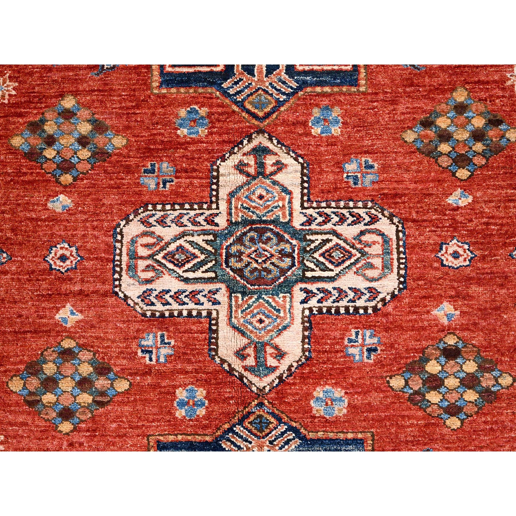 8’2″x9’10” Valiant Poppy Red, Densely Woven Extra Soft Wool, Hand Knotted Afghan Super Kazak with Tribal Medallions, Natural Dyes, Oriental Rug HR86273