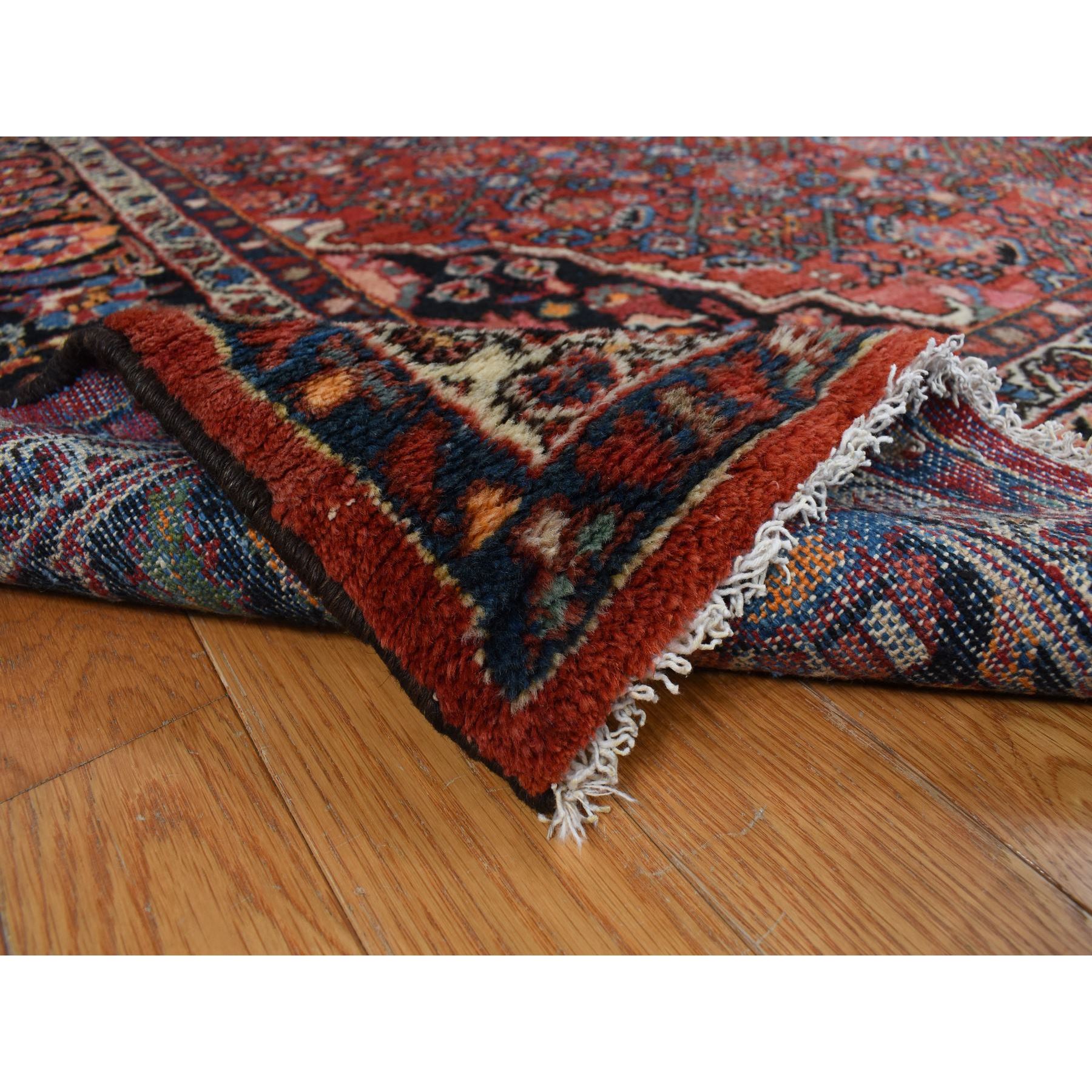 8’5″x11’3″ Pompeian Red, Hand Knotted Antique Persian Hamadan, Full Pile, Clean and Soft, Distinct Abrash, Soft and Velvety Wool, Excellent Condition, Not Worn Down, Oriental Rug HR78163