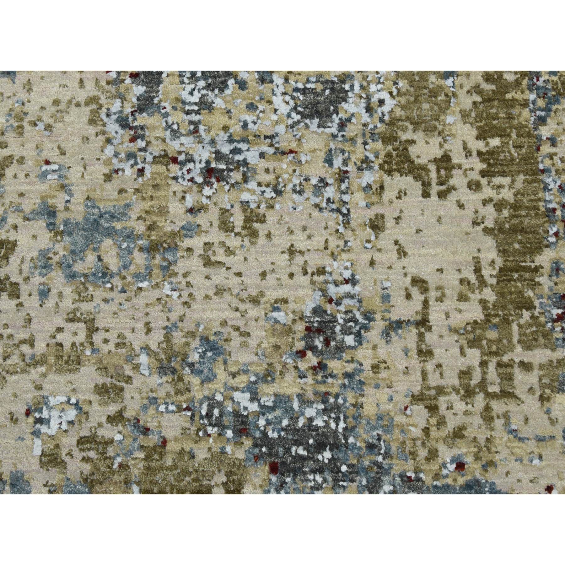 8’5″x8’5″ Parchment Color, Hand Knotted Abstract Design, Dense Weave Persian Knot, Soft Wool, Square Oriental Rug HR83075