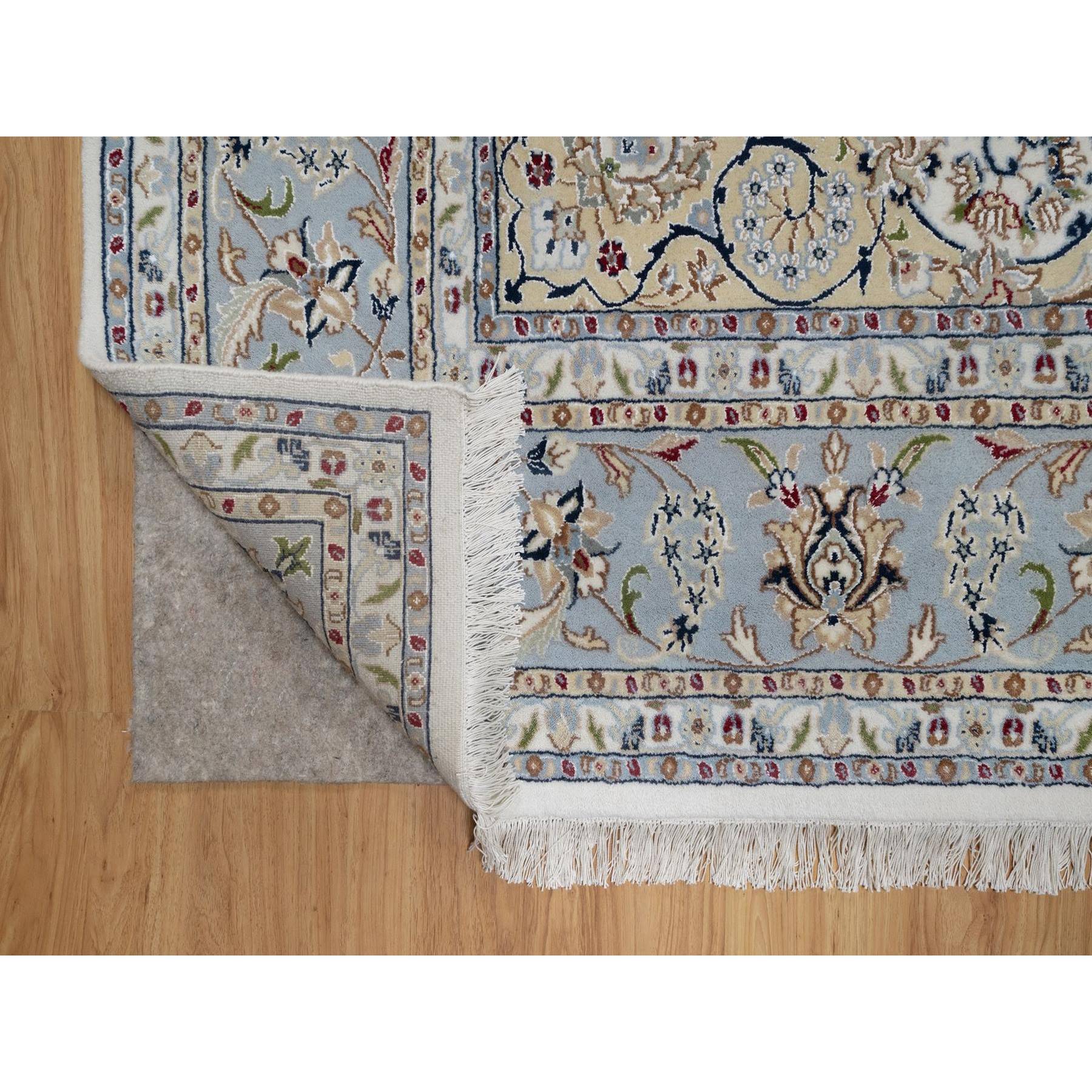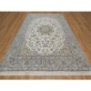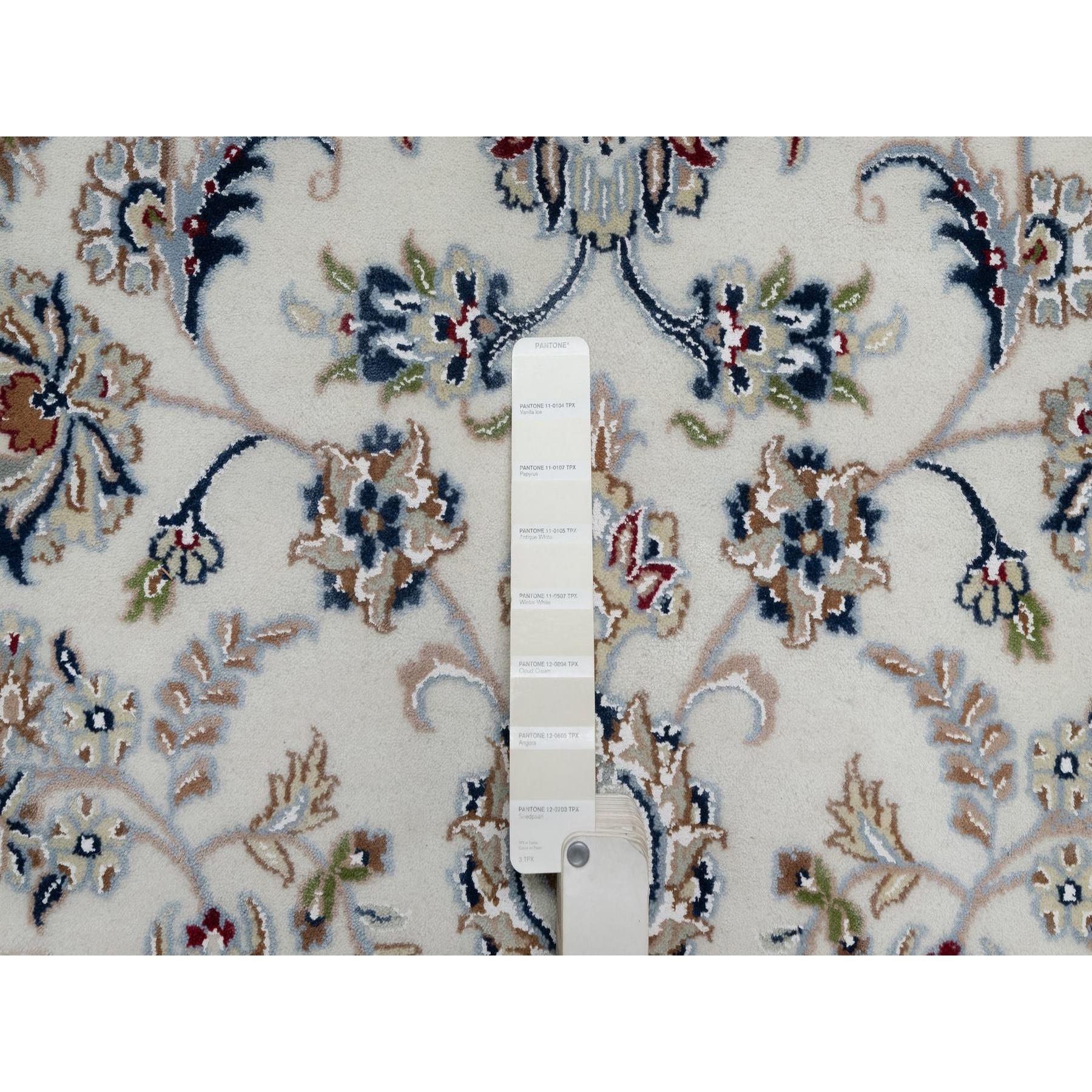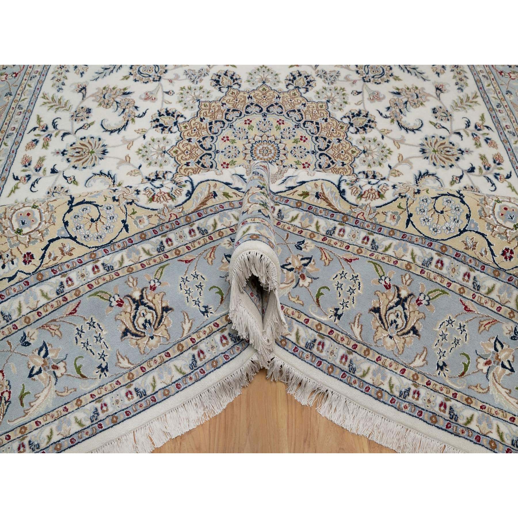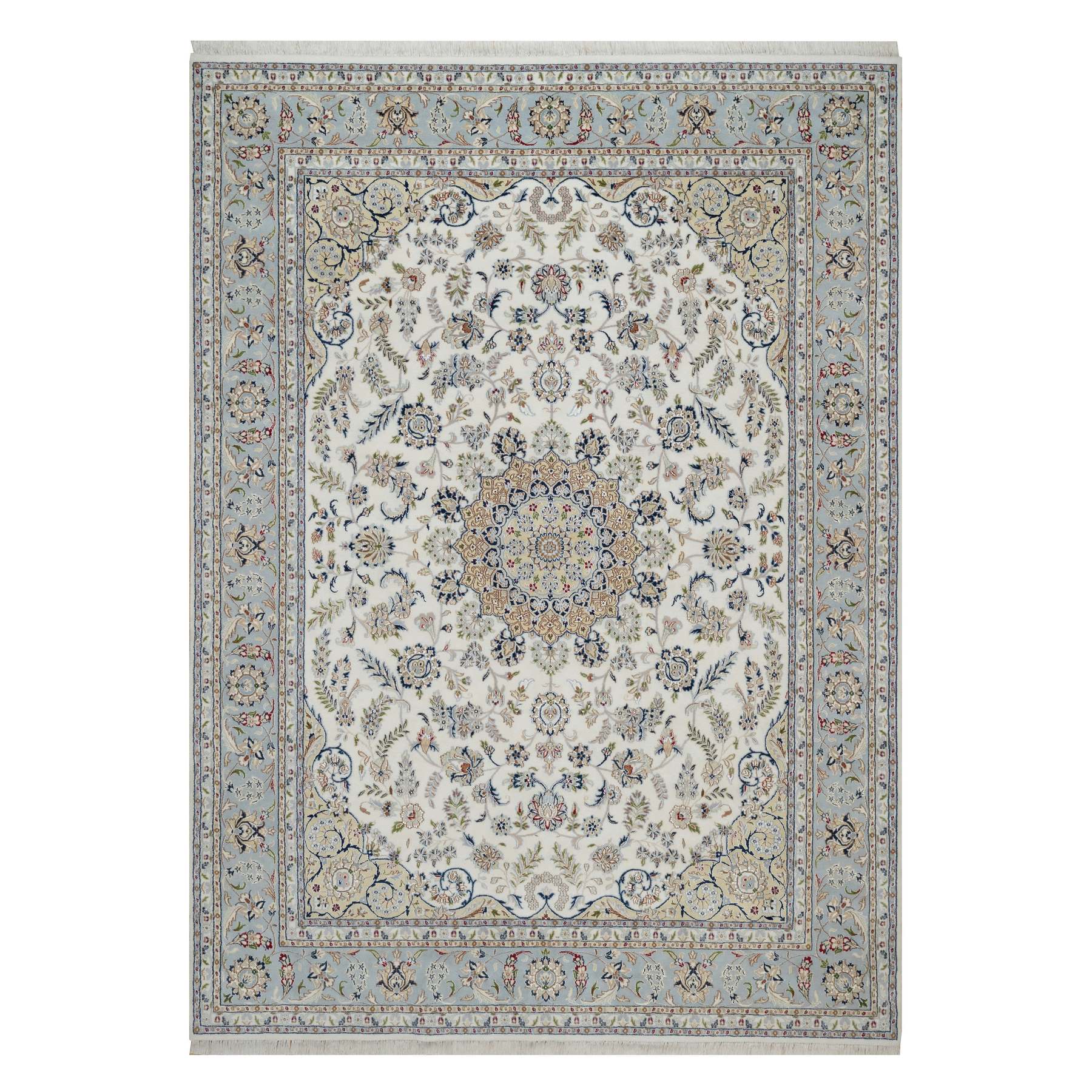 8’7″x12′ Whisper White, Wool and Silk, Nain with Flower Medallion Design, 250 KPSI, Soft Pile, Hand Knotted, Oriental Rug HR91547