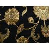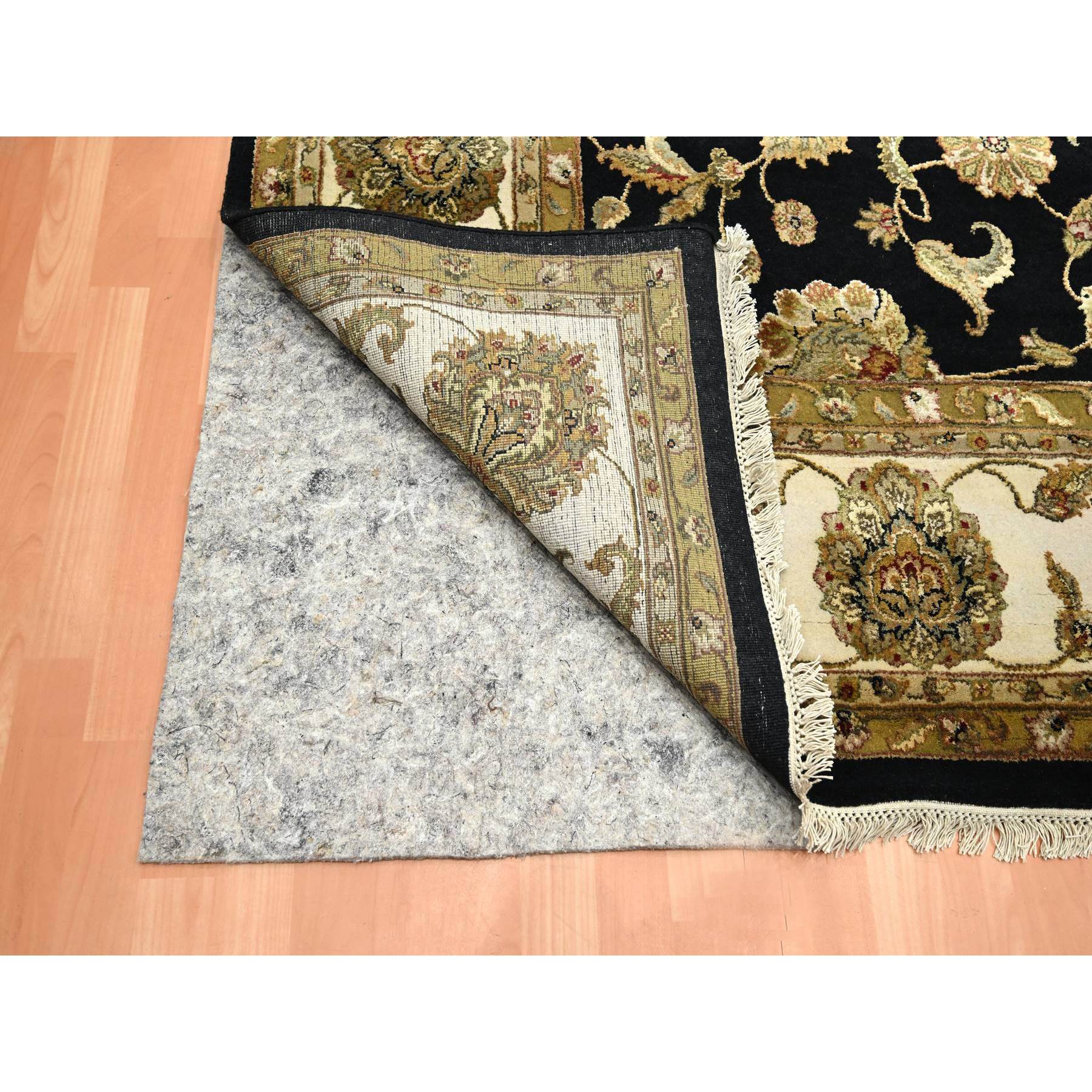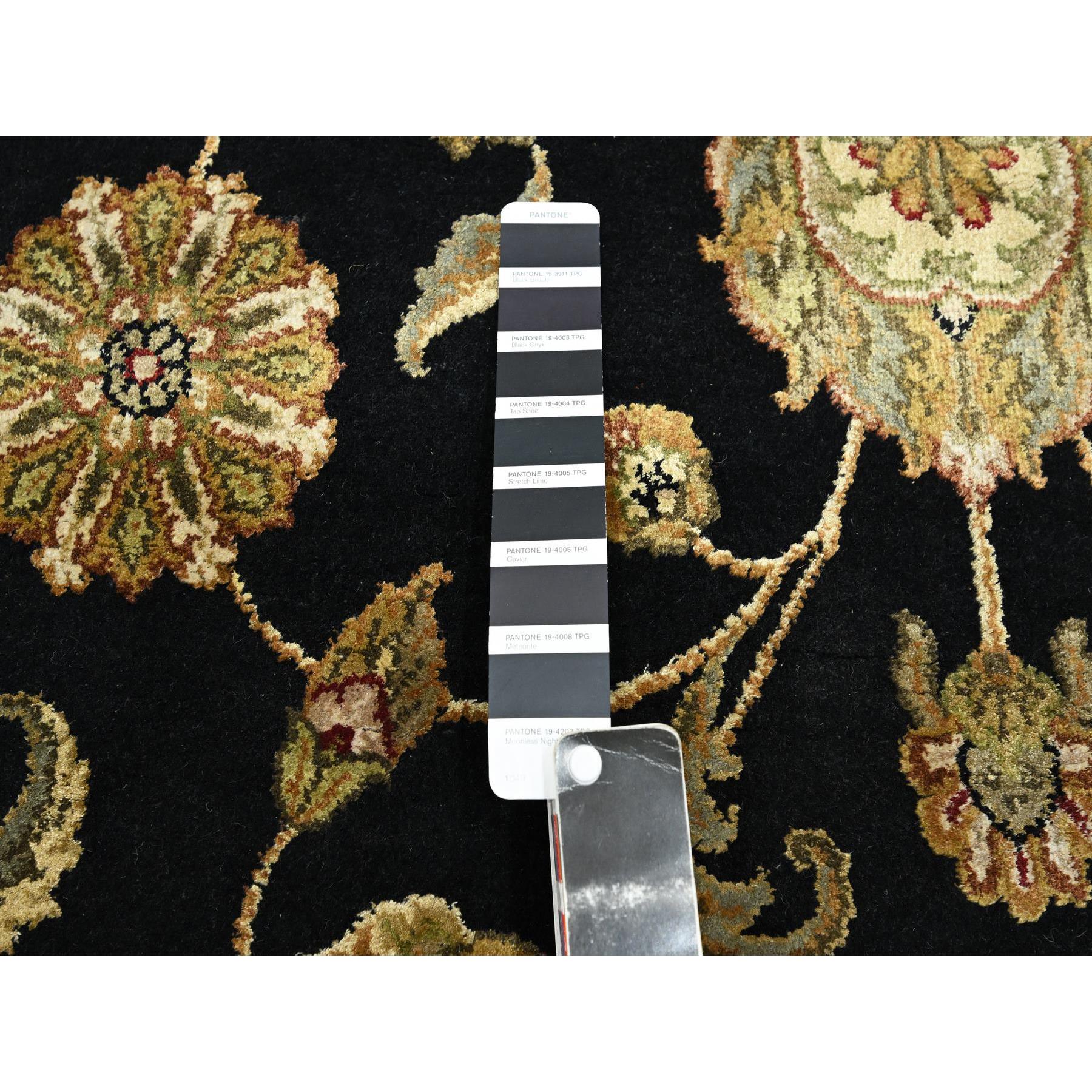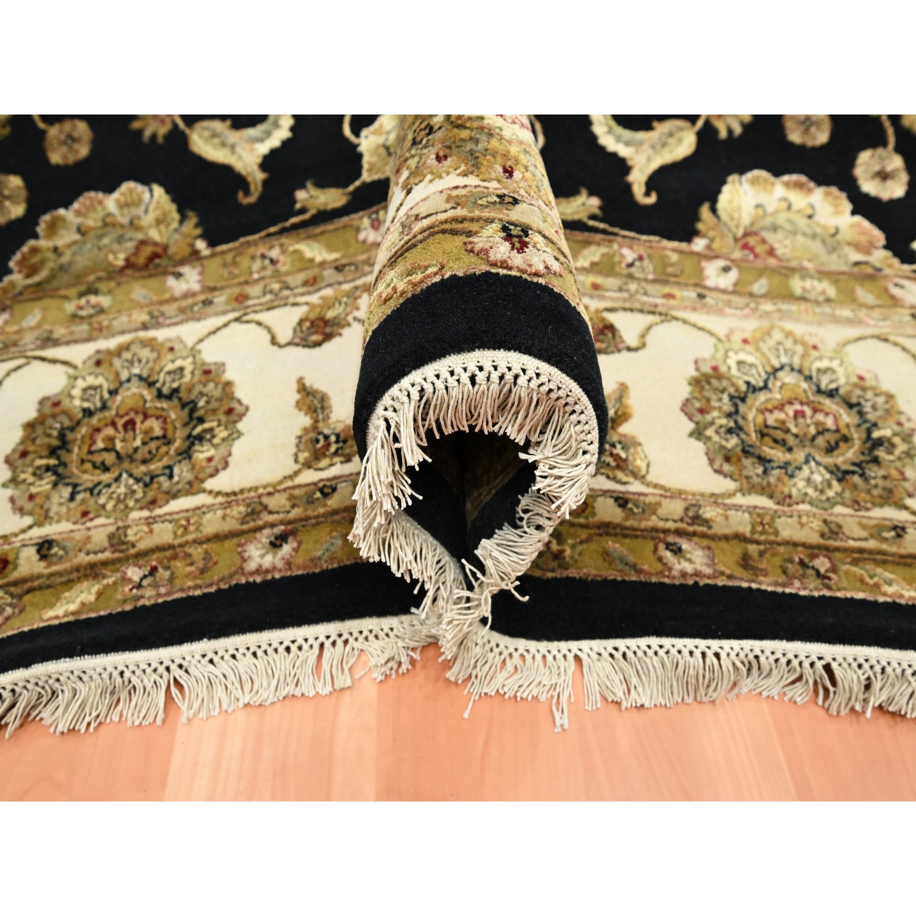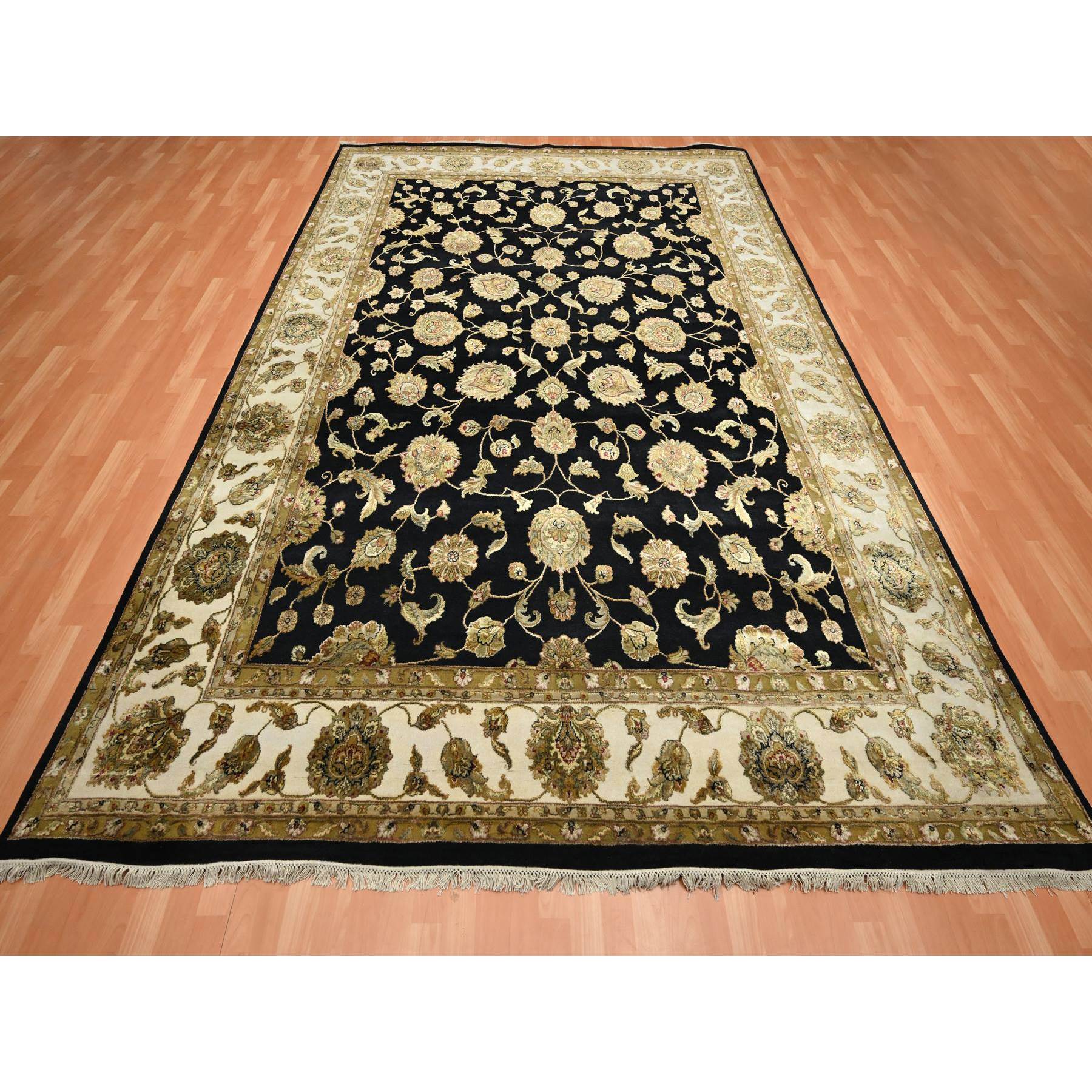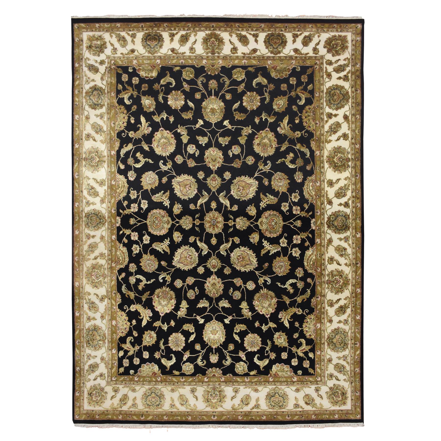 8’7″x12’1″ Jade Black, Rajasthan with All Over Leaf Design, Hand Knotted, Wool and Silk, Densely Woven, Thick and Plush, Oriental Rug HR75591