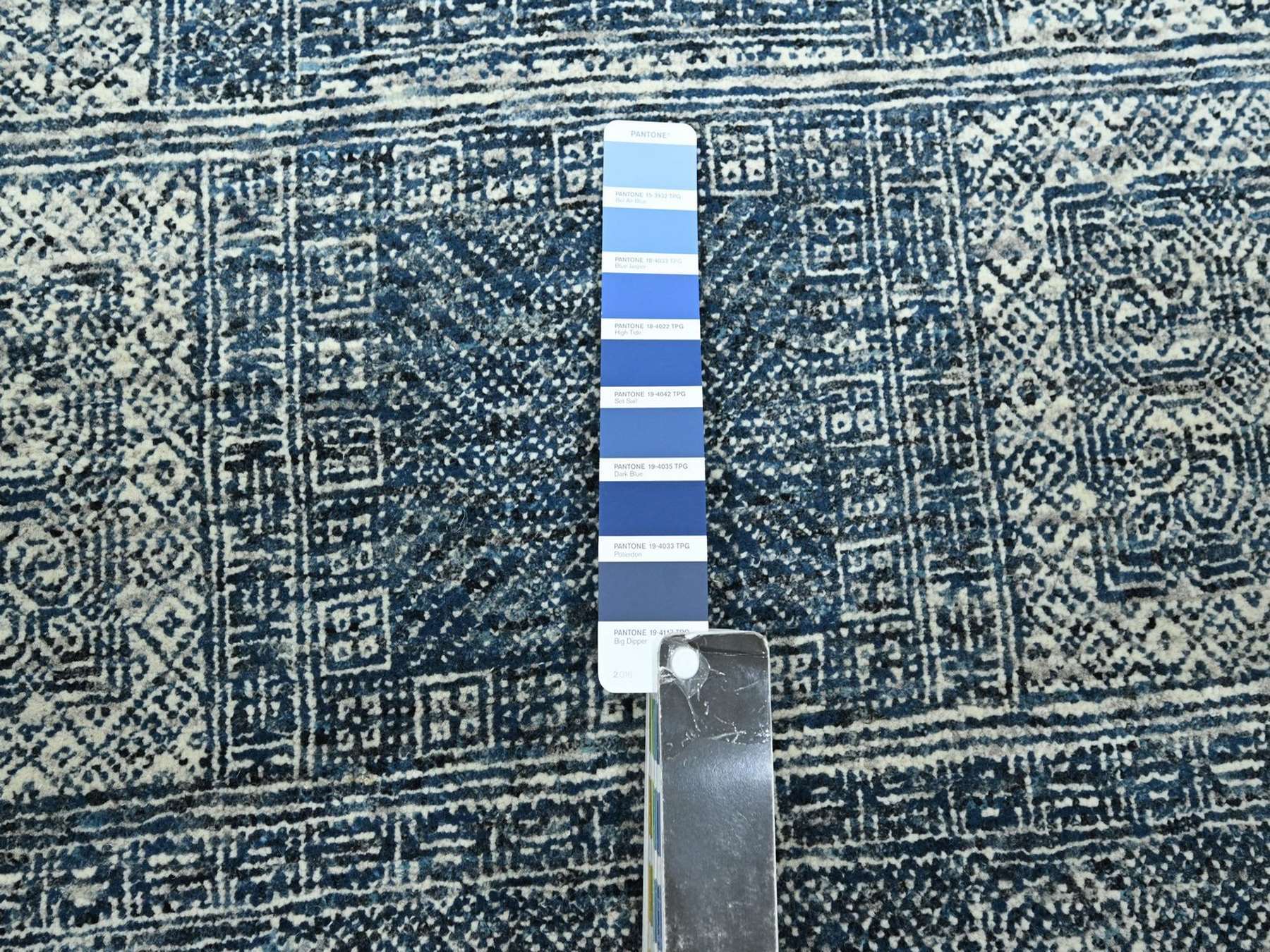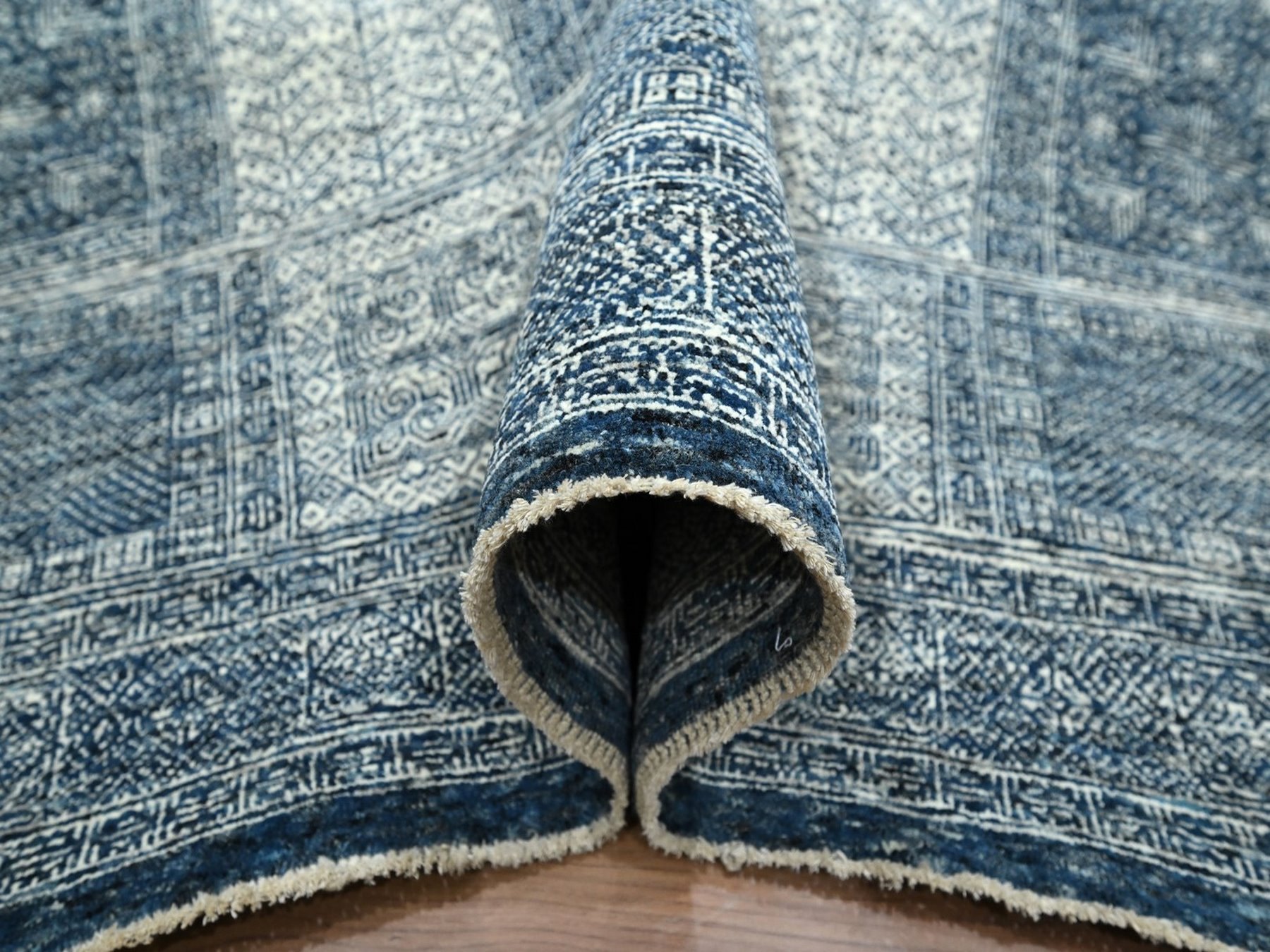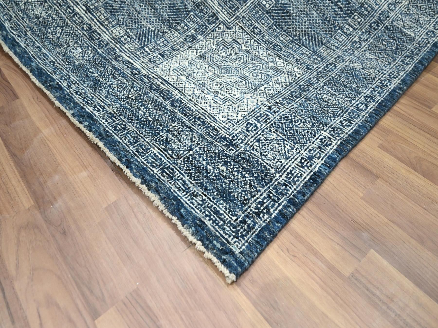 8’x10’1″ Aegean Blue, Garden Design, Tone on Tone, Hand Knotted, Pure Wool, Oriental Rug HR76560