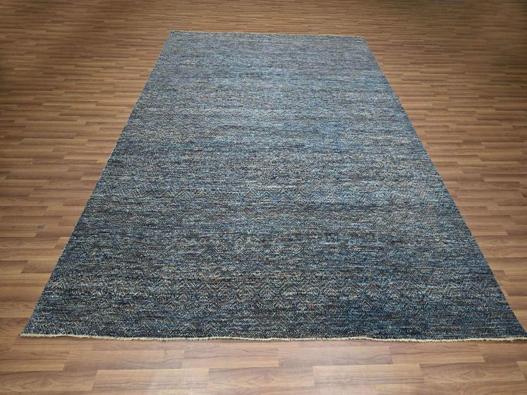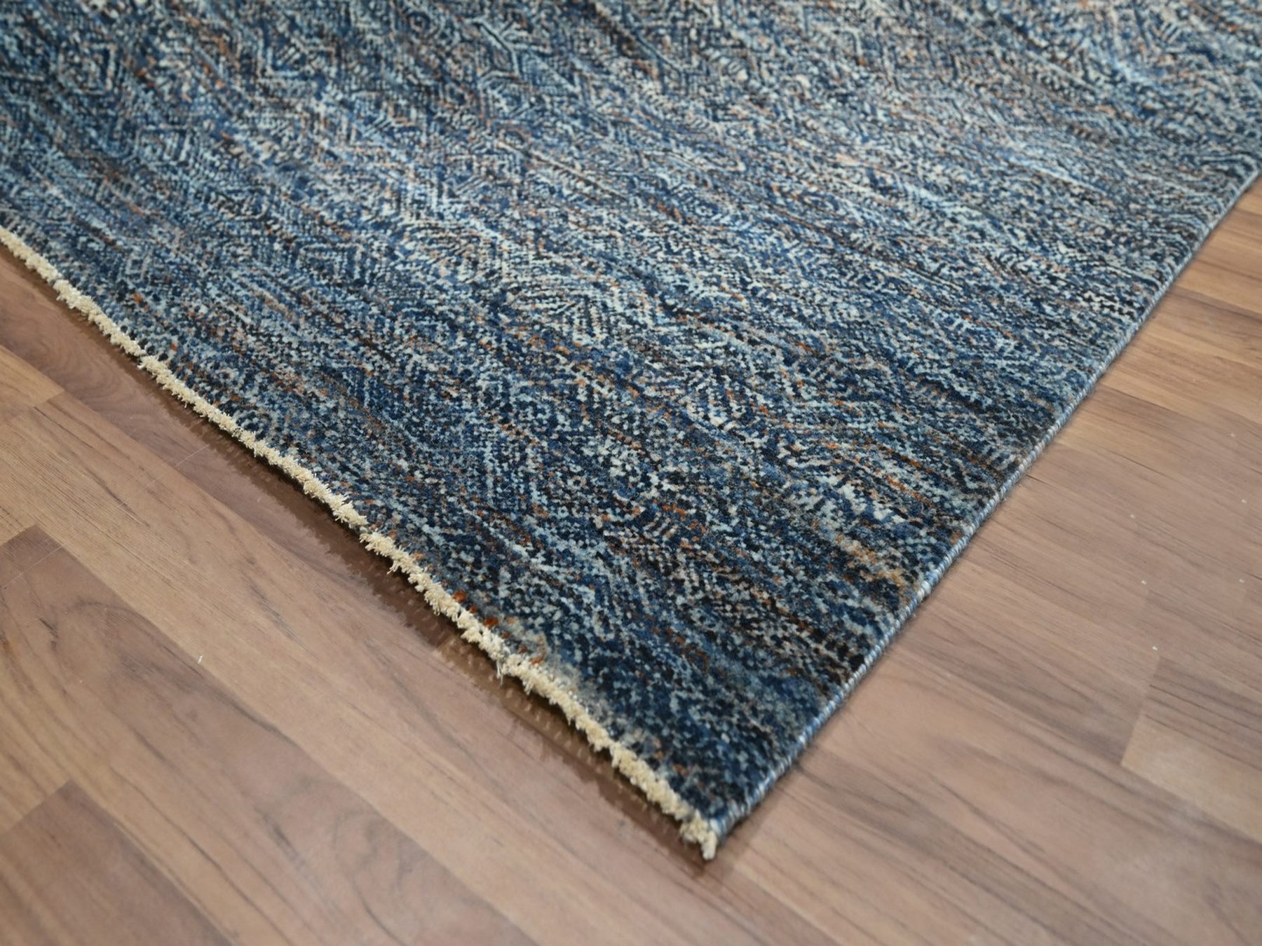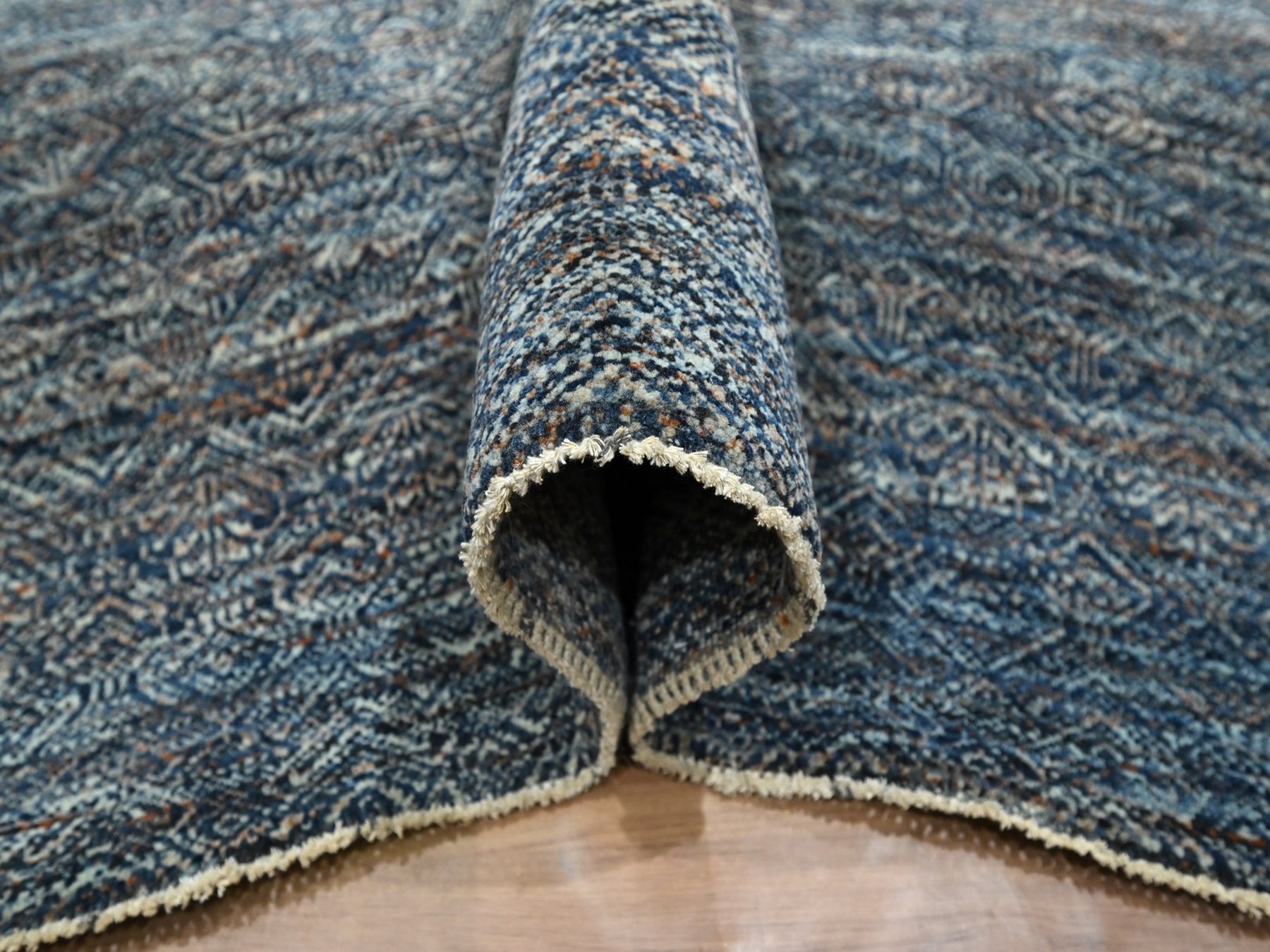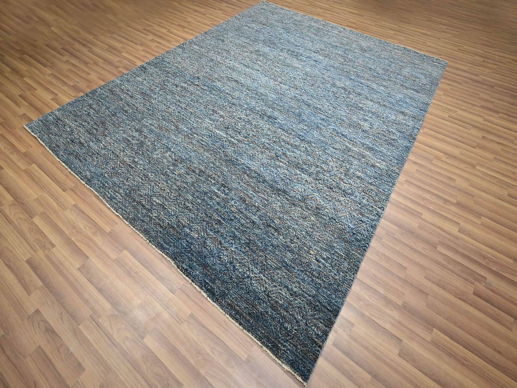 8’x10’1″ Aegean Blue, Kohinoor Herat Pattern, Small Geometric Repetitive Diamond Design, Soft Wool, Tone On Tone, Hand Knotted, Oriental Rug HR76567