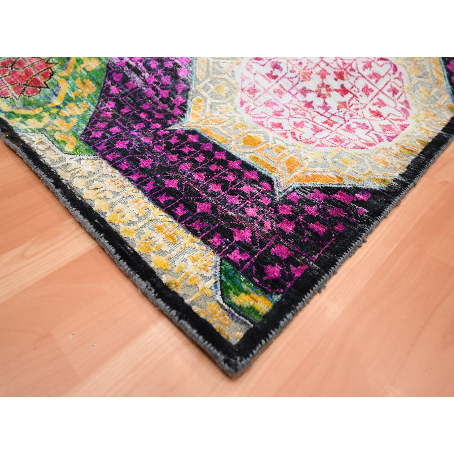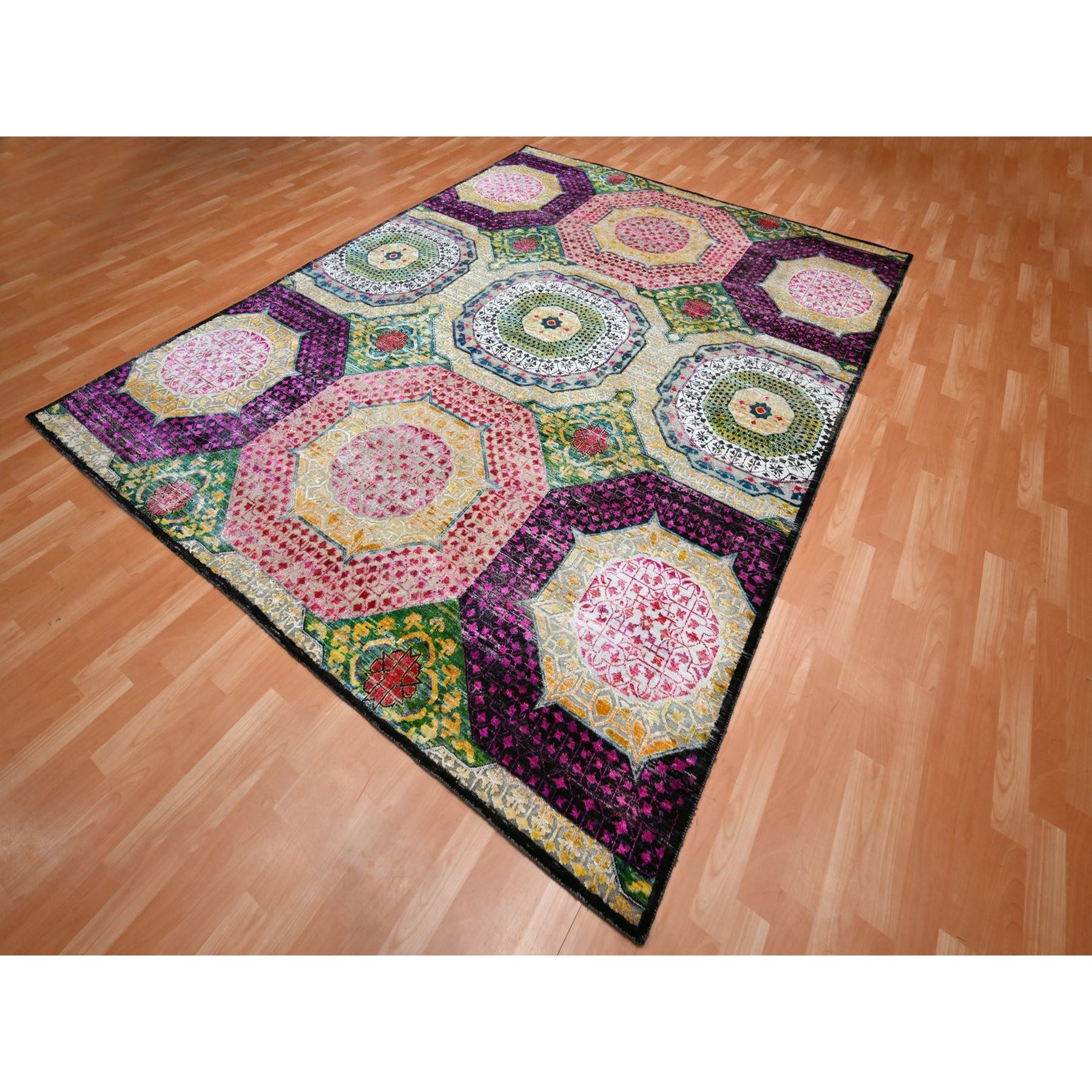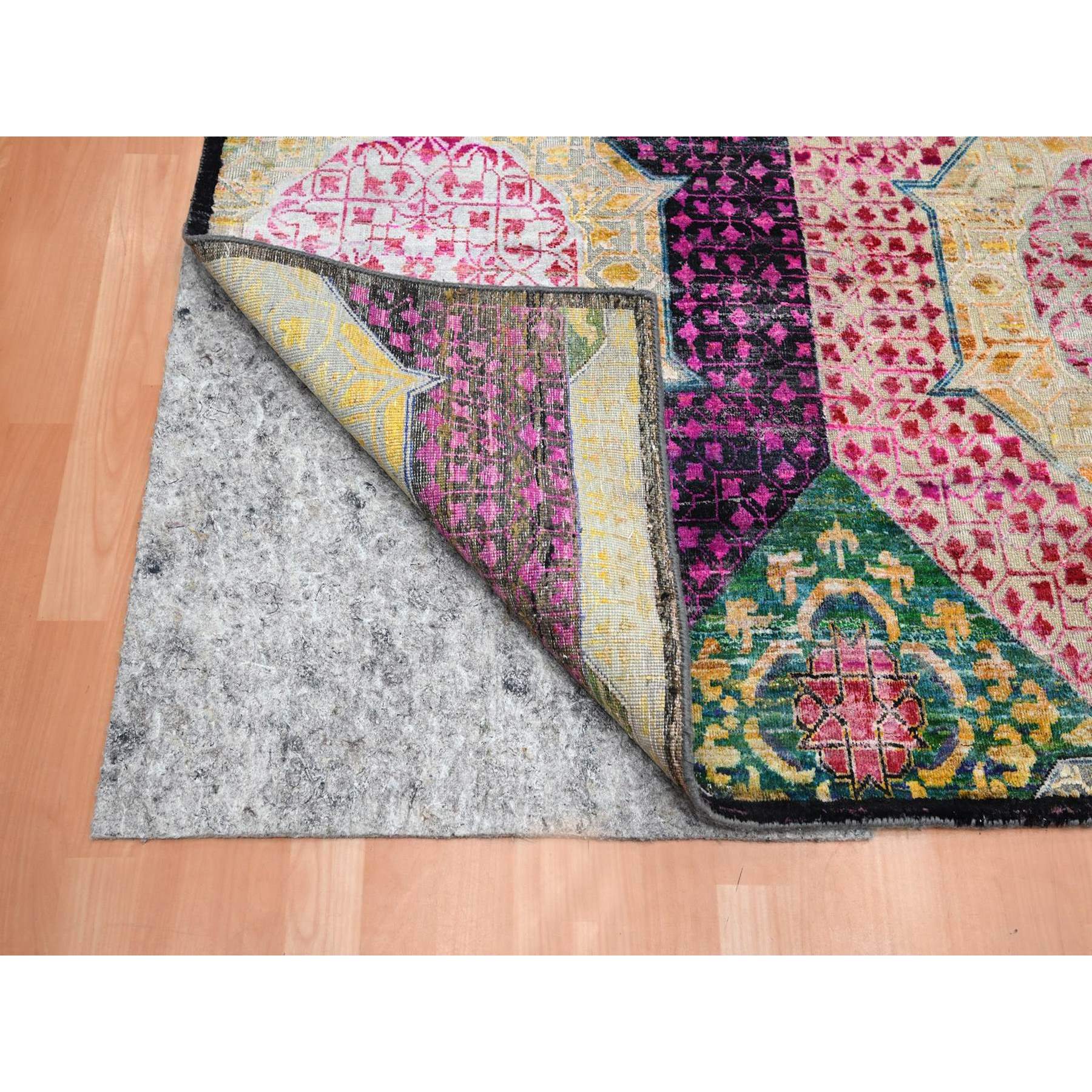 8’x10’2″ Lemon Yellow, Colorful Mamluk Design, Hand Knotted, Sari Silk with Textured Wool, Oriental Rug HR75729