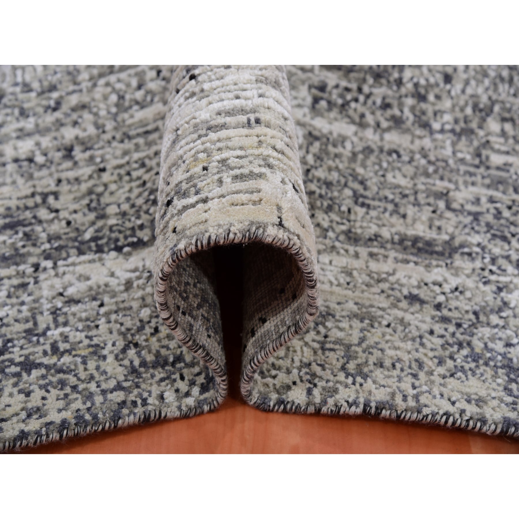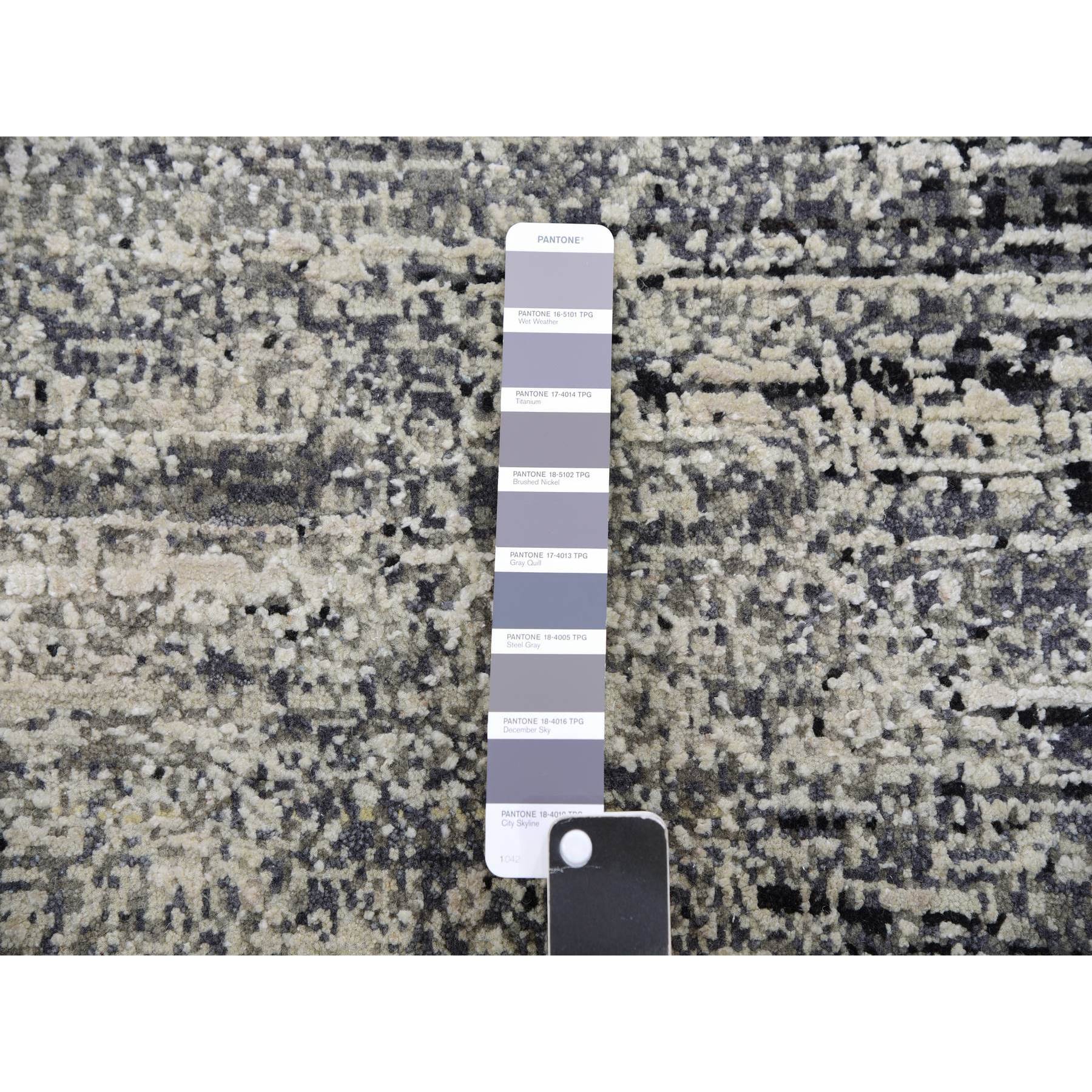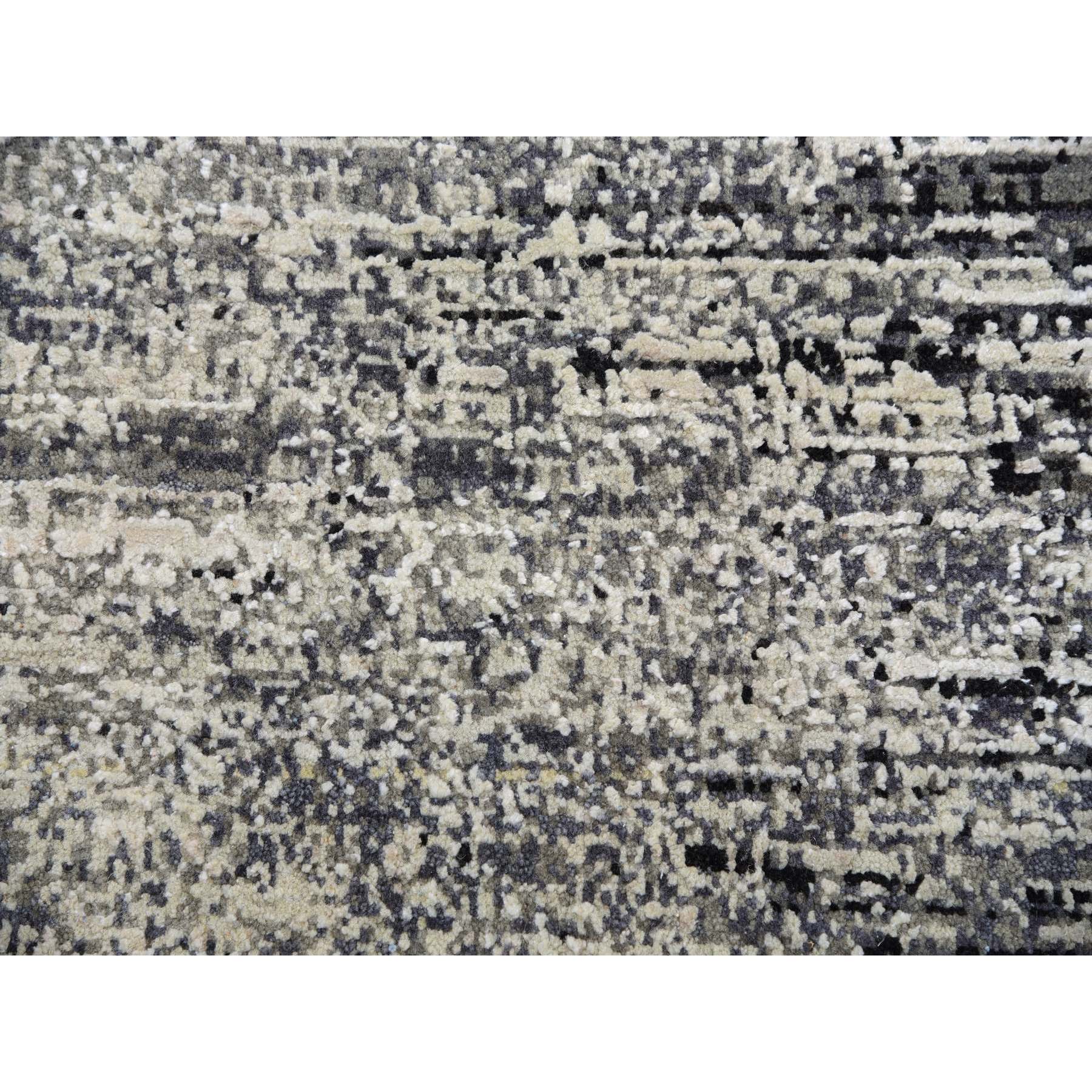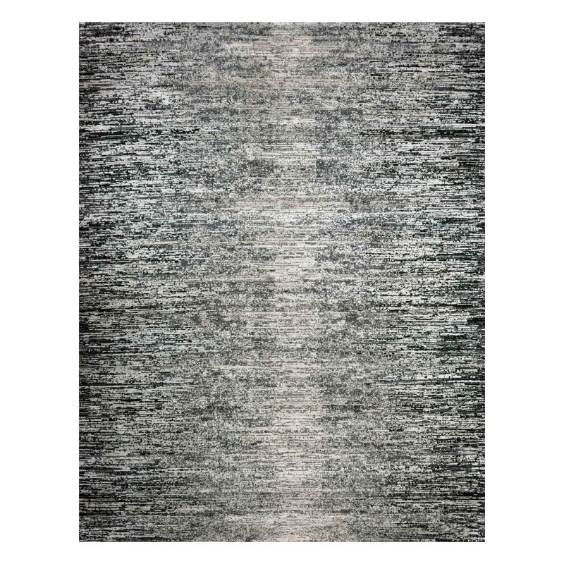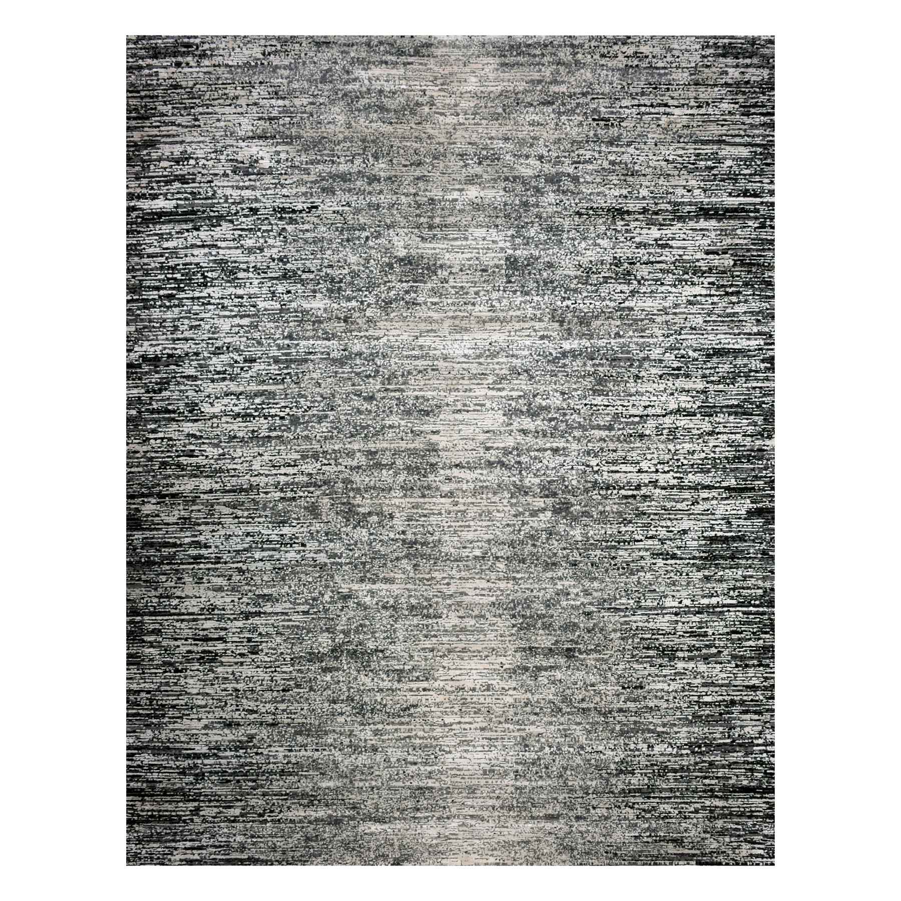 8’x10’3″ Domino Black with Misty Gray, Modern Striae Design, Soft Pile Wool and Silk Hand Knotted, Oriental Rug HR75344