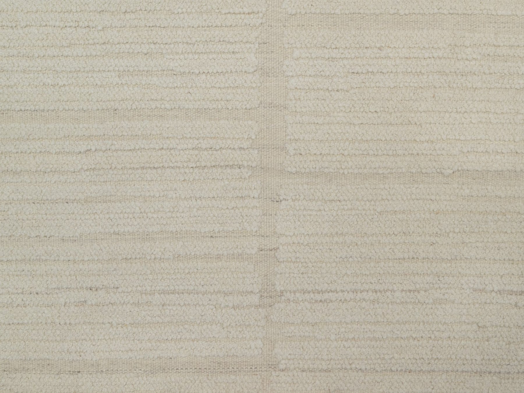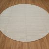 8’x8′ Lace White, Modern, Piled Flat Weave, Tone on Tone, Textured, Undyed Natural Wool, Hand Knotted, Round, Oriental Rug HR92296