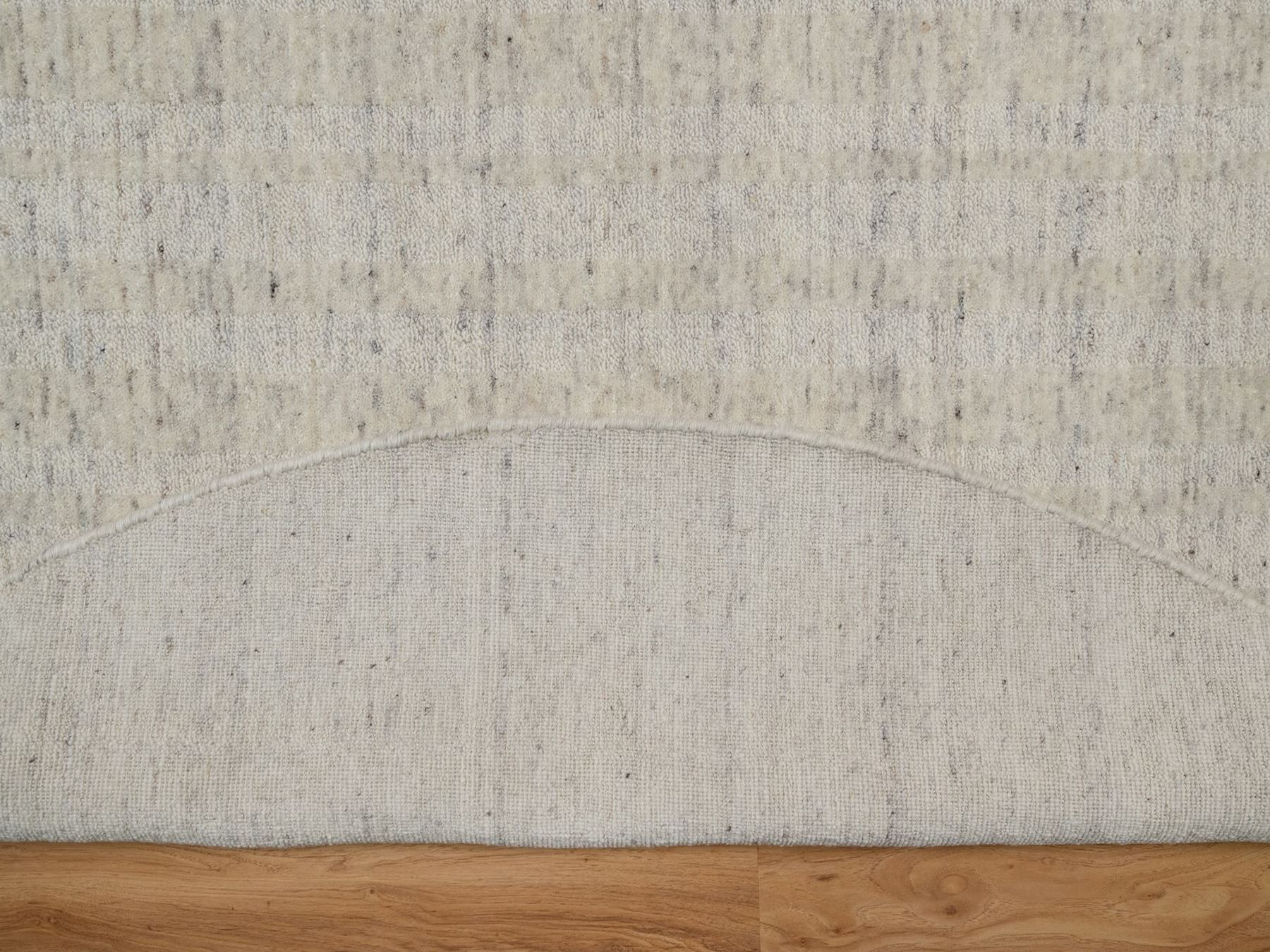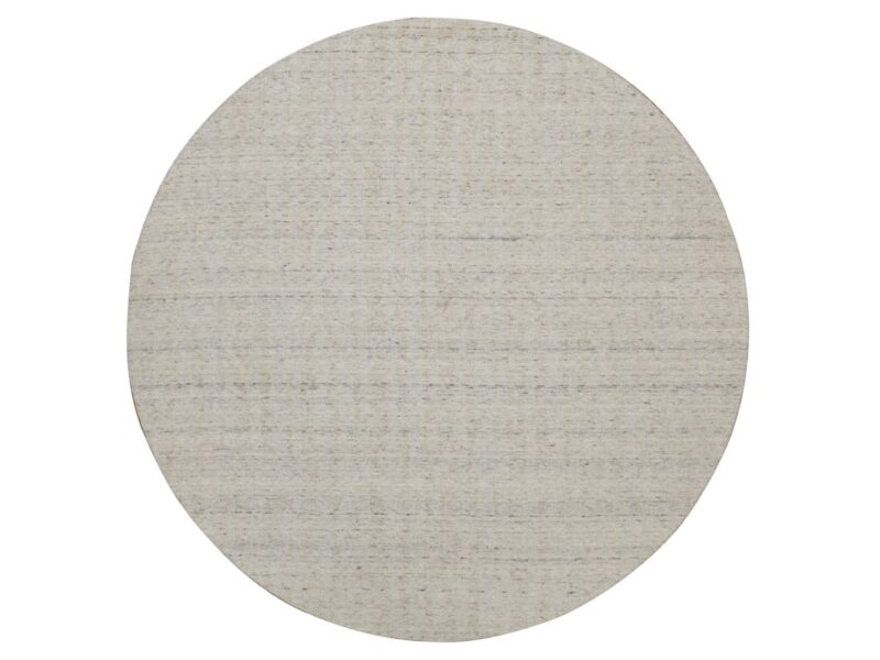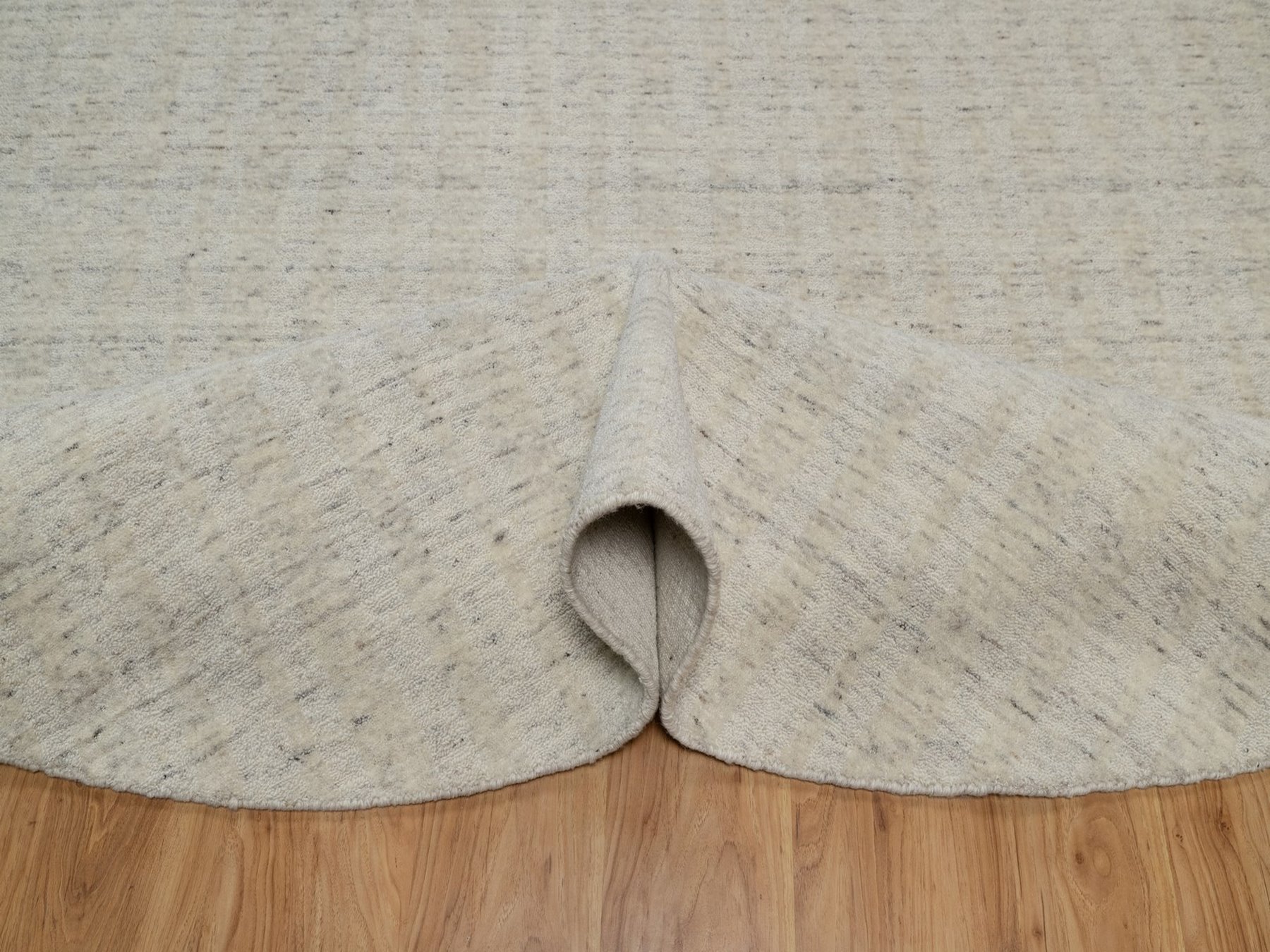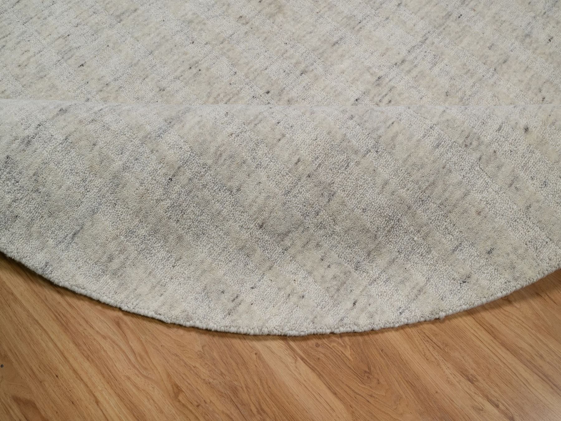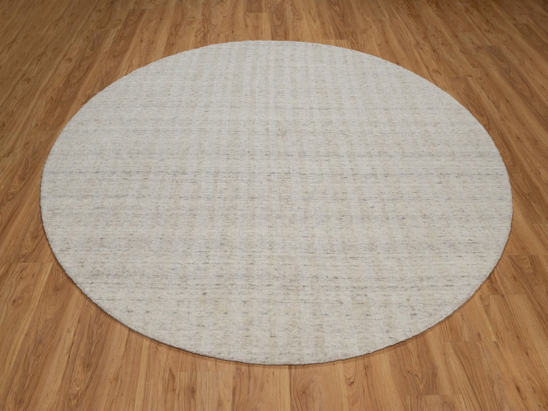 8’x8′ Linen White, Undyed Natural Wool, Vertical Stripes Design with Salt and Pepper Effect, Hand Loomed, Round, Oriental Rug HR91676