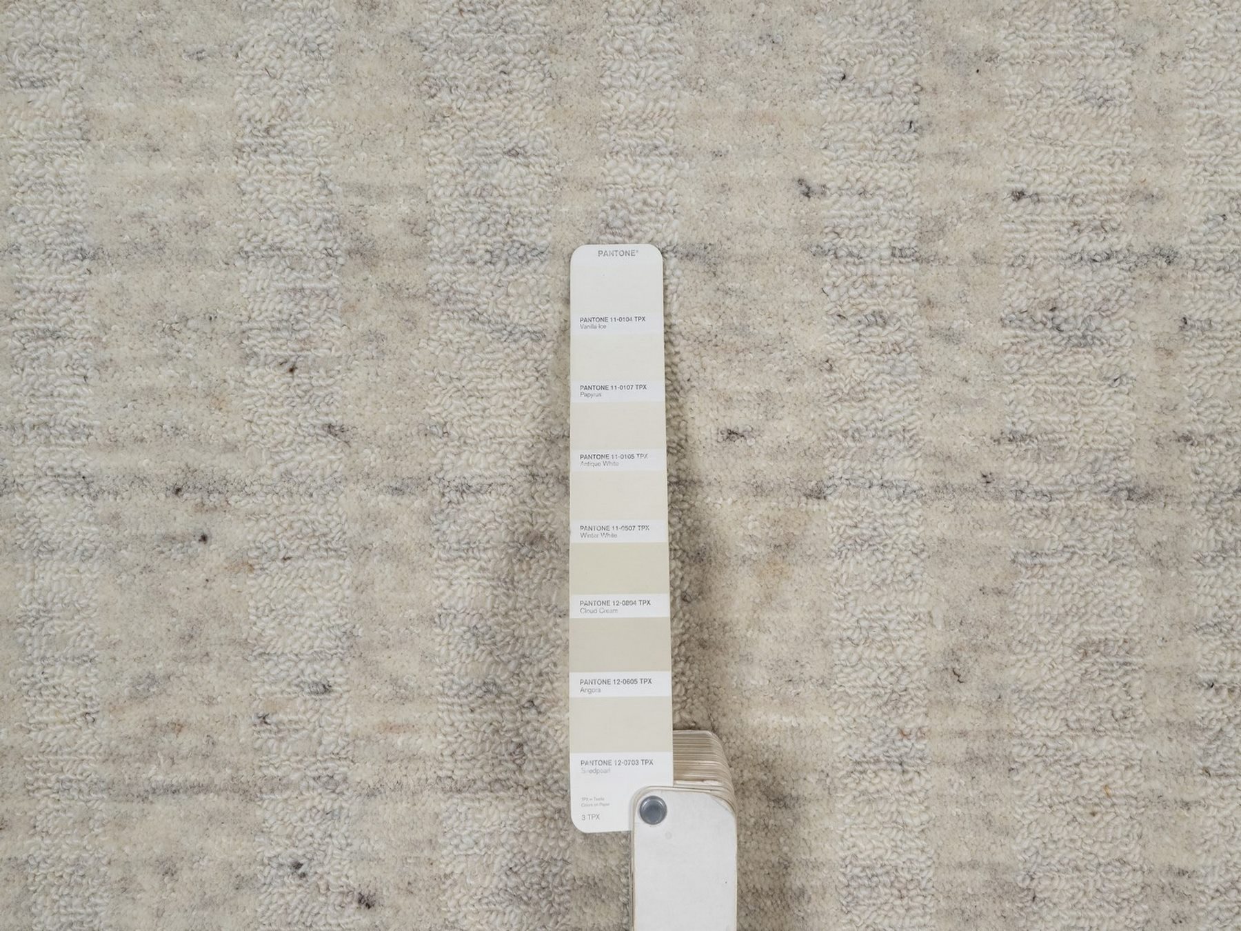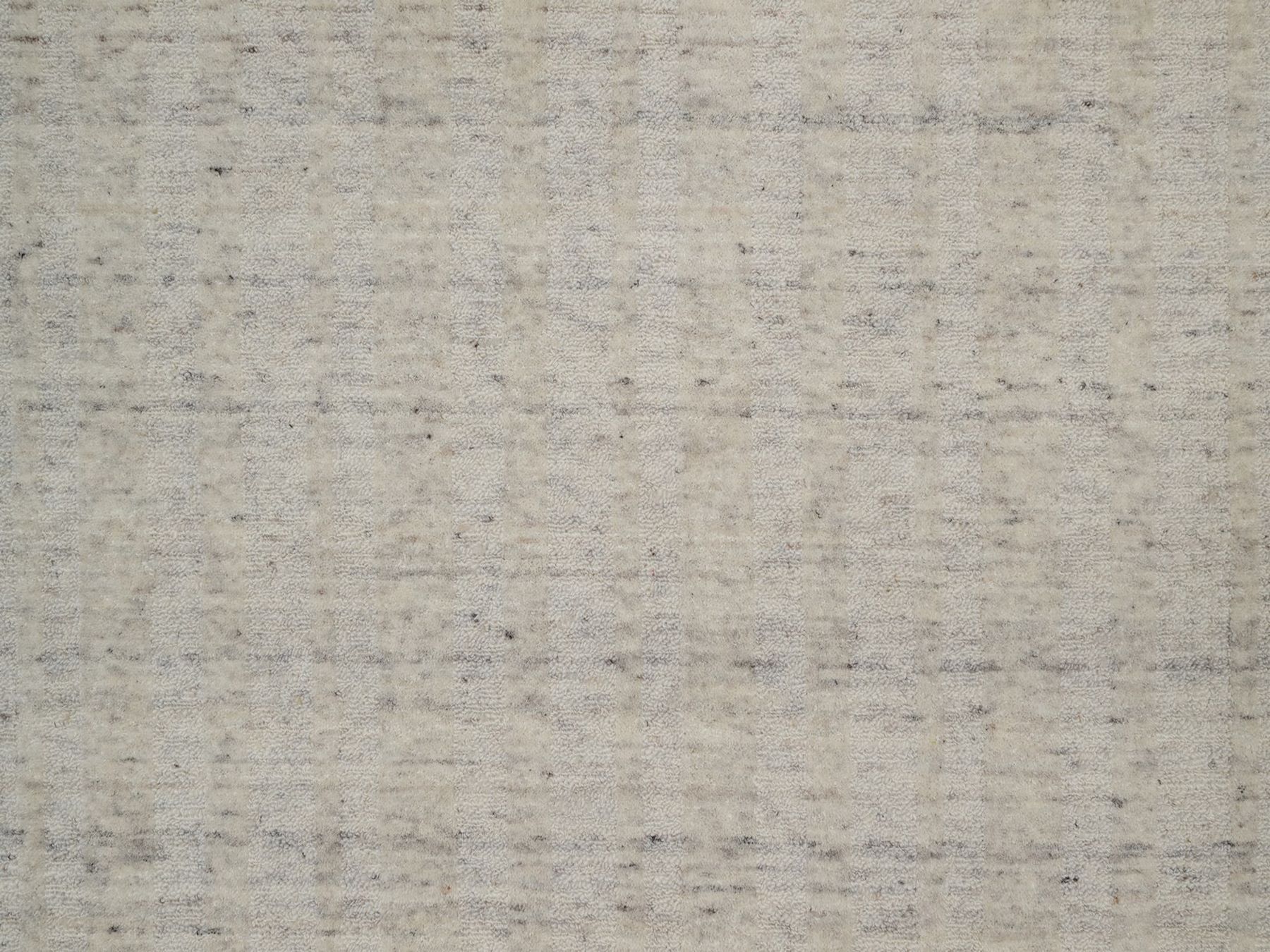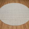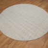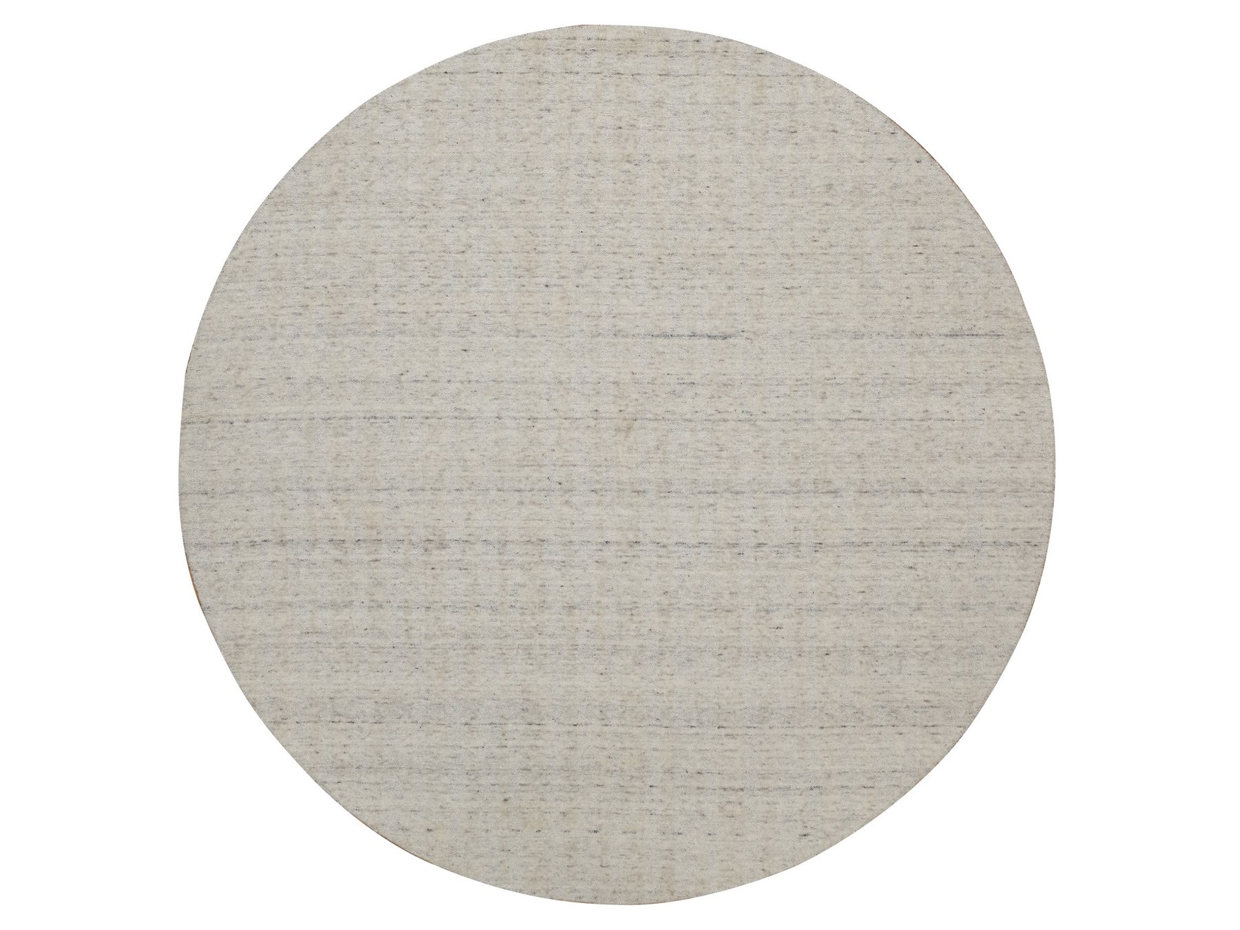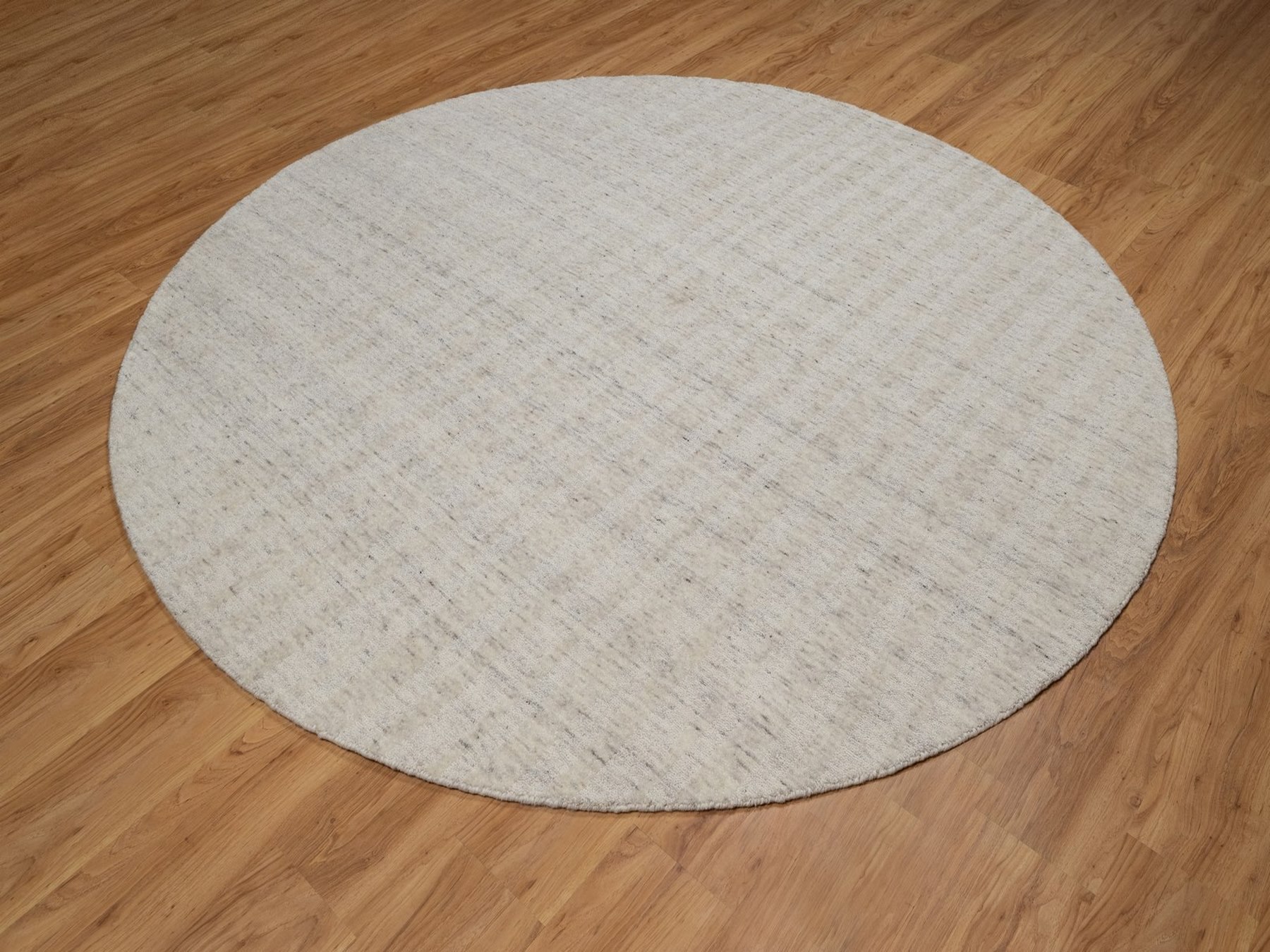 8’x8′ Linen White, Undyed Natural Wool, Vertical Stripes Design with Salt and Pepper Effect, Hand Loomed, Round, Oriental Rug HR91676