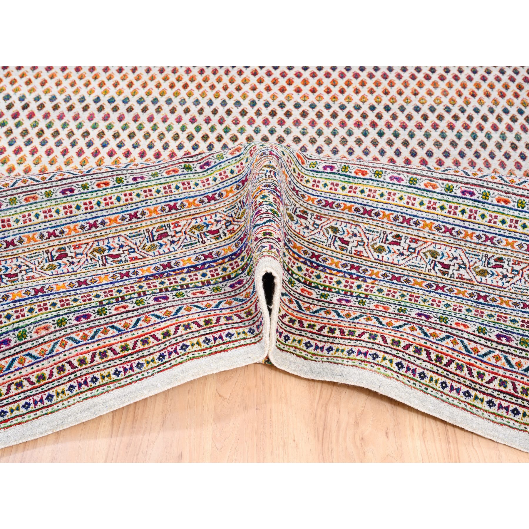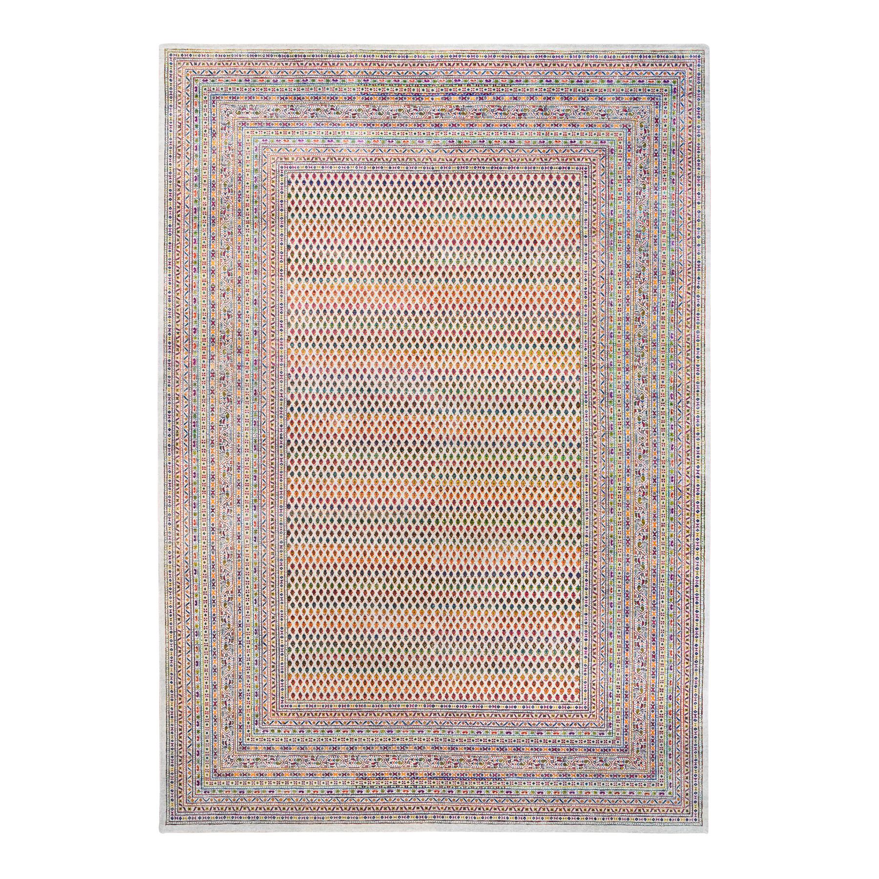 9’10″x14′ Colorful Wool And Sari Silk Sarouk Mir Inspired With Repetitive Boteh Design Hand Knotted Oriental Rug HR62309