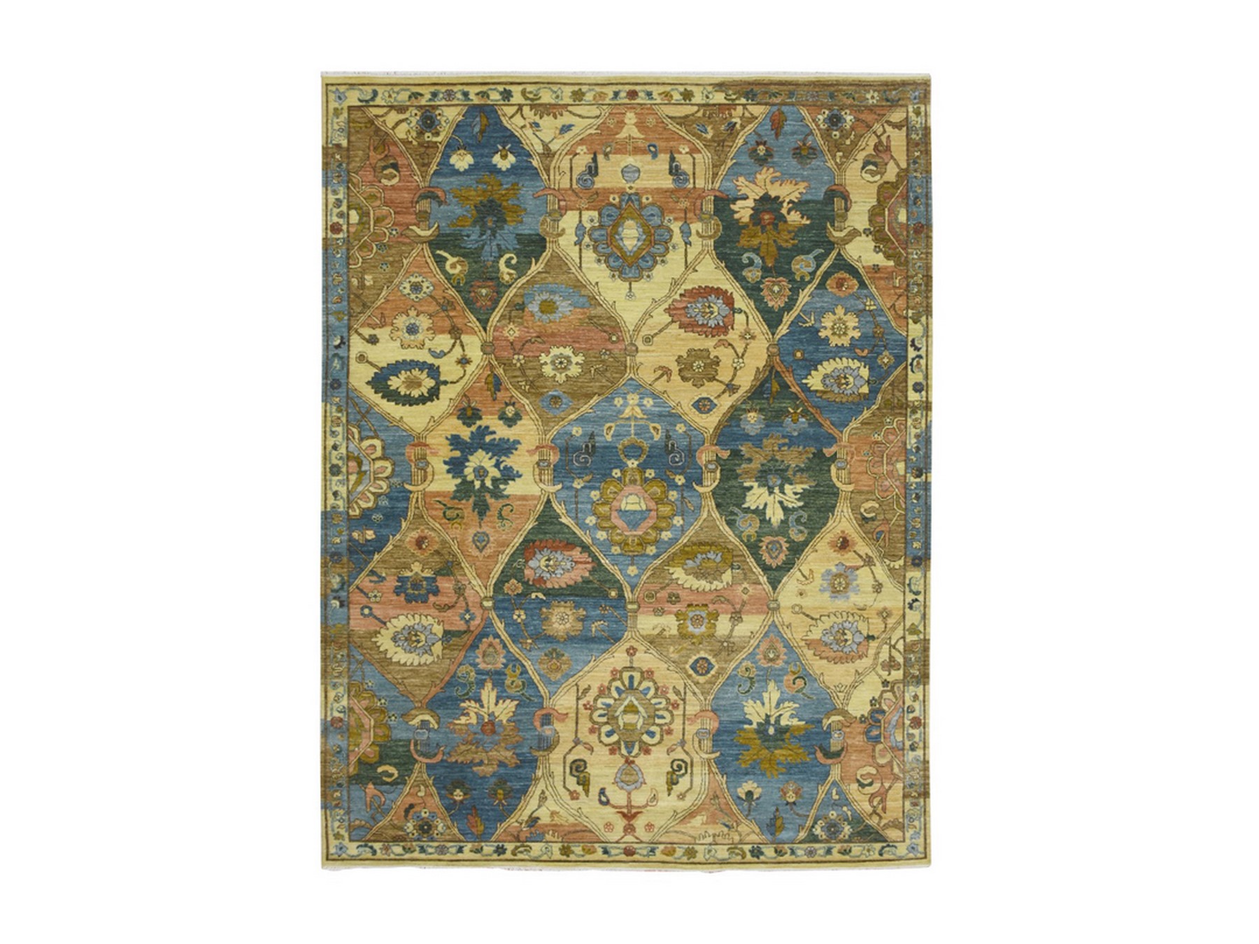 9’1″x12′ Beige, Colorful Trellis Garden Design with Large Floral Elements, Distinct Abrash, Vegetable Dyes, 100% Wool, Hand Knotted, Agra, Oriental Rug HR75869