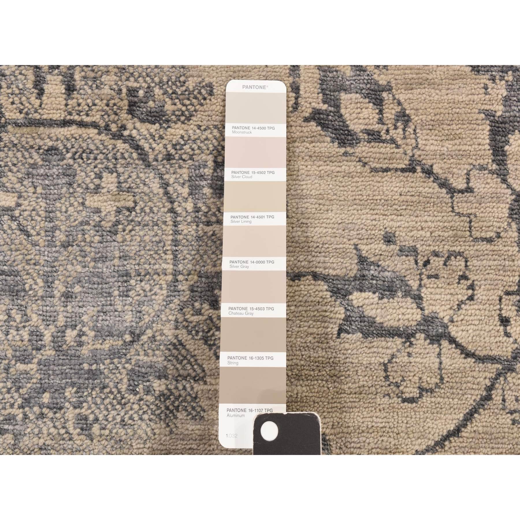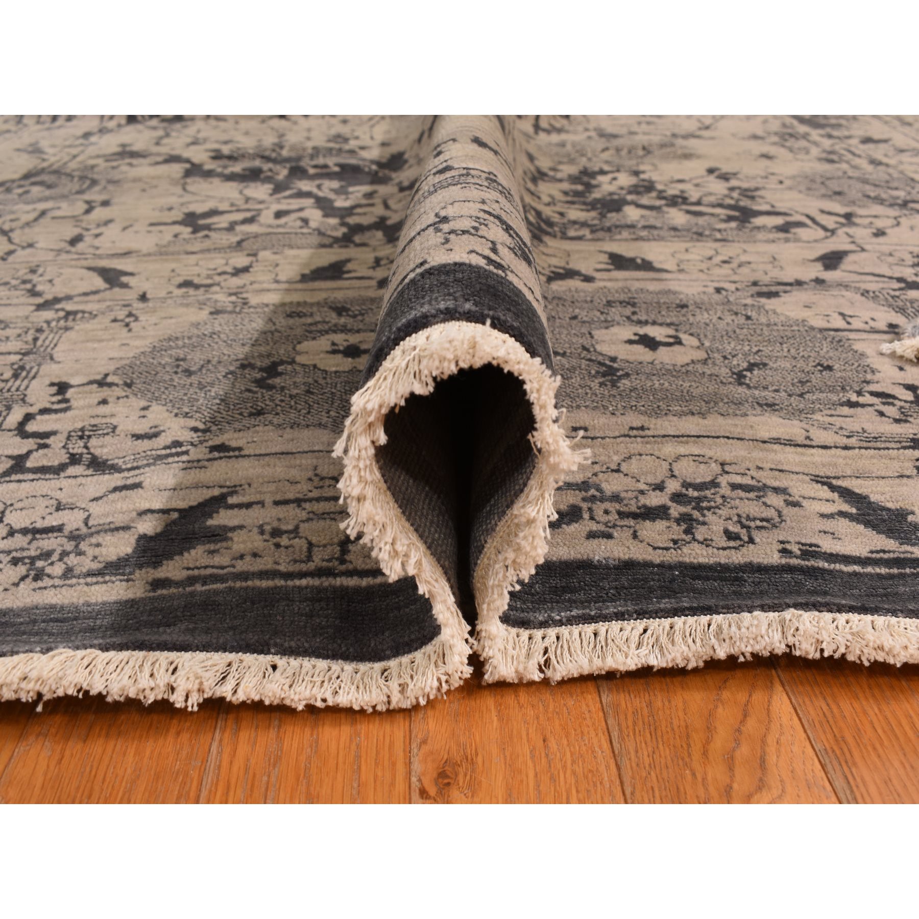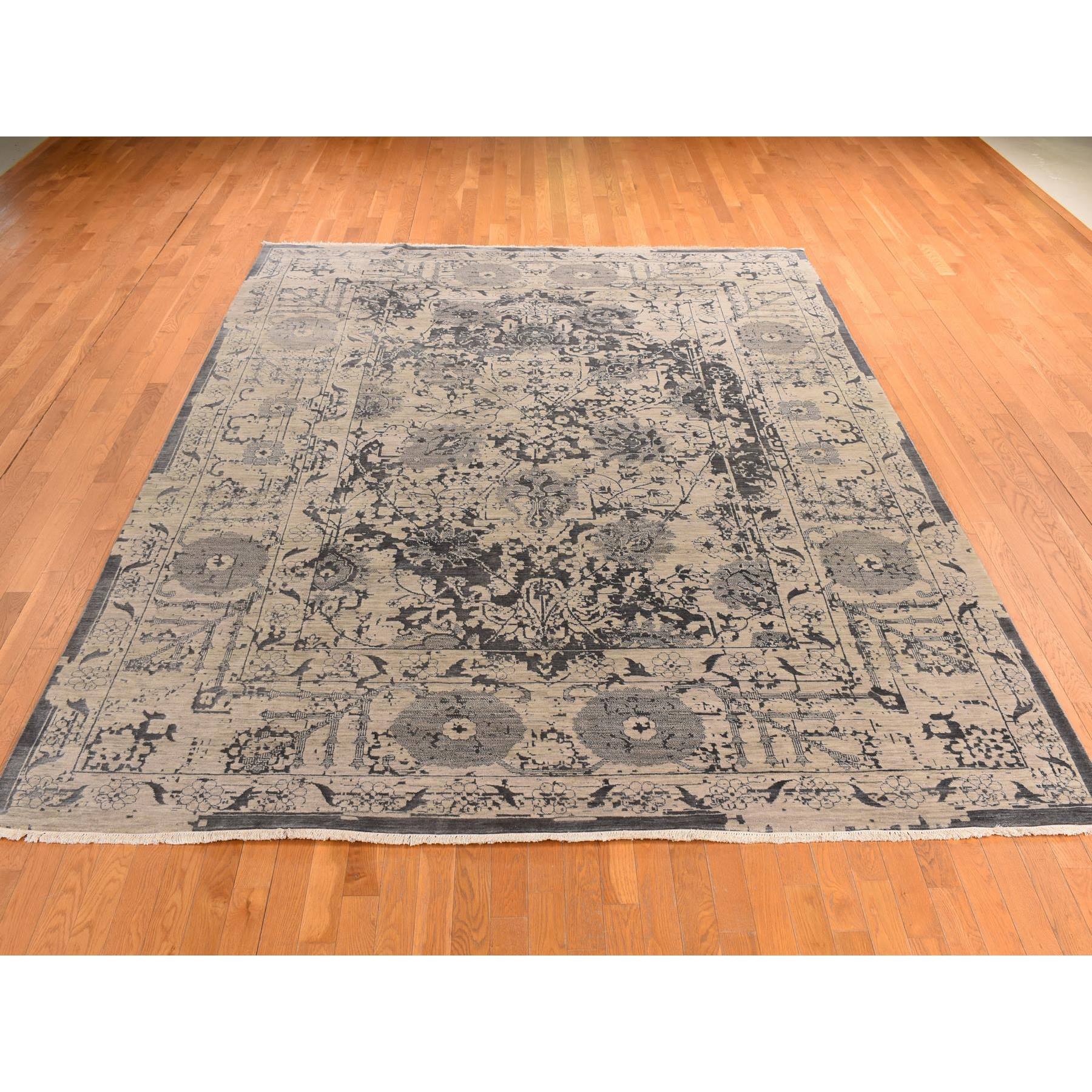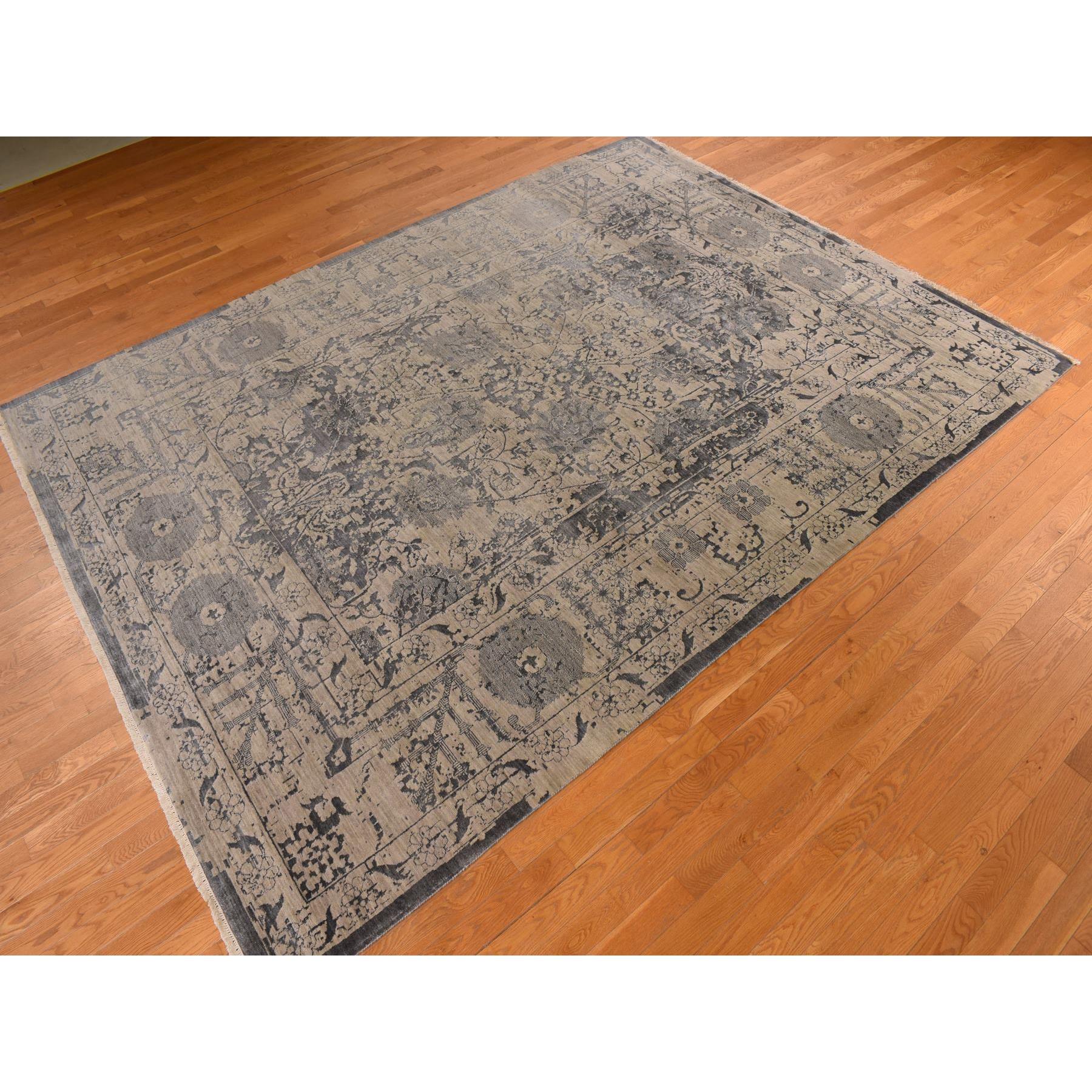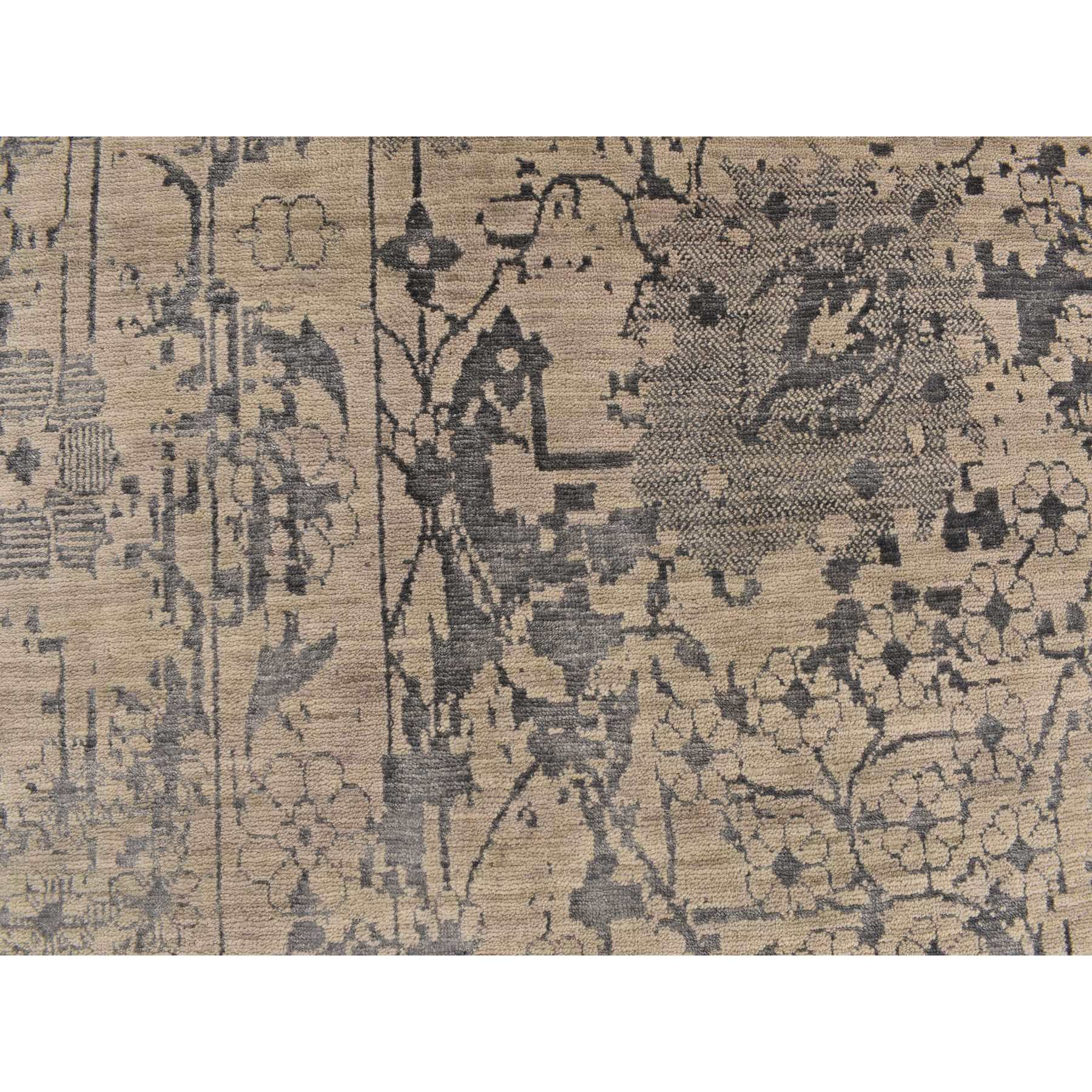 9’1″x12′ Tan Color, Broken and Erased Persian Design, Wool and Silk, Transitional, Hand Knotted, Oriental Rug HR78288