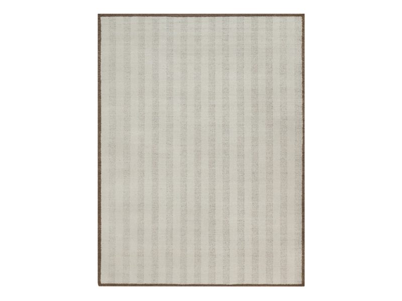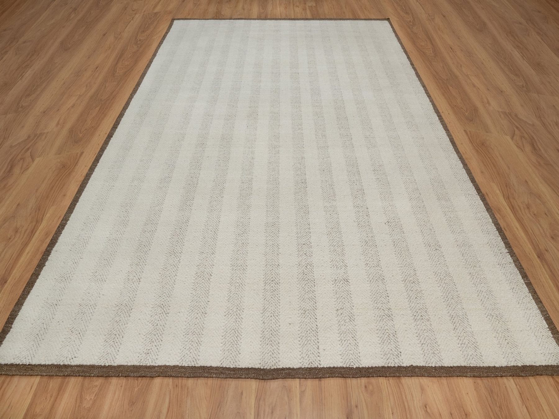 9’1″x12′ Winter White, Modern, Vertical Stripes Design, Piled Flat Weave, Tone on Tone, Textured, Hand Knotted, Undyed Natural Wool, Oriental Rug HR92150
