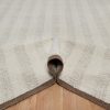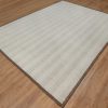 9’1″x12′ Winter White, Modern, Vertical Stripes Design, Piled Flat Weave, Tone on Tone, Textured, Hand Knotted, Undyed Natural Wool, Oriental Rug HR92152