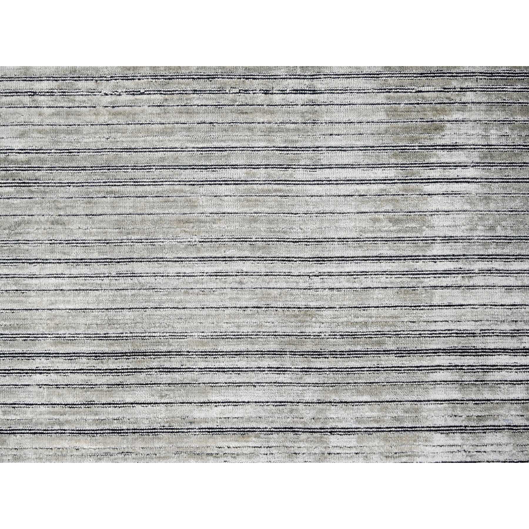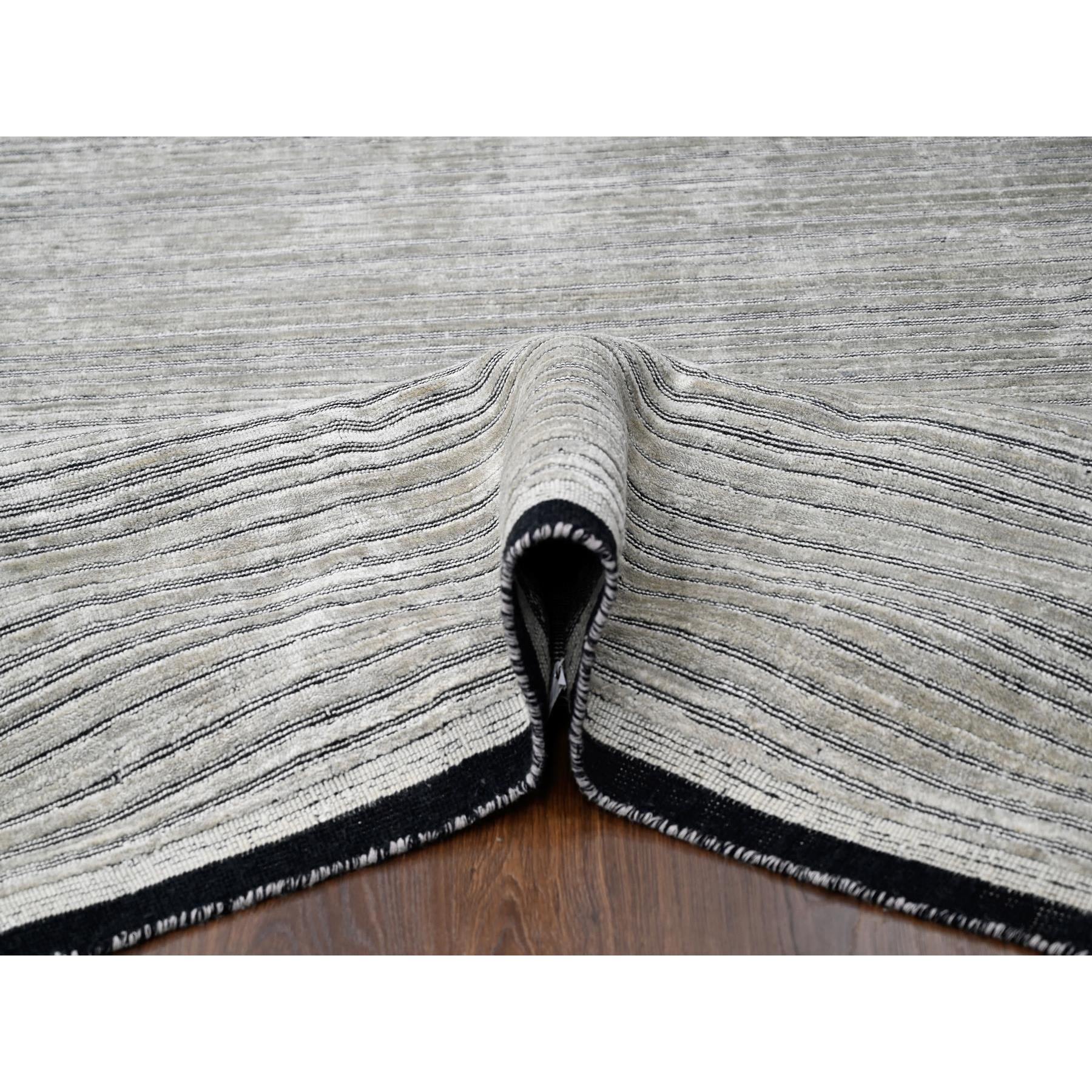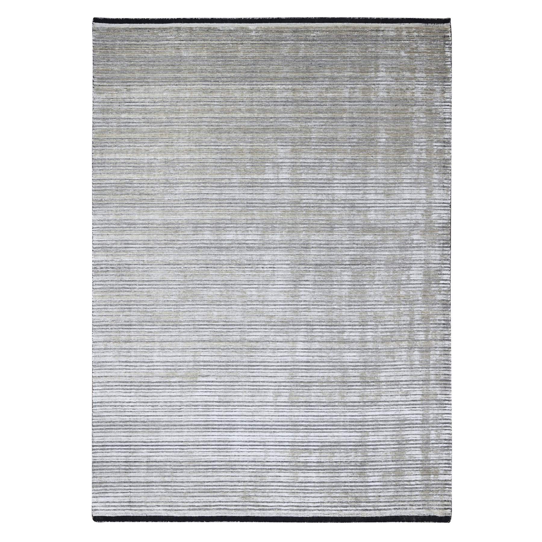 9’1″x12’1″ Taupe and Black, Wool and Plant Based Silk, Hand Loomed, Modern Textured and Variegated Line Design, Oriental Rug HR84347