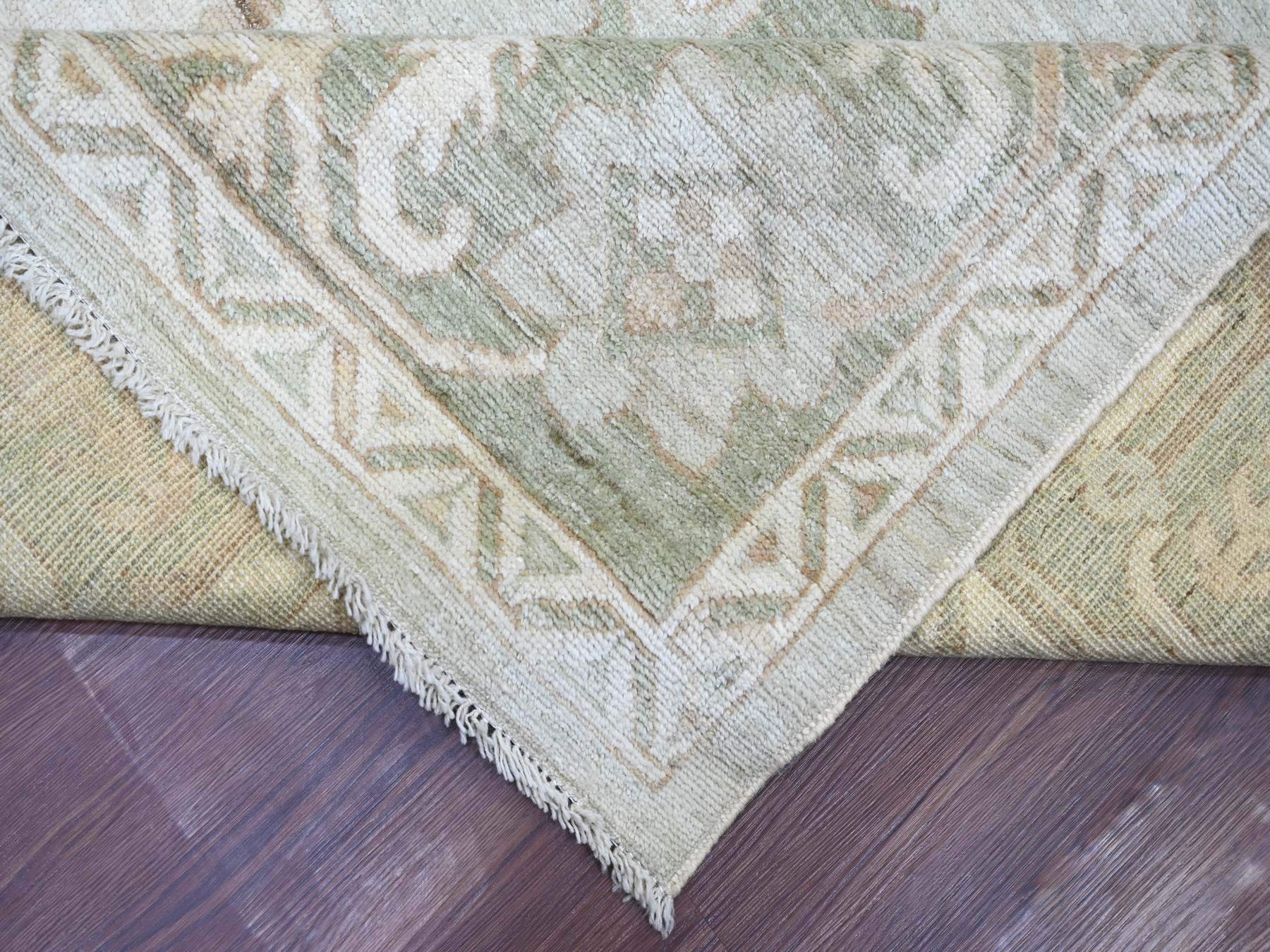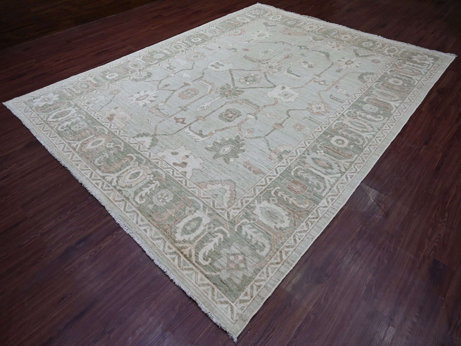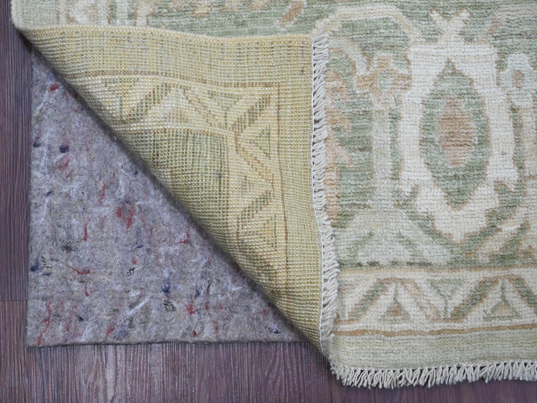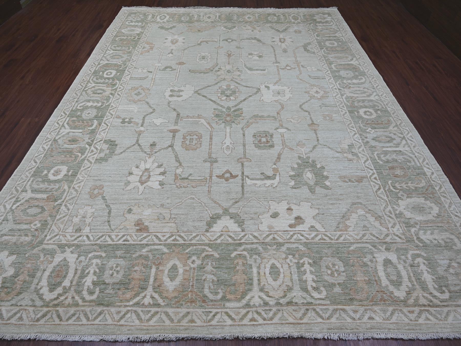 9’2″x12′ Light Green, Afghan Angora Oushak with All Over Vines Design, Vegetable Dyes, Hand Knotted, 100% Wool, Oriental Rug HR21050