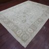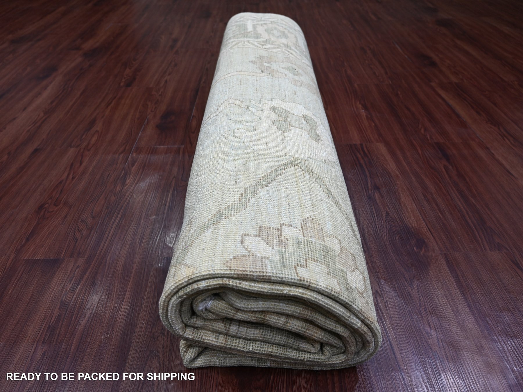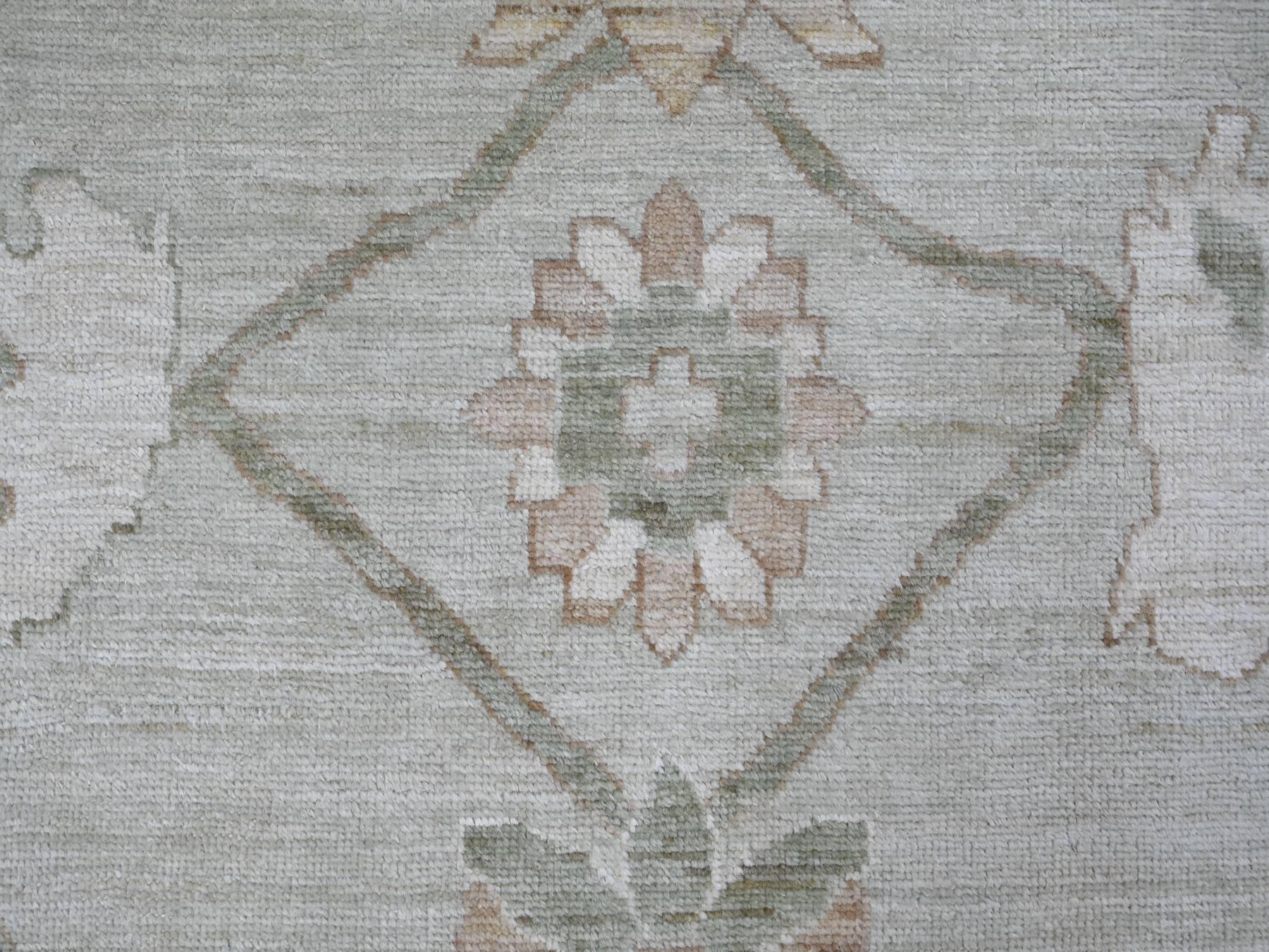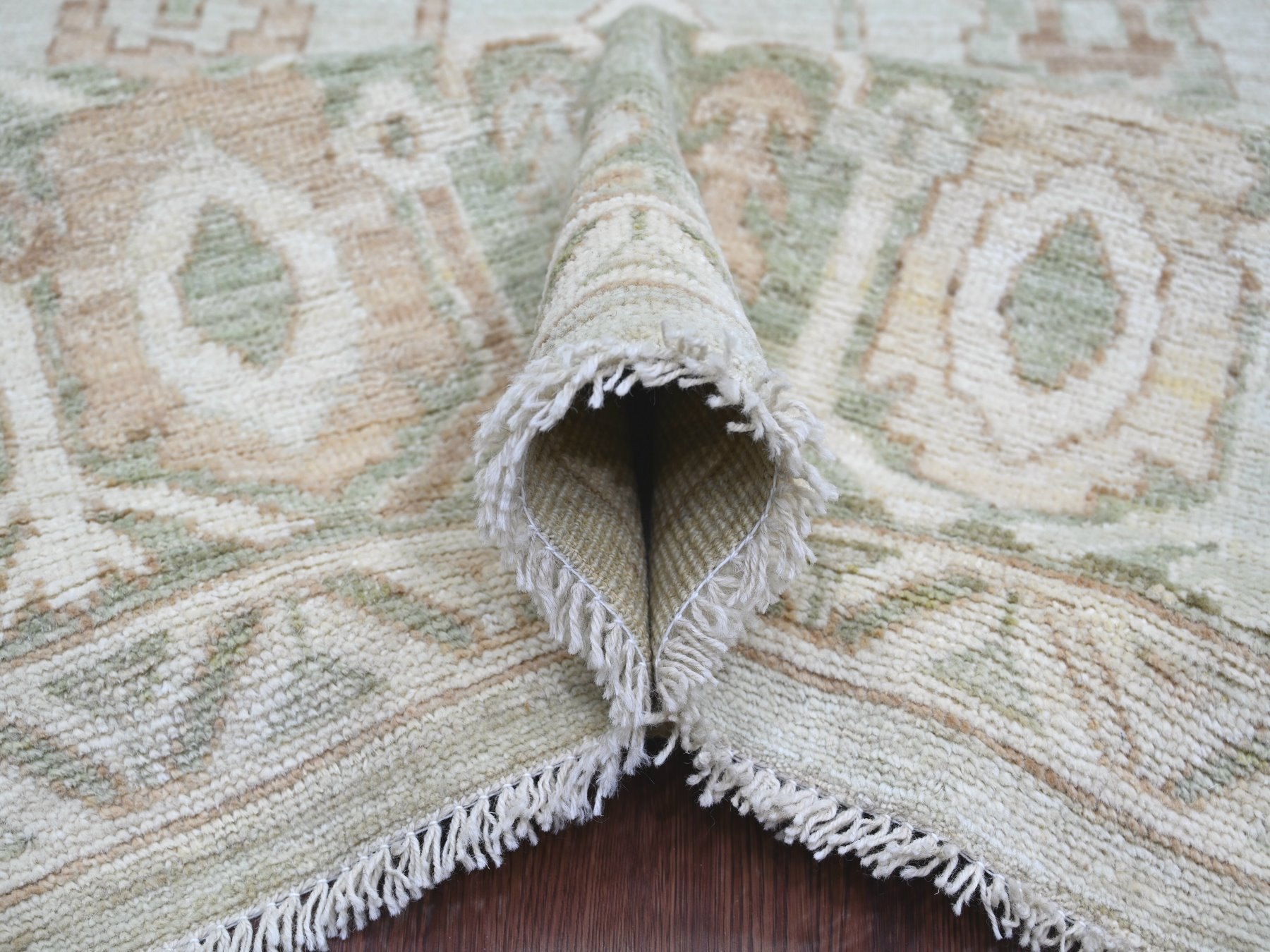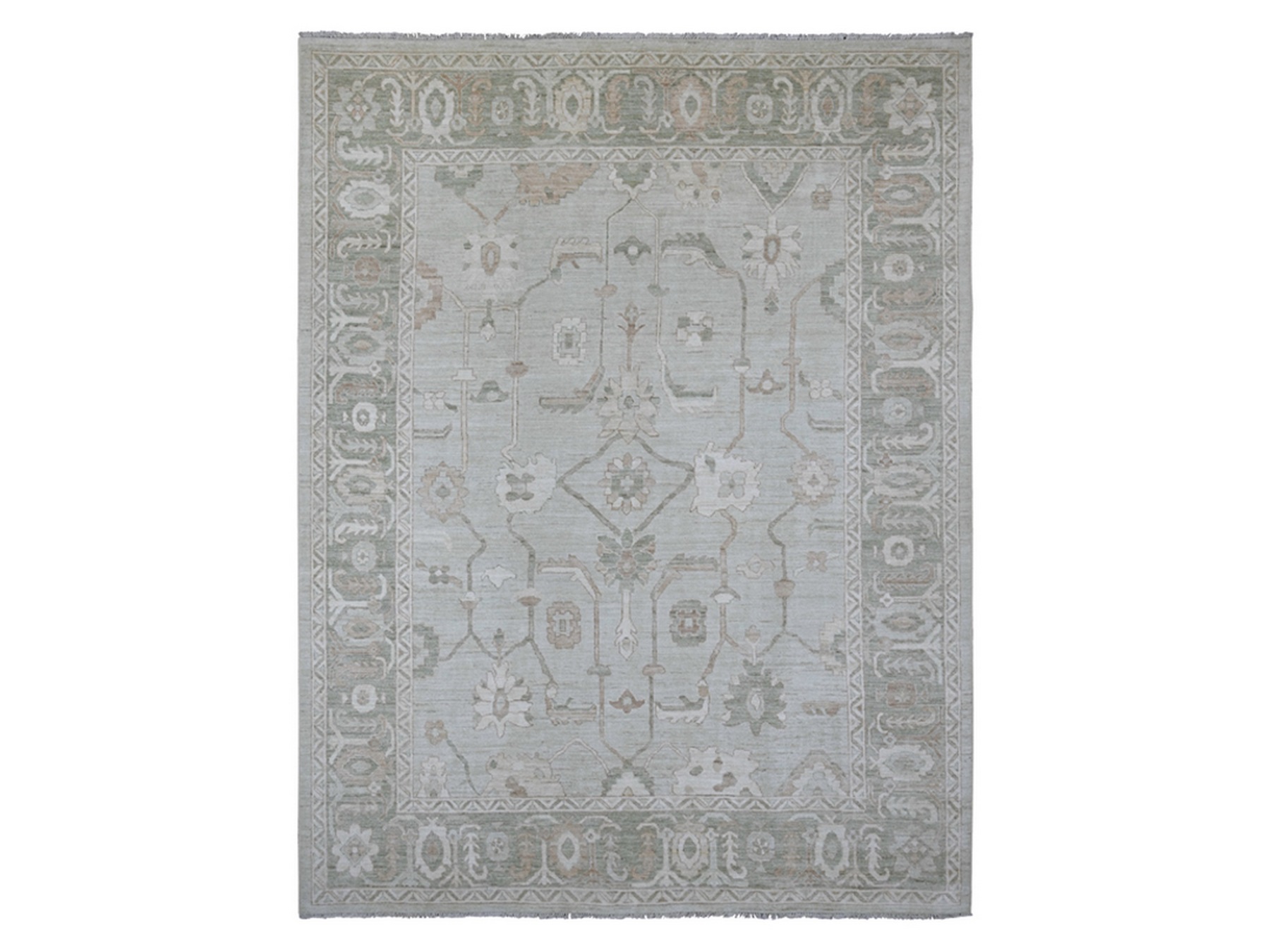 9’2″x12′ Light Green, Afghan Angora Oushak with All Over Vines Design, Vegetable Dyes, Hand Knotted, 100% Wool, Oriental Rug HR21050