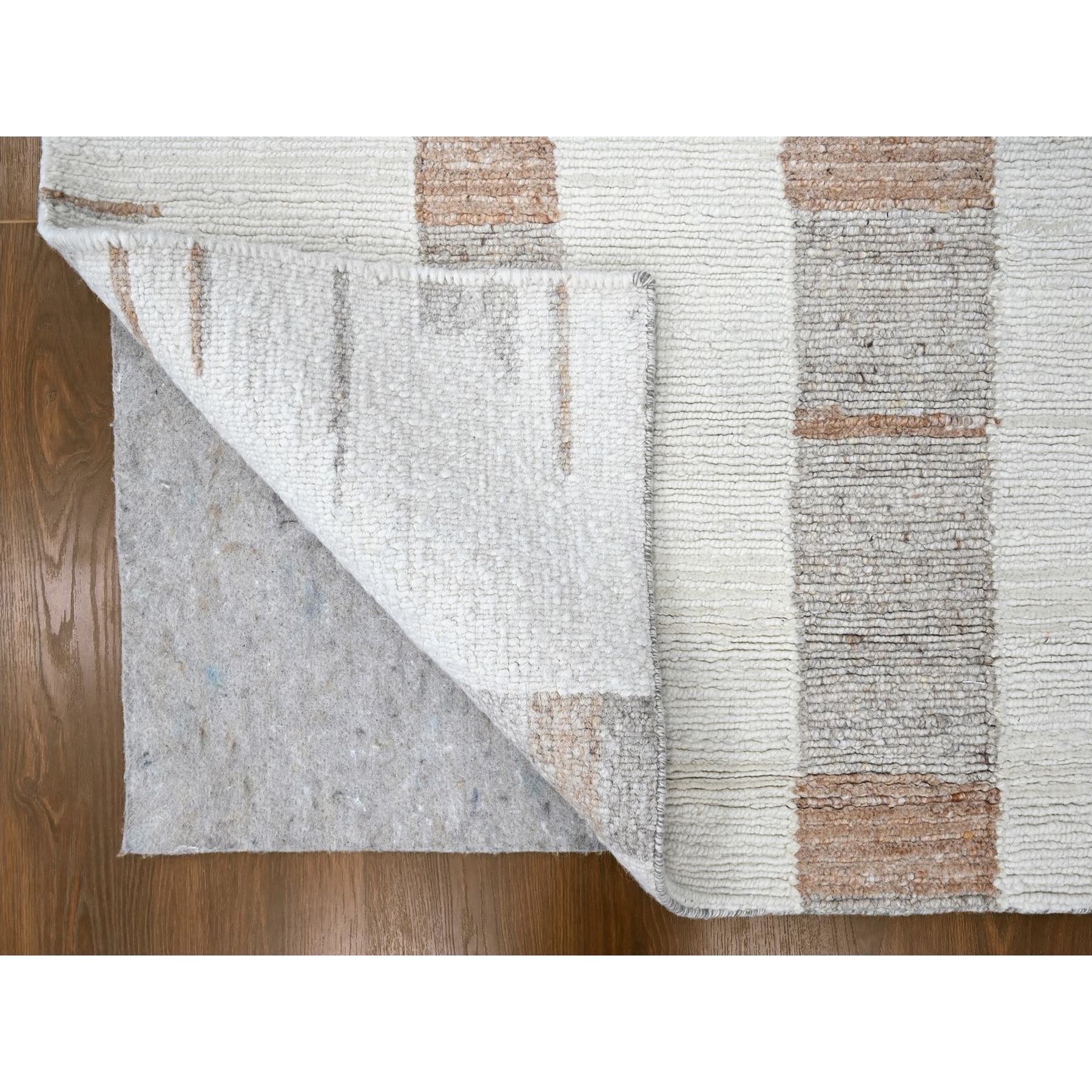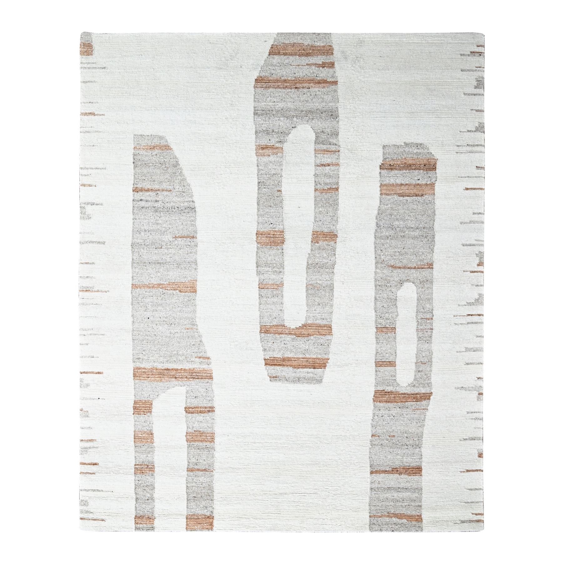 9’3″x12′ Bone White, Minimalist Swedish Design, Flat Weave with Pile, Hand Knotted, 100% Wool, Oriental Rug HR10338