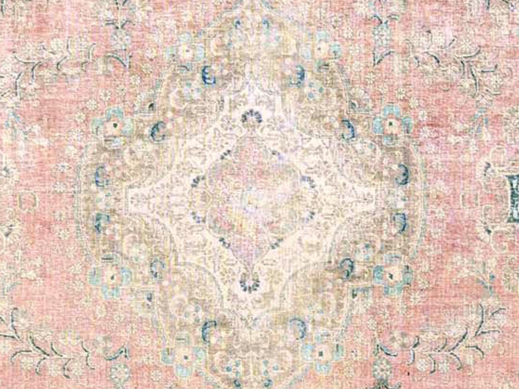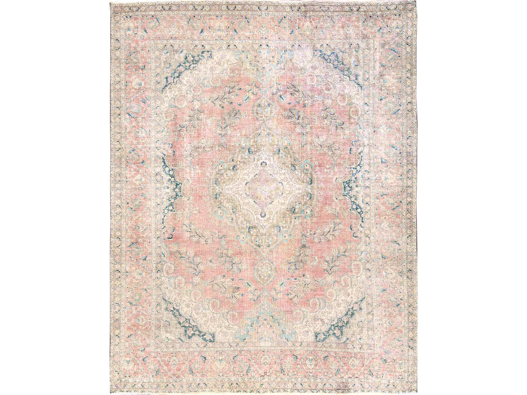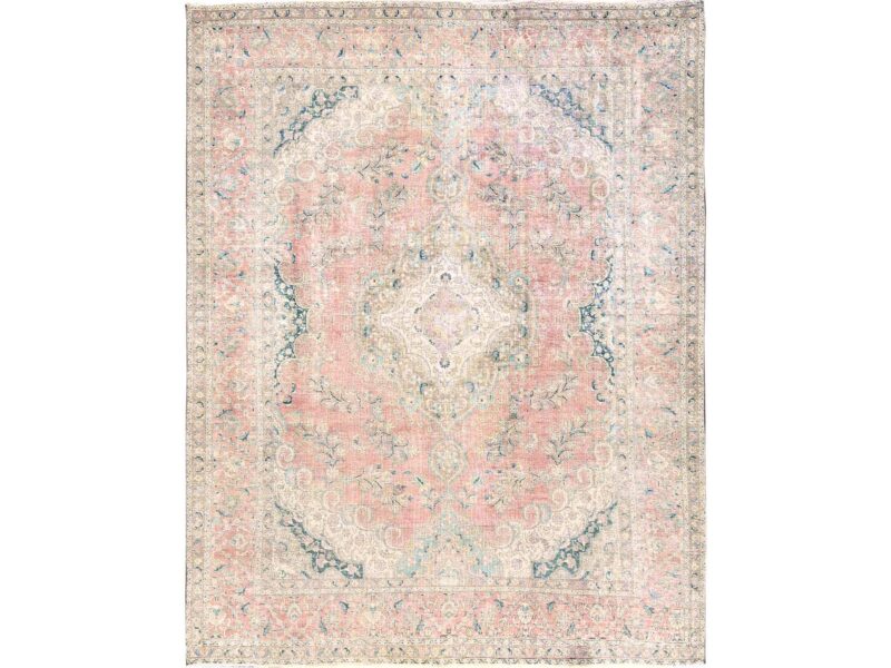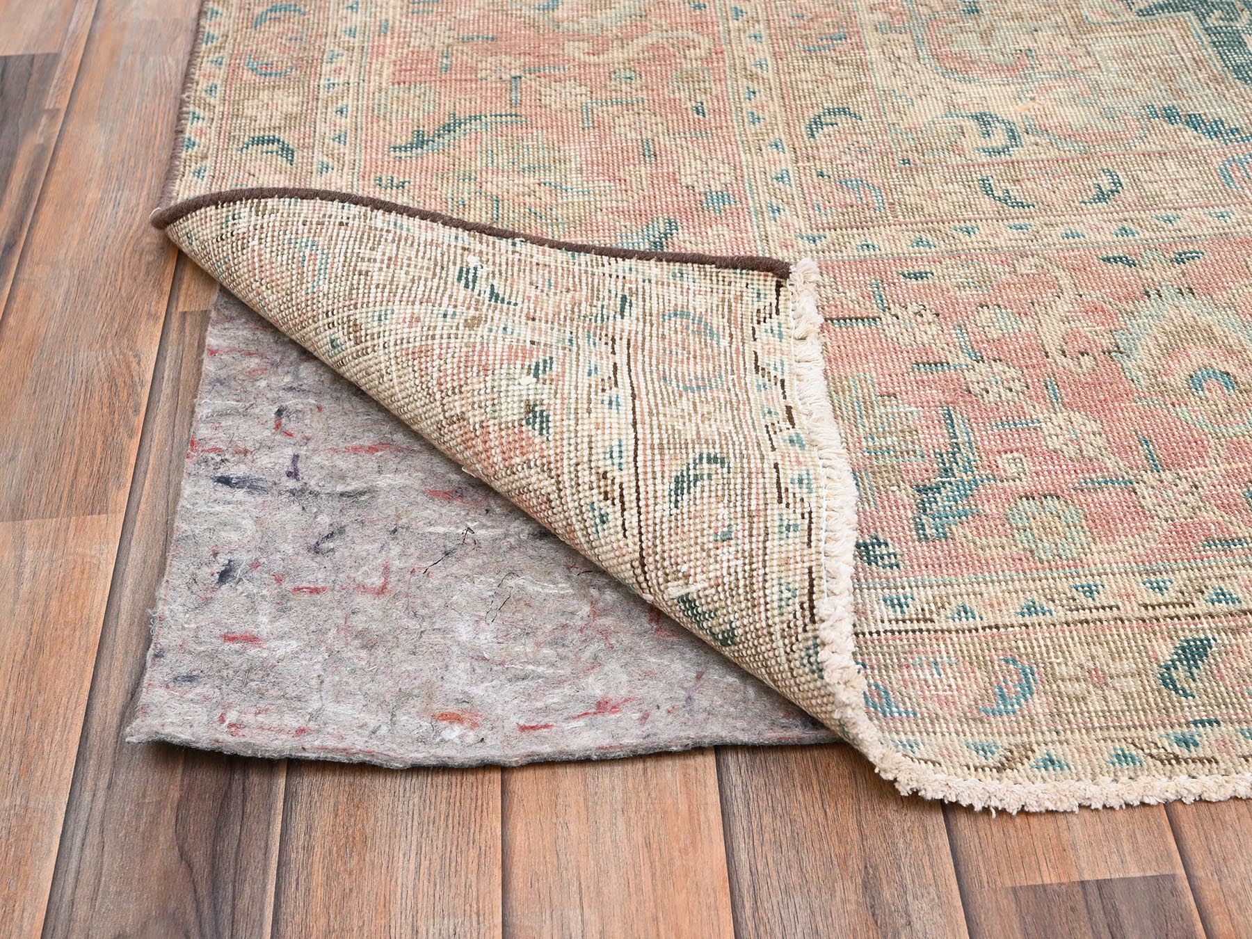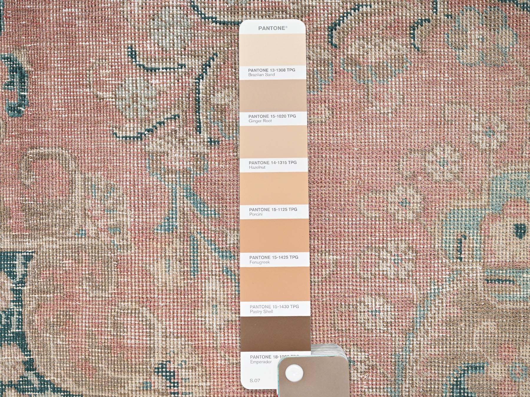 9’7″x12’2″ Rose Pink, Vintage Persian Tabriz, Clean and Soft, Worn Zero Pile, 100% Wool, Hand Knotted, Sides and Ends Secured, Oriental Rug HR2065