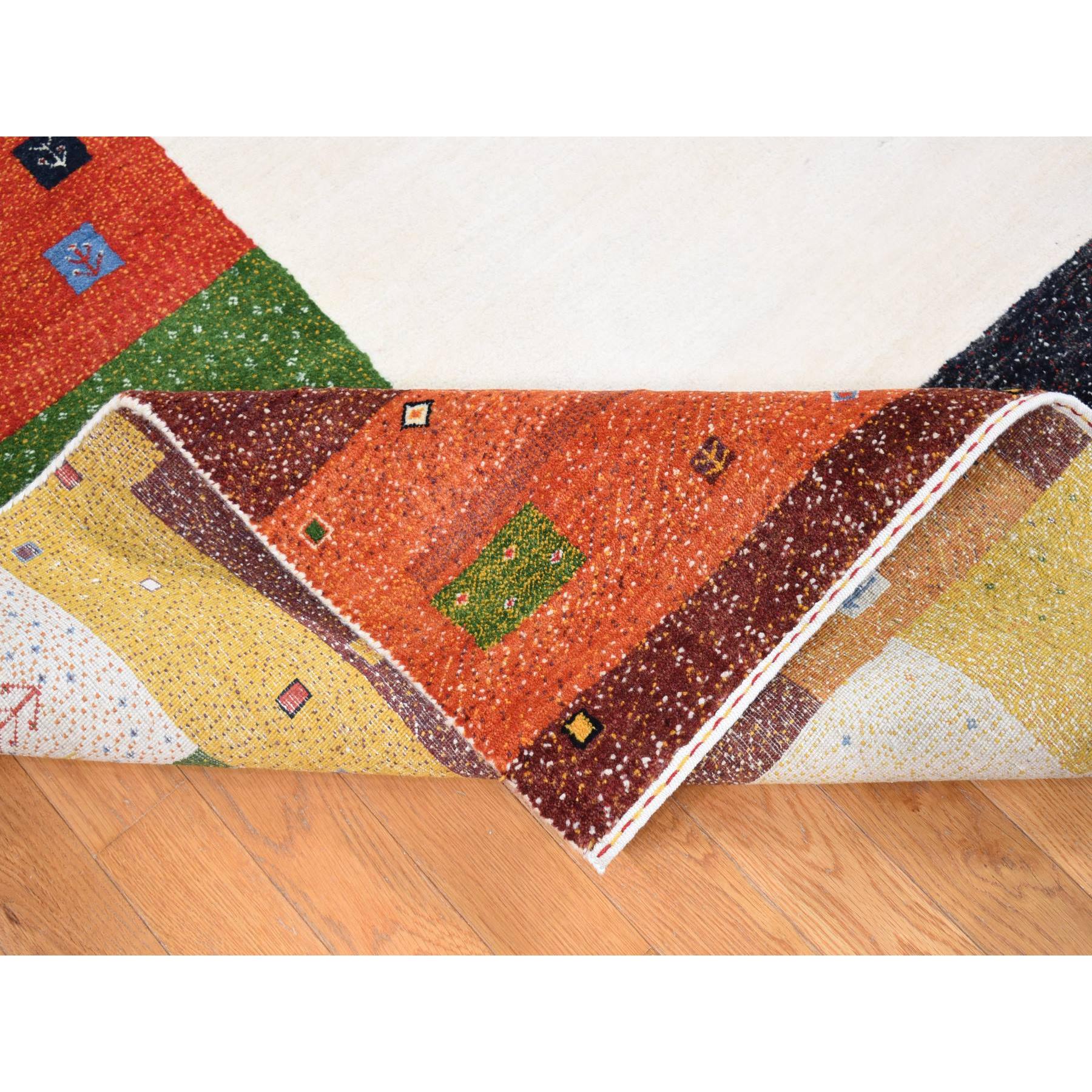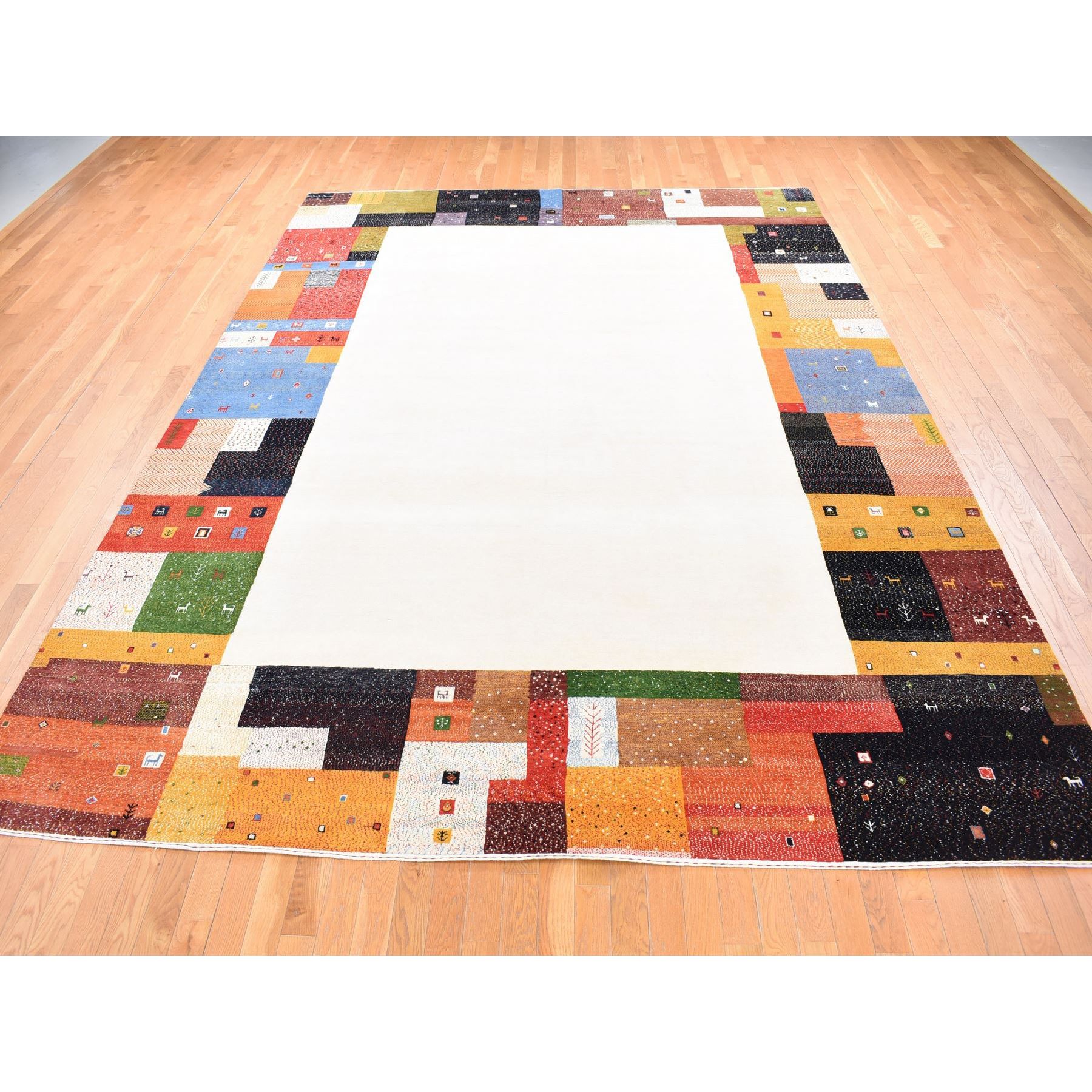 9’8″x13’5″ Ivory, Folk Art Lori Buft Gabbeh Design Thick and Plush, 100% Wool Hand Knotted, Oriental Rug HR80646