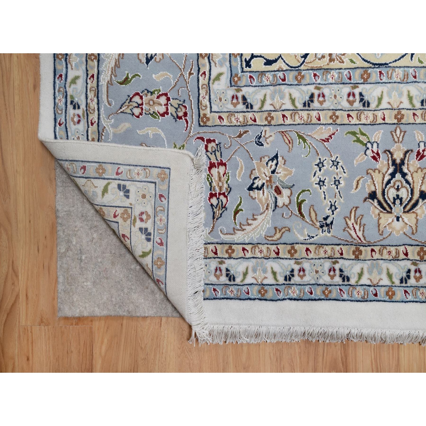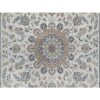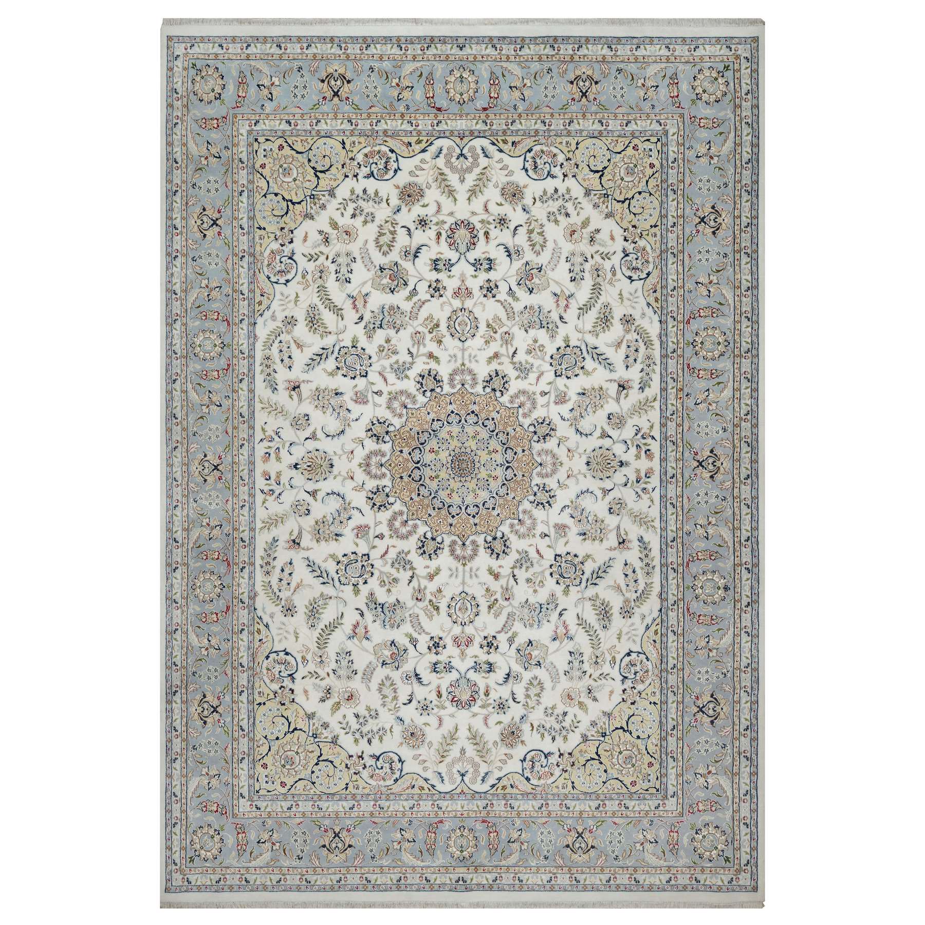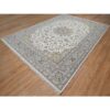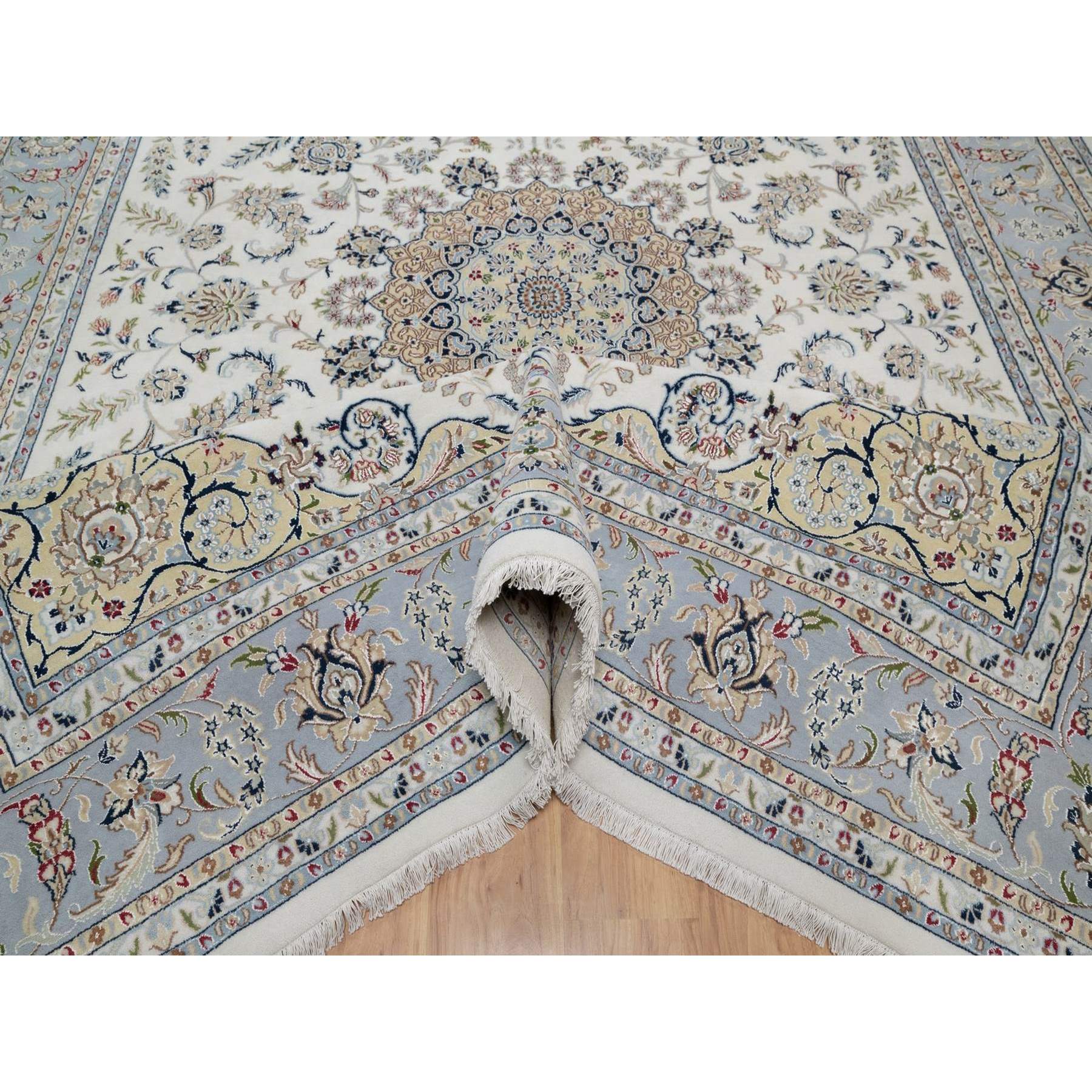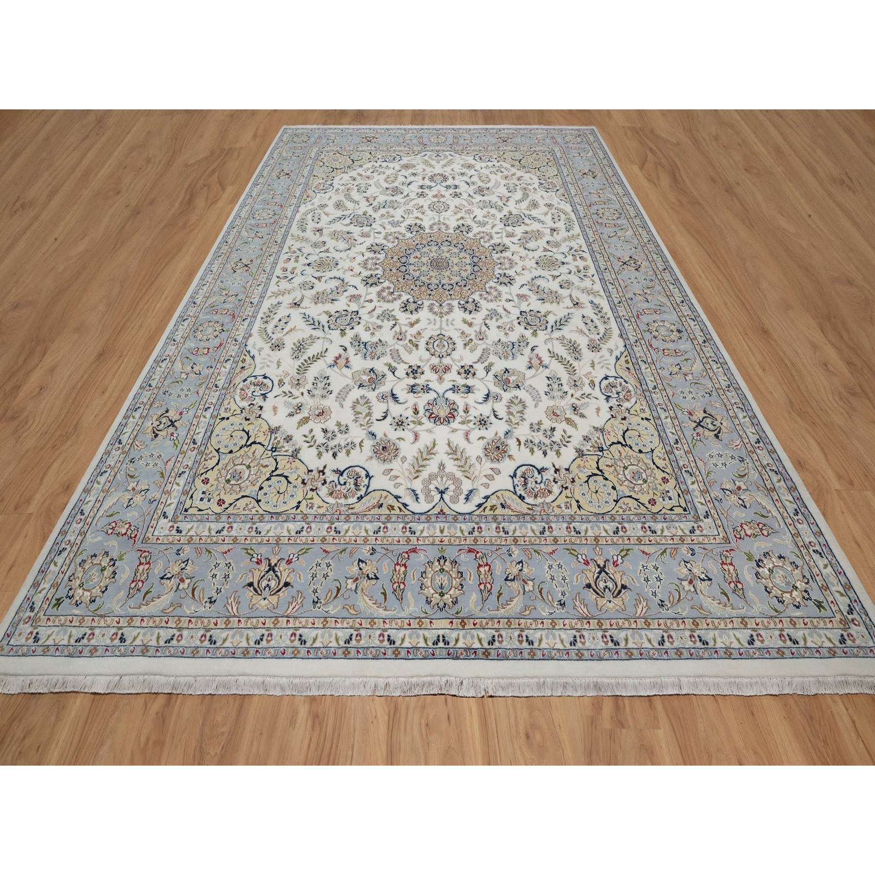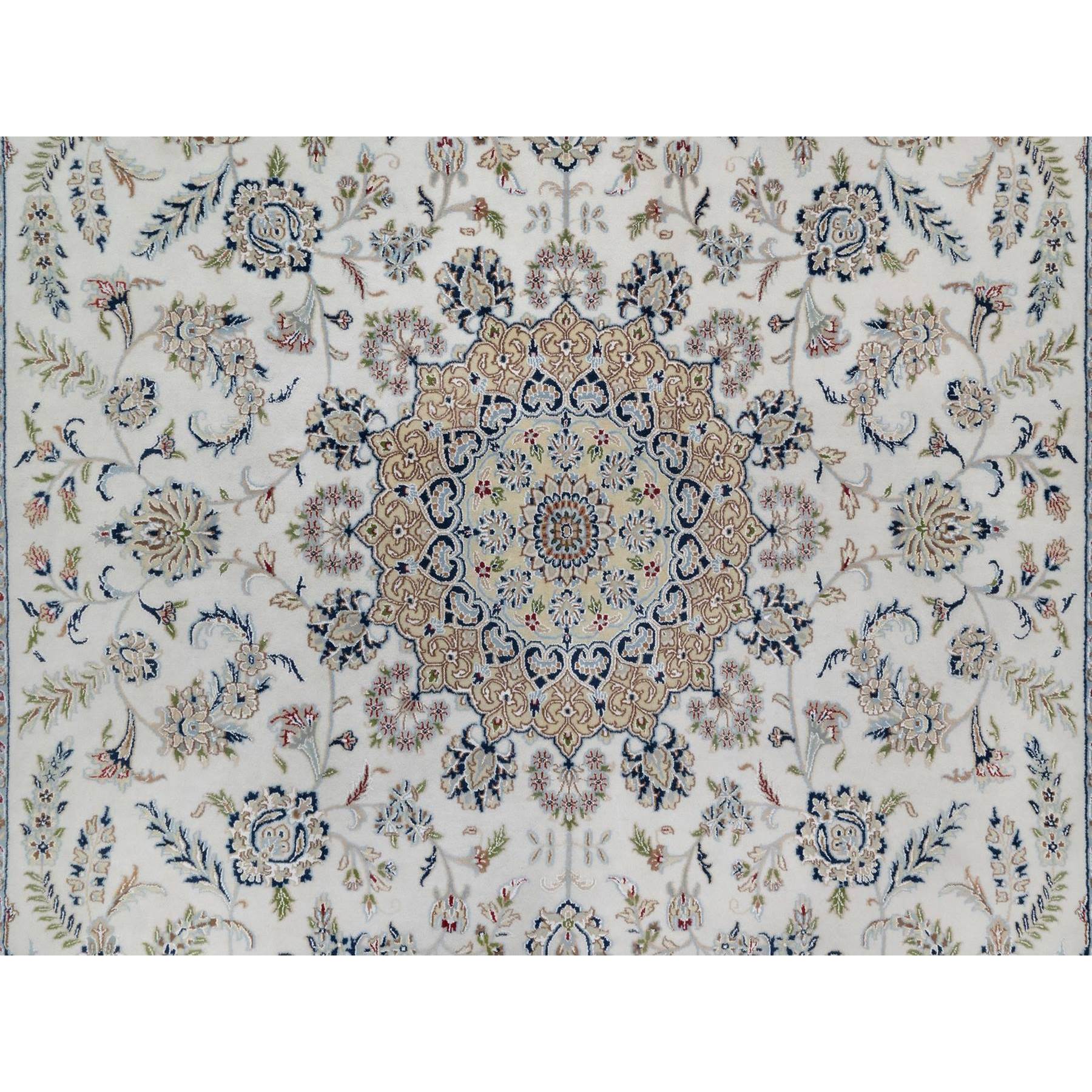 9’9″x14’1″ Pearl White, Wool and Silk, Nain with Flower Medallion Design, 250 KPSI, Soft Pile, Hand Knotted, Oriental Rug HR91603