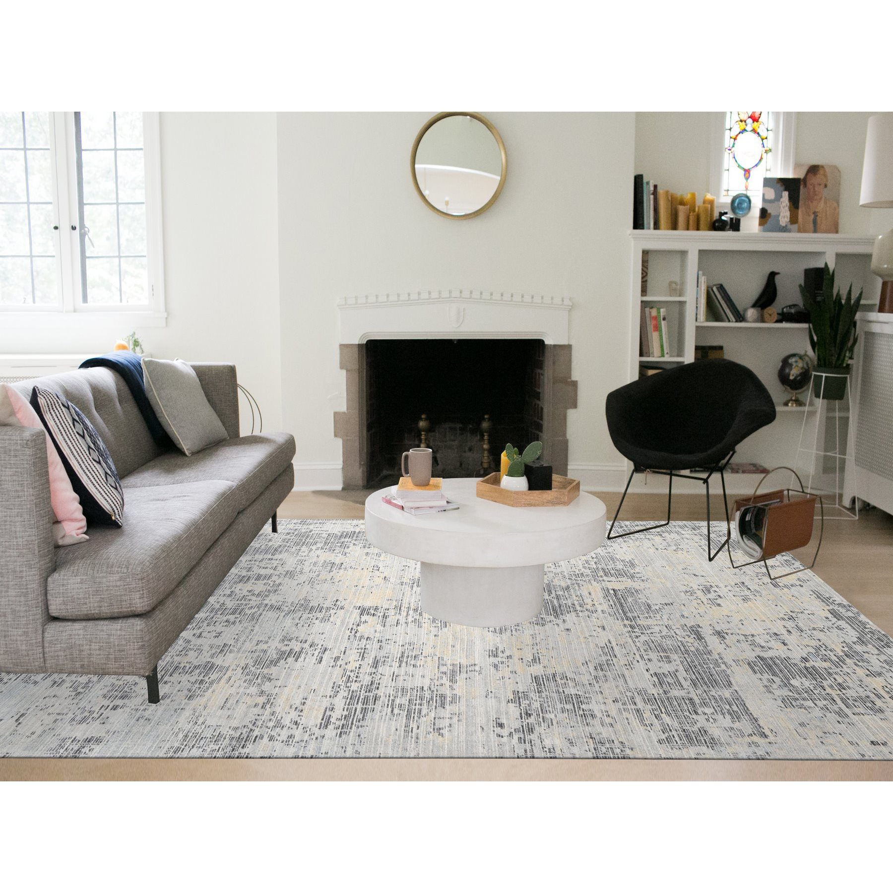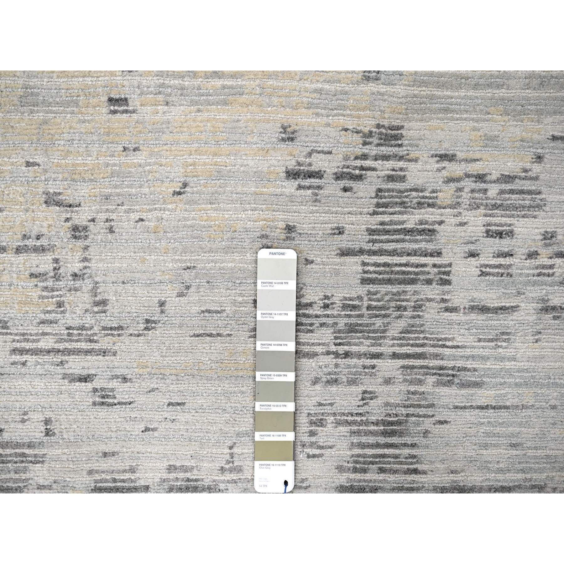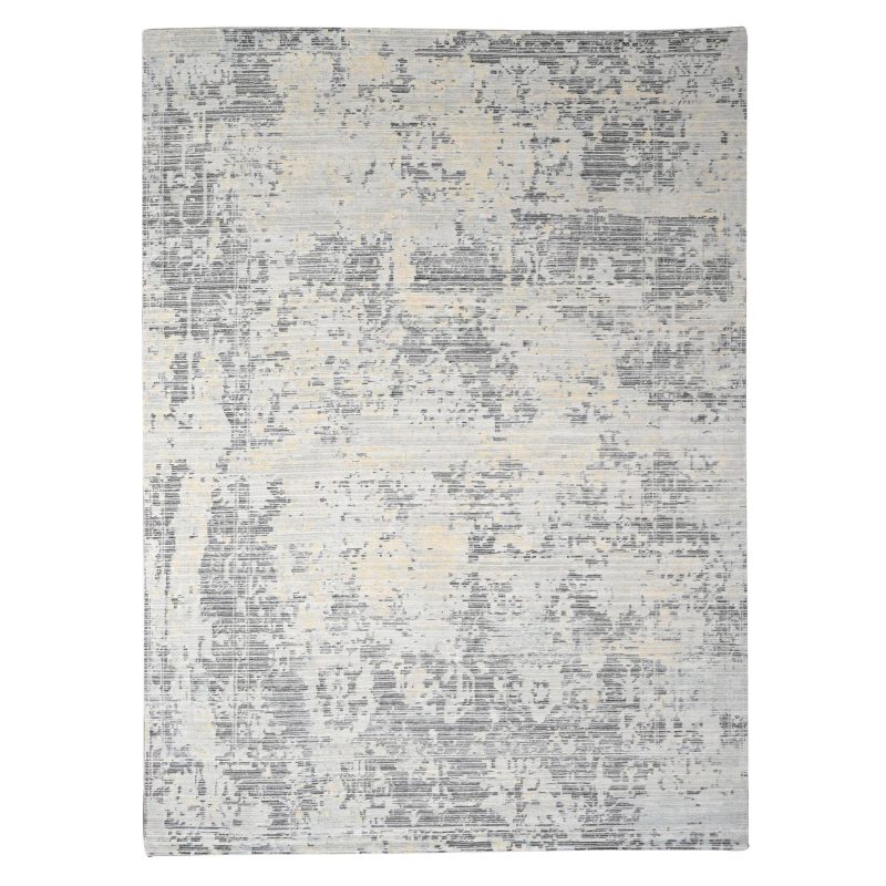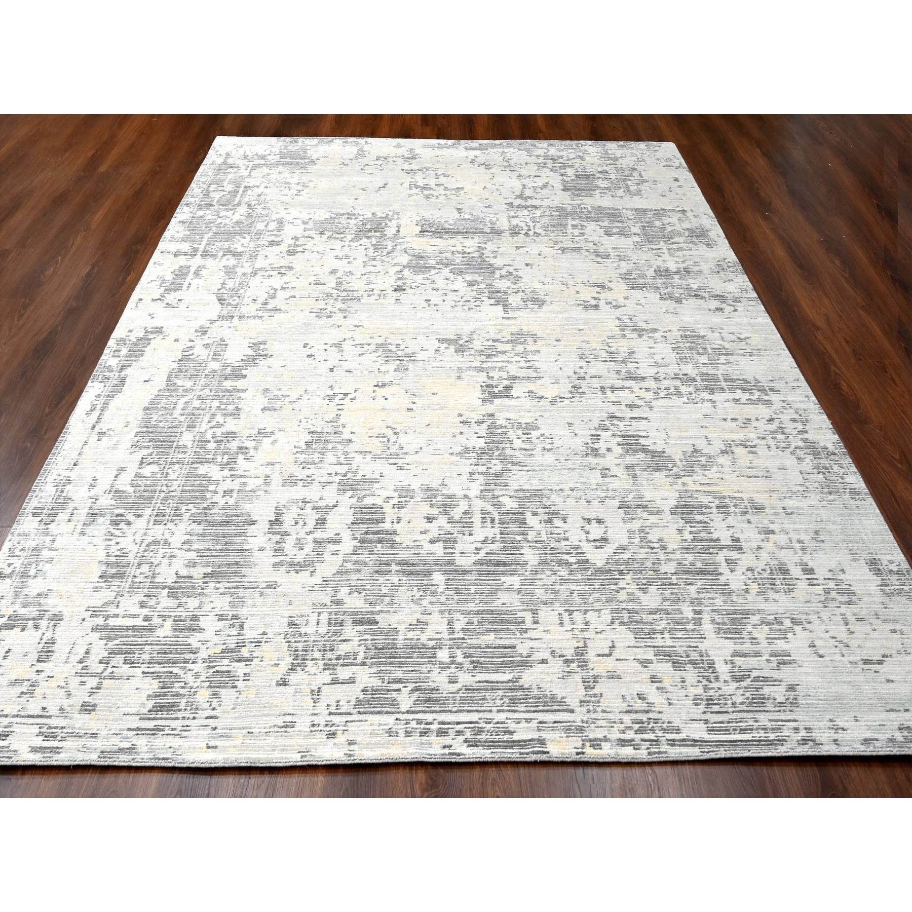 9’x11’10” Lexicon White with Touches of Gold, Soft and Plush Pile, Hand Knotted, Cut and Loop Technique, Undyed Natural Wool, Nepali Oriental Rug HR84579