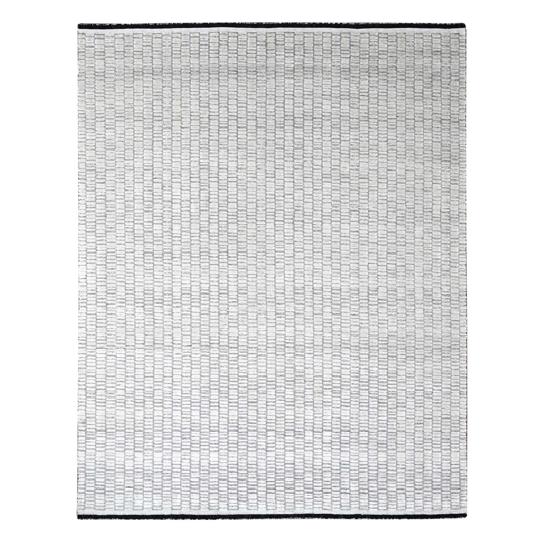 9’x11’9″ Pearl White, Hand Loomed, 100% wool, Modern Textured and Roman Tile Design, Oriental Rug HR84585