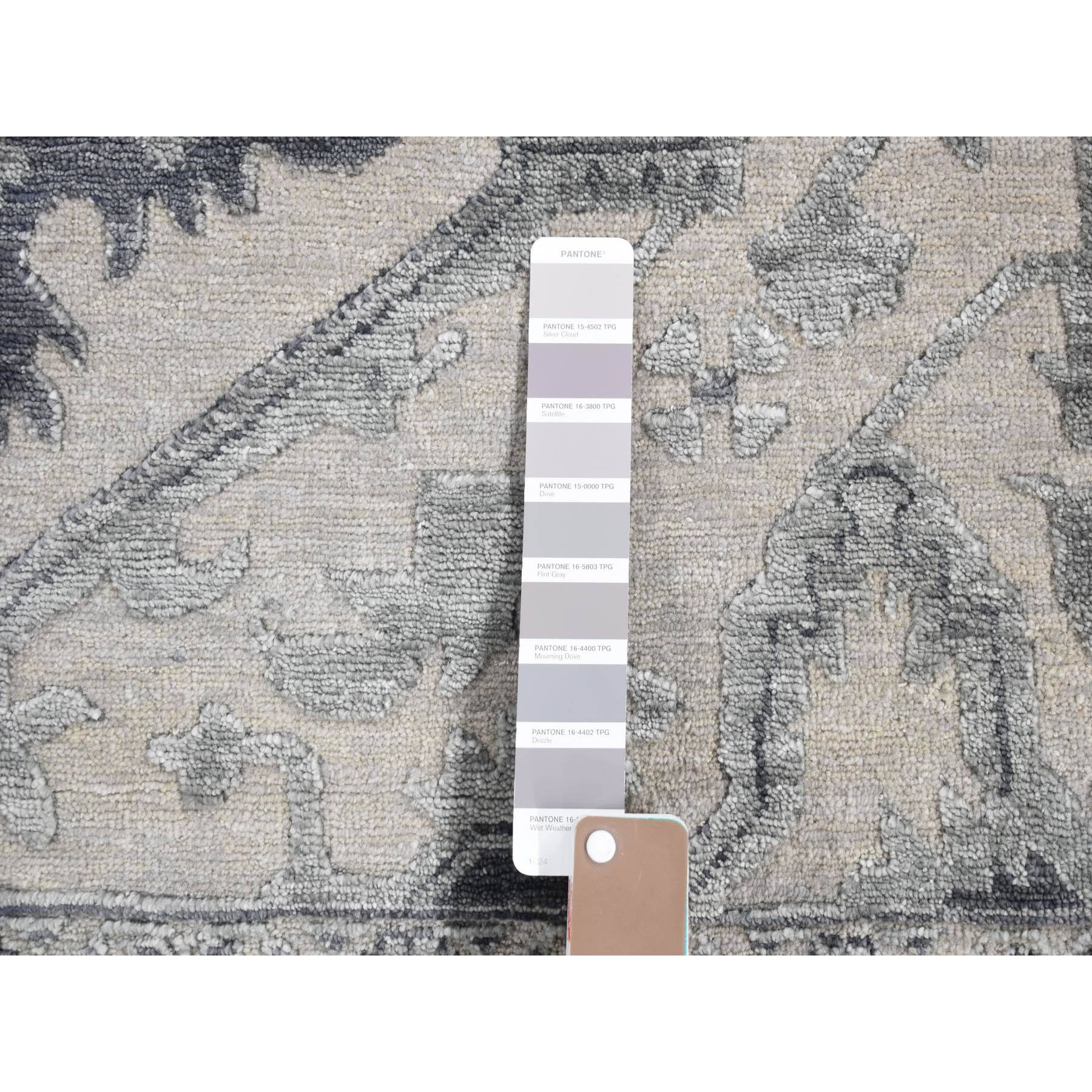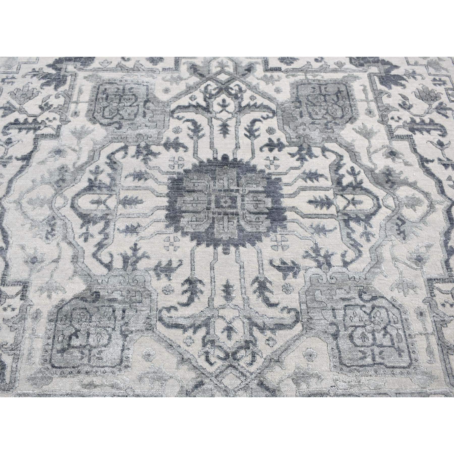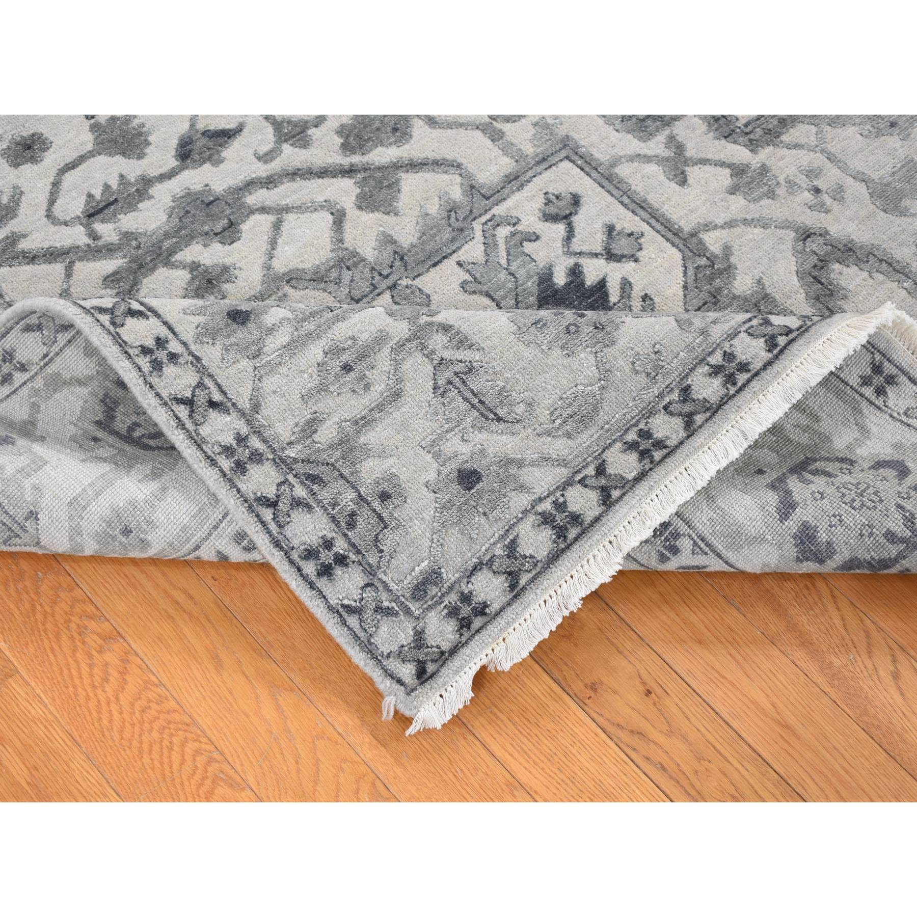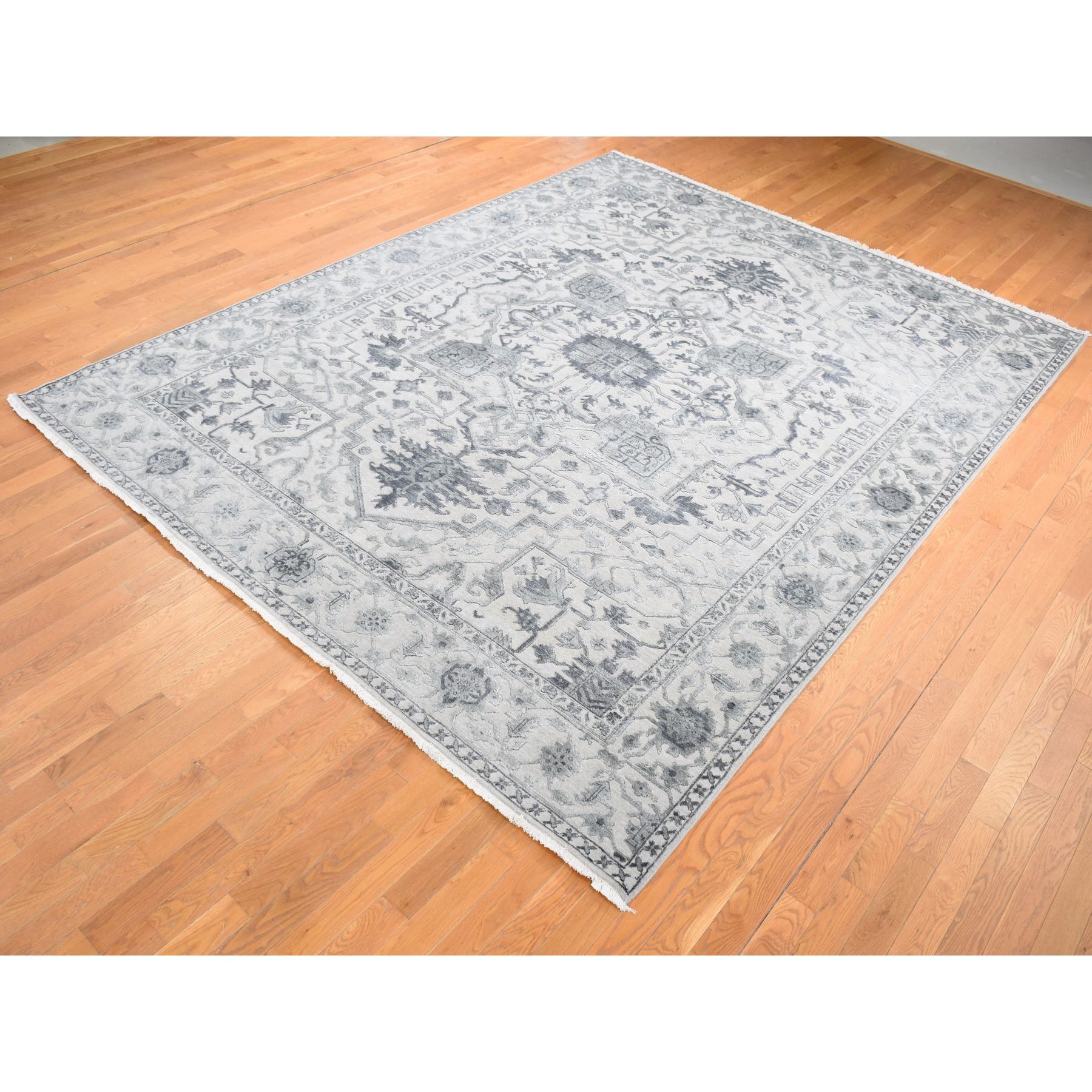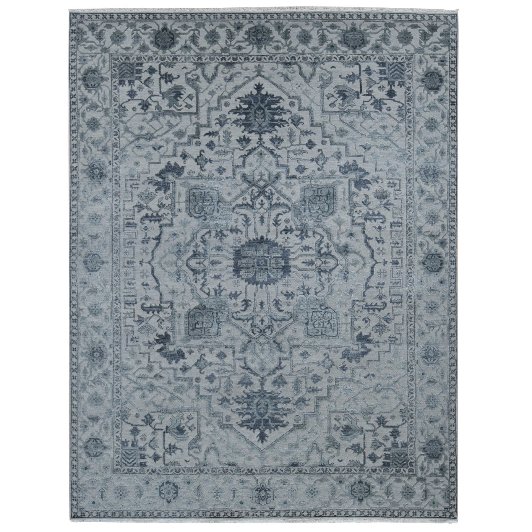 9’x12′ Ash Grey, Heriz Design with All Over Pattern Vegetable Dyes, Wool And Silk Hand Knotted, Oriental Rug HR80734