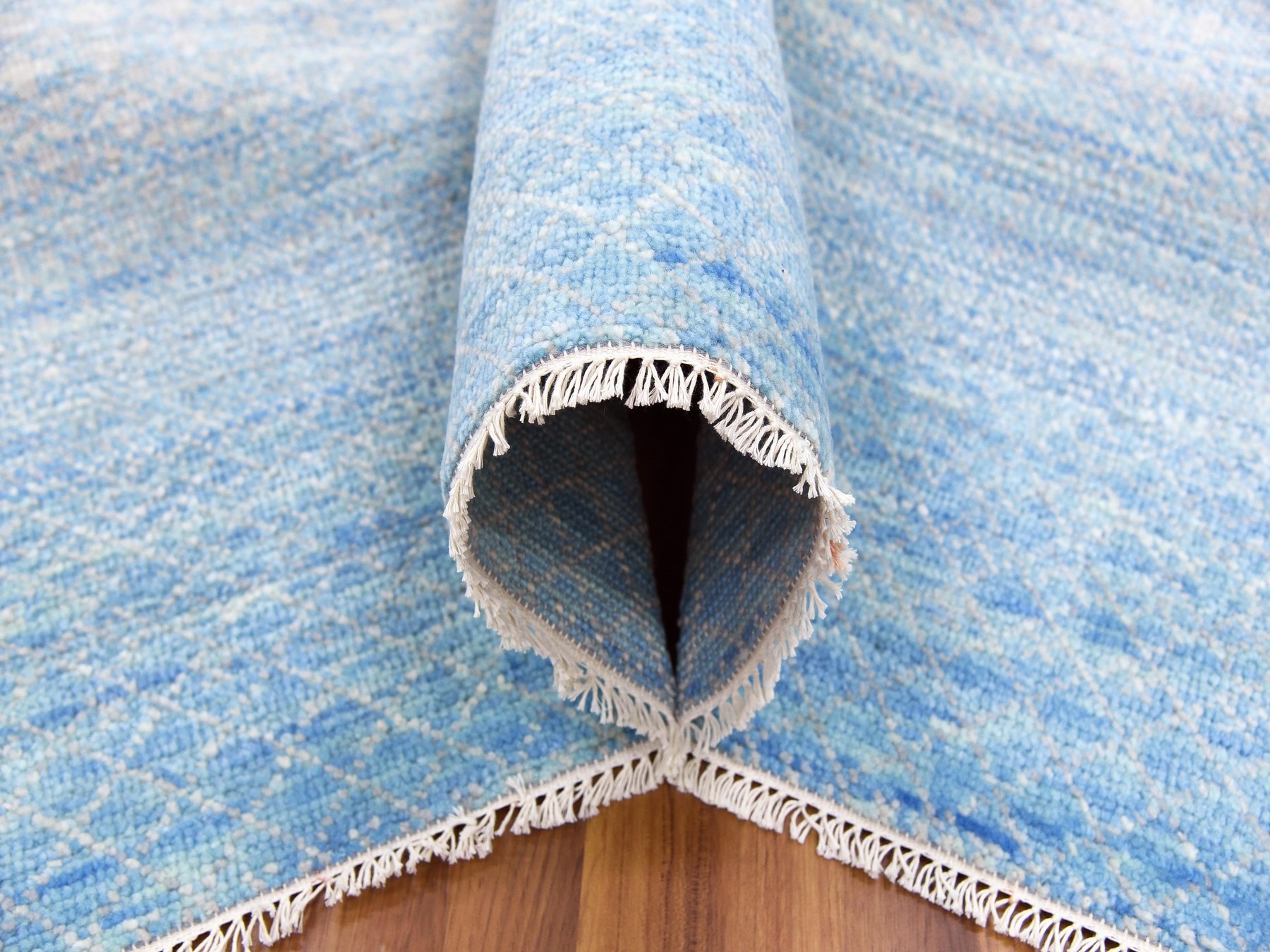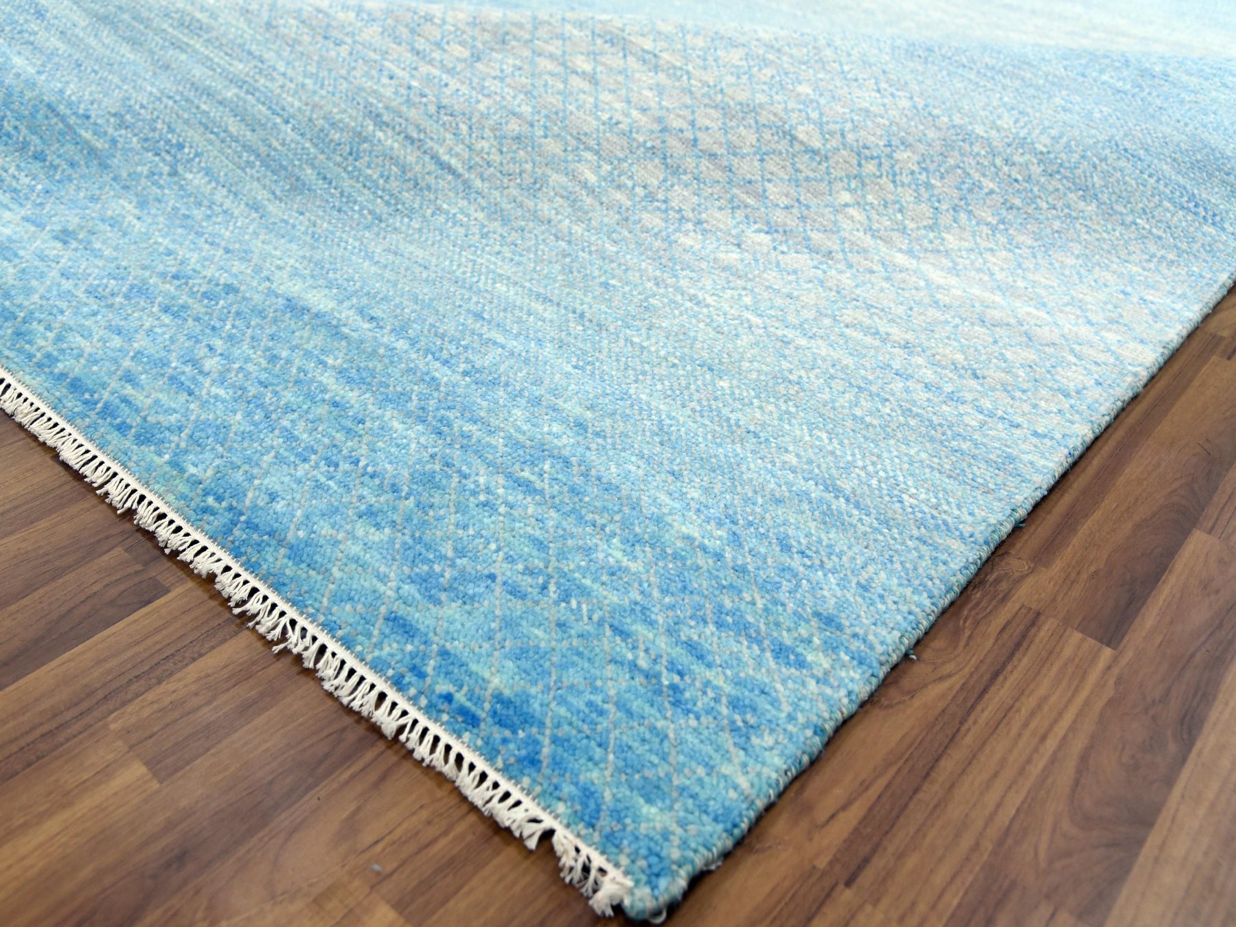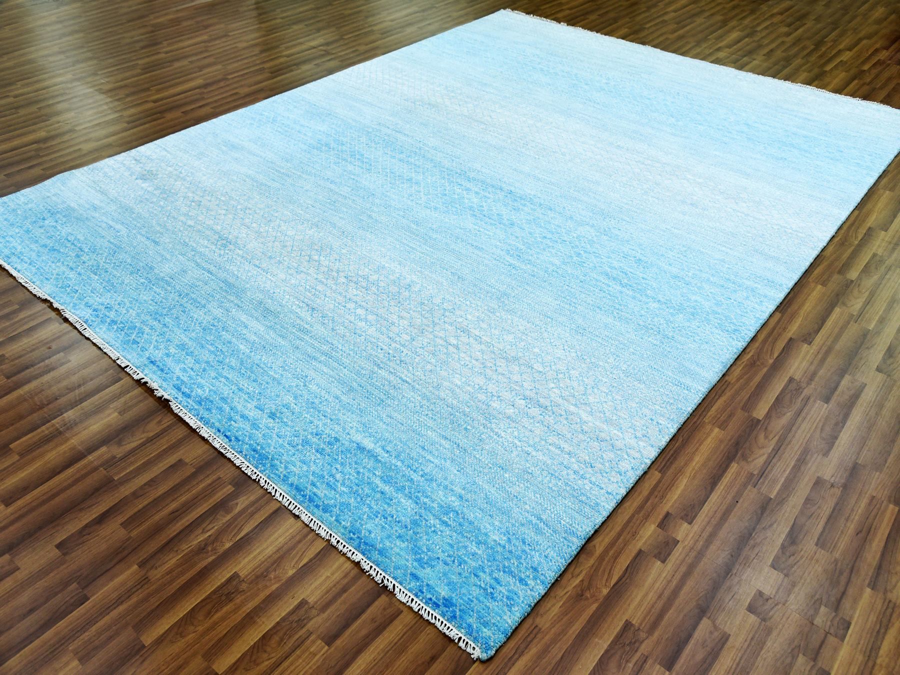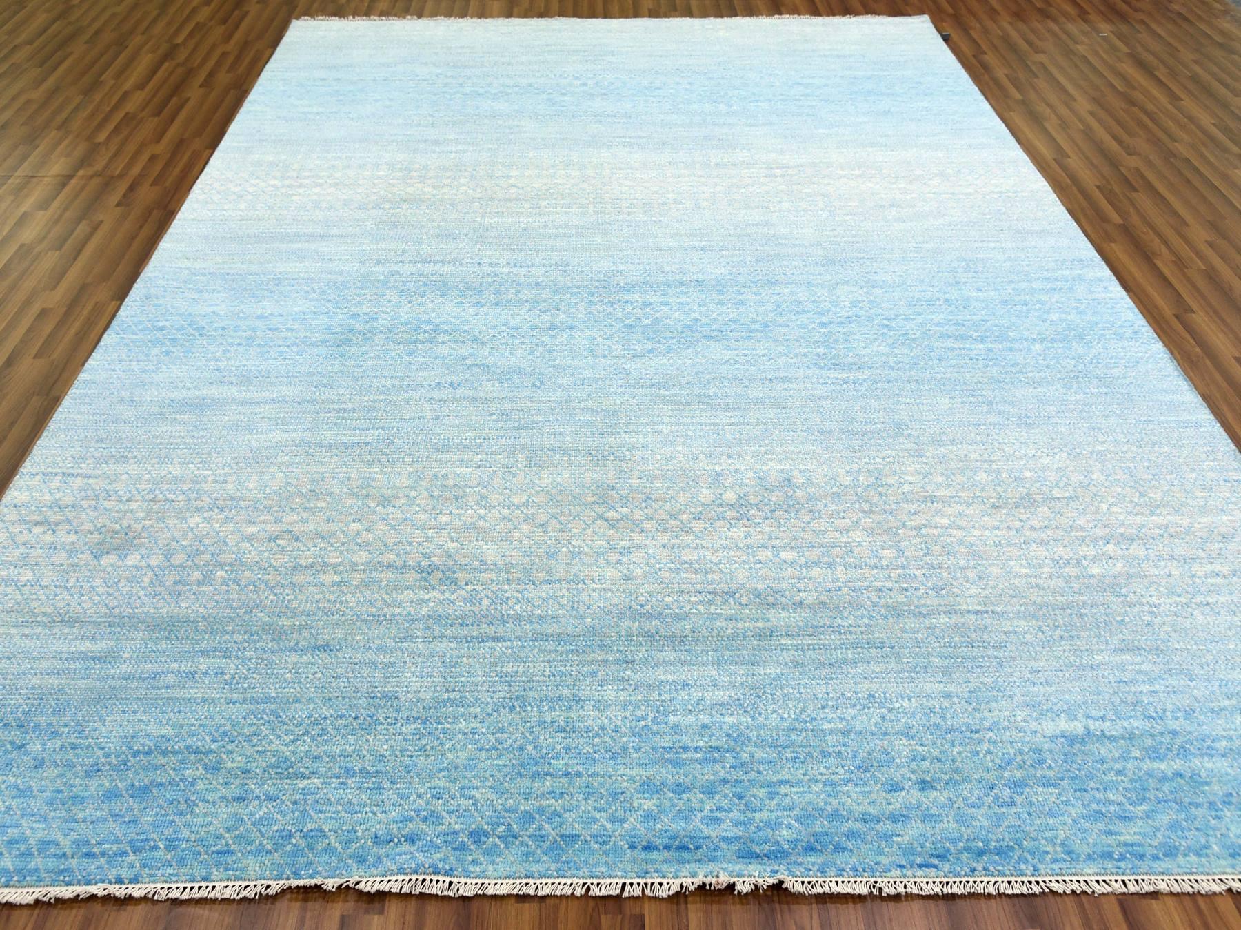 9’x12′ Blue Pure Wool Hand Knotted Thick and Plush, Modern Chiaroscuro Collection, Oriental Rug HR79031