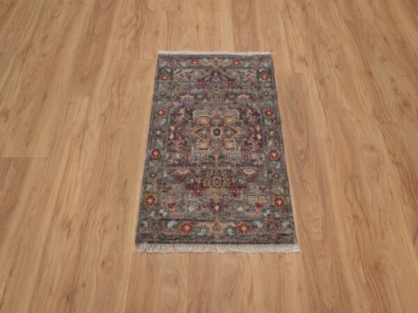1’10″x3′ Mahogany Red, Heriz Revival, Vegetable Dyes, Hand Knotted, Natural Wool, Thick and Plush, Soft Pile, Sample, Mat, Oriental Rug HR91769